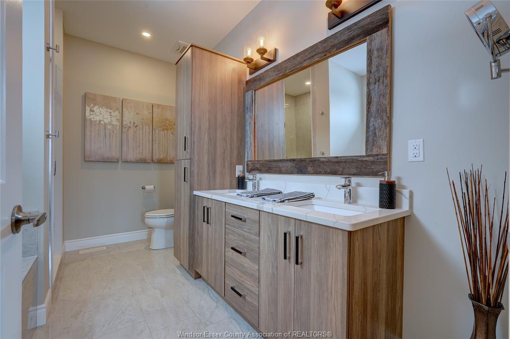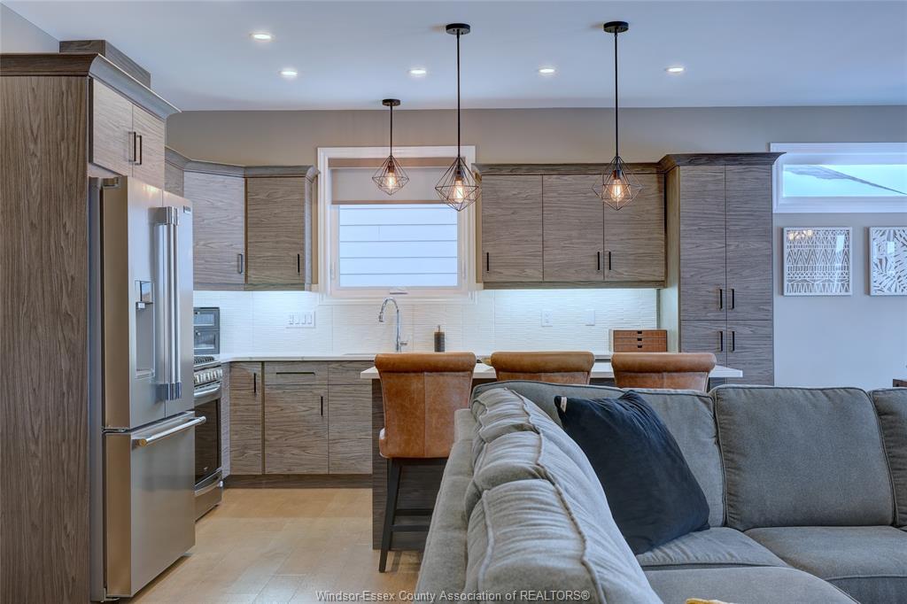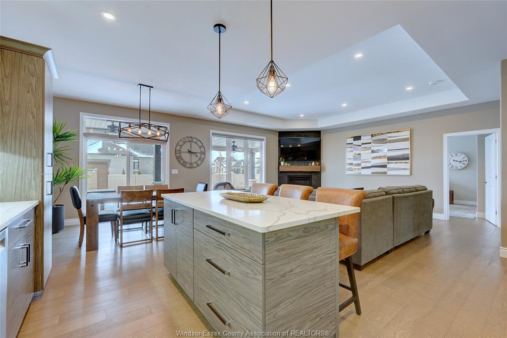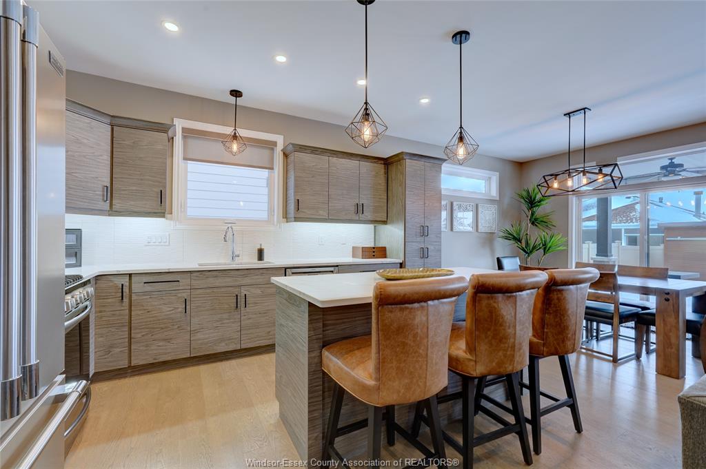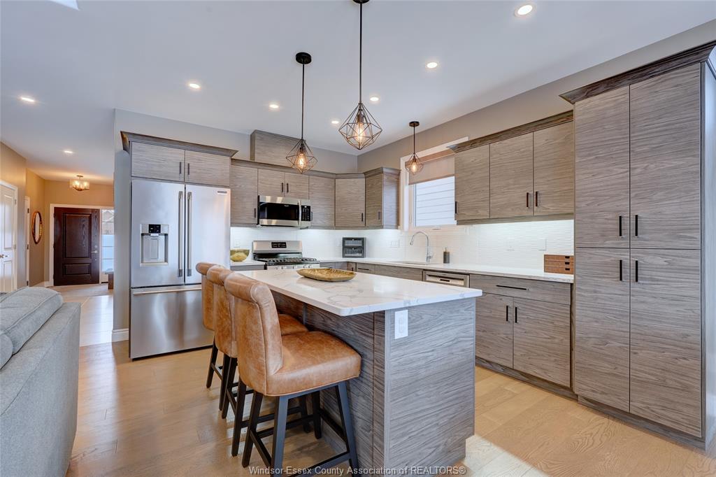 Welcome to 14 lukas in the heart of kingsville. This 2+1 bedroom and 3 bath home is waiting for its new family. Corner lot, fully fenced, double wide driveway with beautiful landscapes and outdoor entertaining. Main floor features an open concept kitchen, dining and living room complete with a gas fireplace. Quartz countertops with euro-style cabinetry and a workable island. 3 pc. Main bathroom, laundry room, bedroom and primary bedroom with walk-in closet and 5 pc. Ensuite. Lower level features a living room with a bar, electric fireplace and room for a games/pool table. 4 pc. Bathroom, bedroom, utility room and storage/workshop. Tile, engineered hardwood floor, carpet and vinyl laminate flooring throughout. Lawn sprinkler system with wifi capability, gas lines installed for bbq and fire table in the covered patio area. Worry free back-up generator connection installed, just plug in your generator. Located within walking distance to grocery stores, kingsville's dynamic culinary experience, winery, breweries, parks and schools. Come and have a look at your new home.