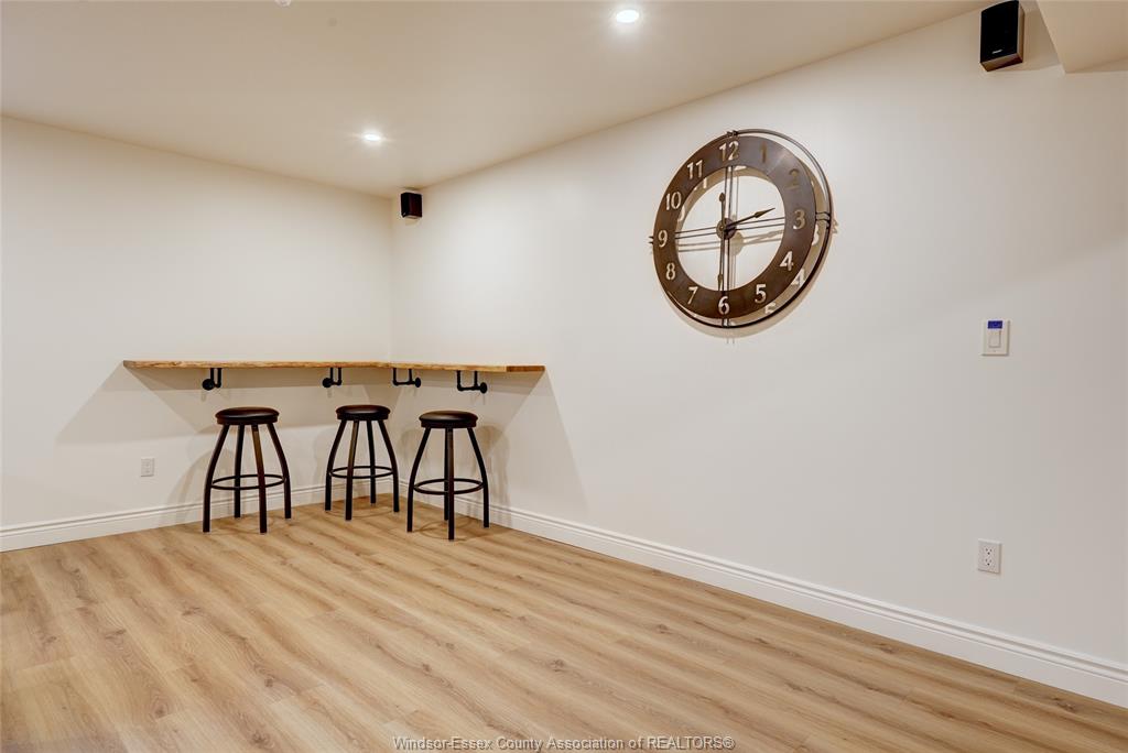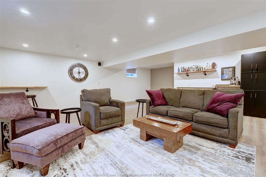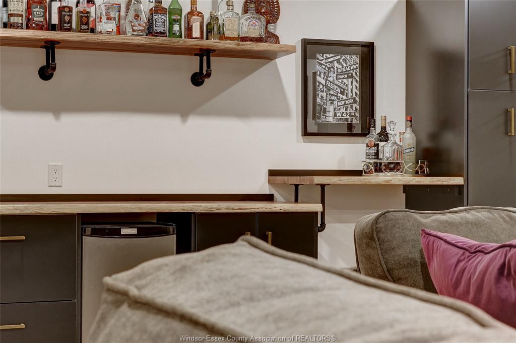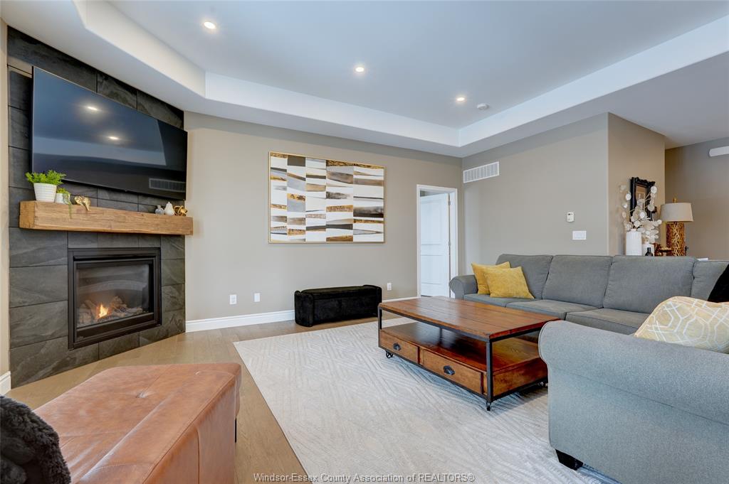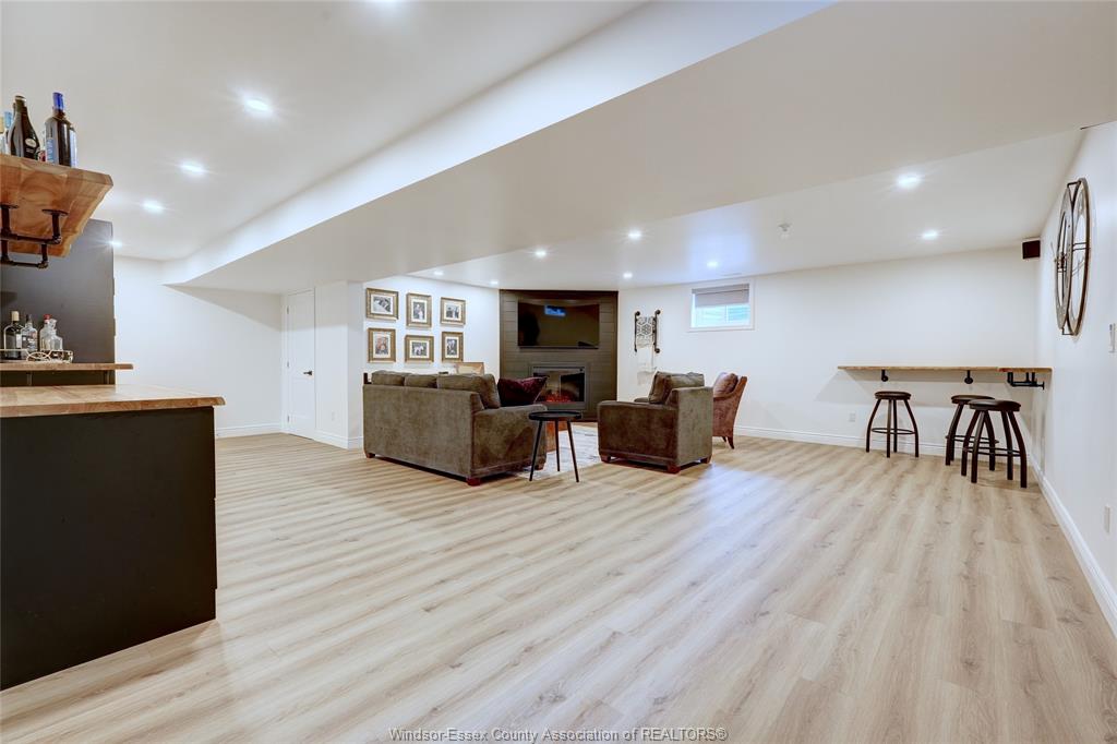 • Lower level includes a living room with a bar and electric fireplace.