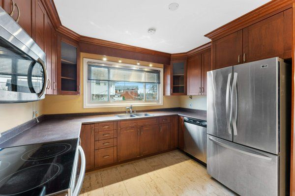 • Updated kitchen with sleek countertops and contemporary cabinetry for entertaining.