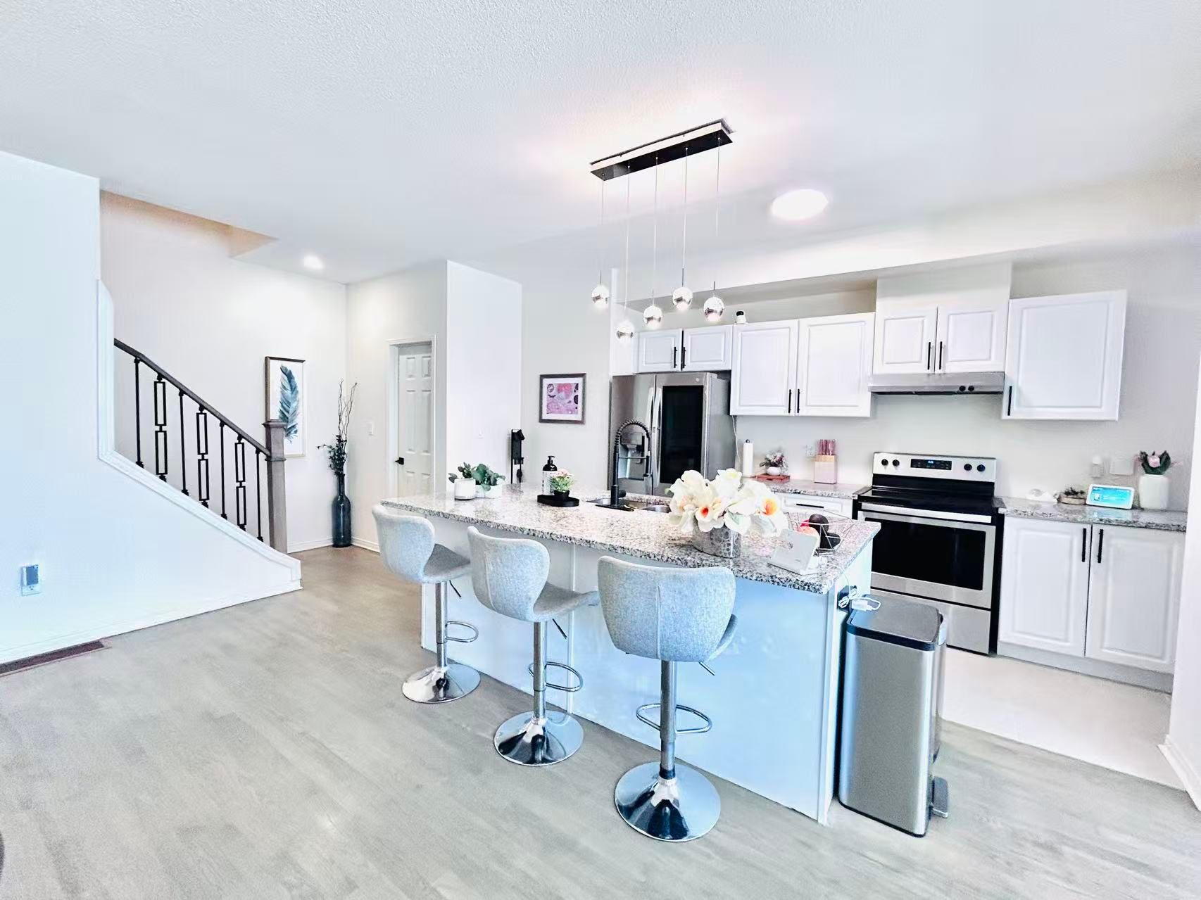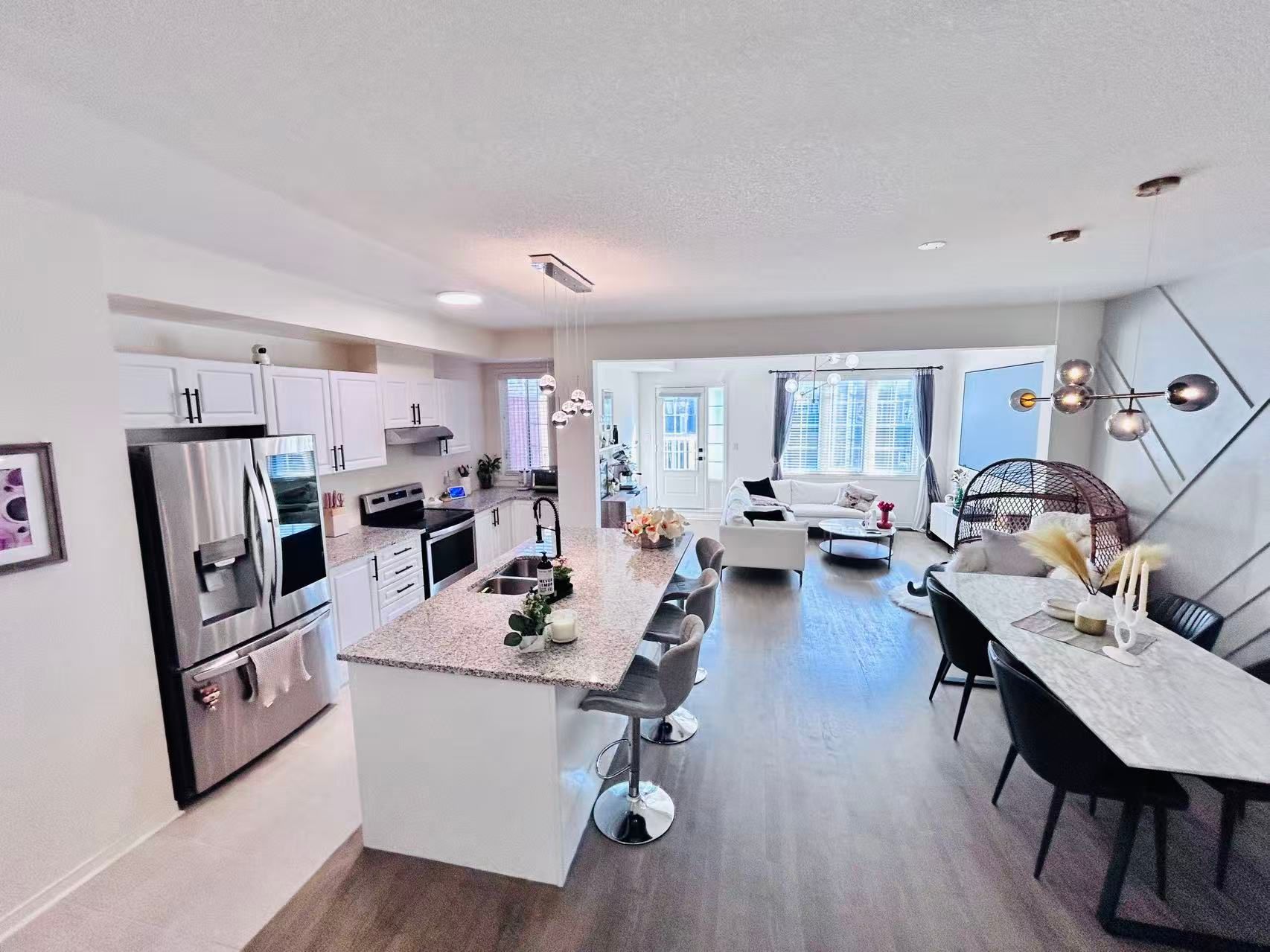 Stunning sun-filled freehold townhouse in prestigious richmond green! South-facing and free from management fees. This beautifully home boasts 9' ceilings on the second and third floors, creating a bright and airy living space. The inviting living area features a direct walkout to the balcony. The owner spent significantly in tasteful updates (2021) including: hardwood floor on the second floor/engineering wood floor on the third floor /a stylish feature wall on the 2nd floor/staircase on 2nd floor /kitchen cabinets /fridge (2021)/3 washrooms/and light electrific fixtures! Three spacious bedrooms on the 3rd floor, including a primary suite with its own private balcony-a perfect retreat after a long day. Functional other bedrooms fulling sunlight's! Smart thermostat (2025). An additional outdoor storage room adjacent to the garage, perfect for all your storage needs. Close all amenities: just 5 minutes walk distances to top school: richmond green ss, parks, costco, home depot, restaurants, banks. 5 minutes driving to hwy 404. Drive minutes to go station, golf court, hospital. Lots more! Motivated seller!