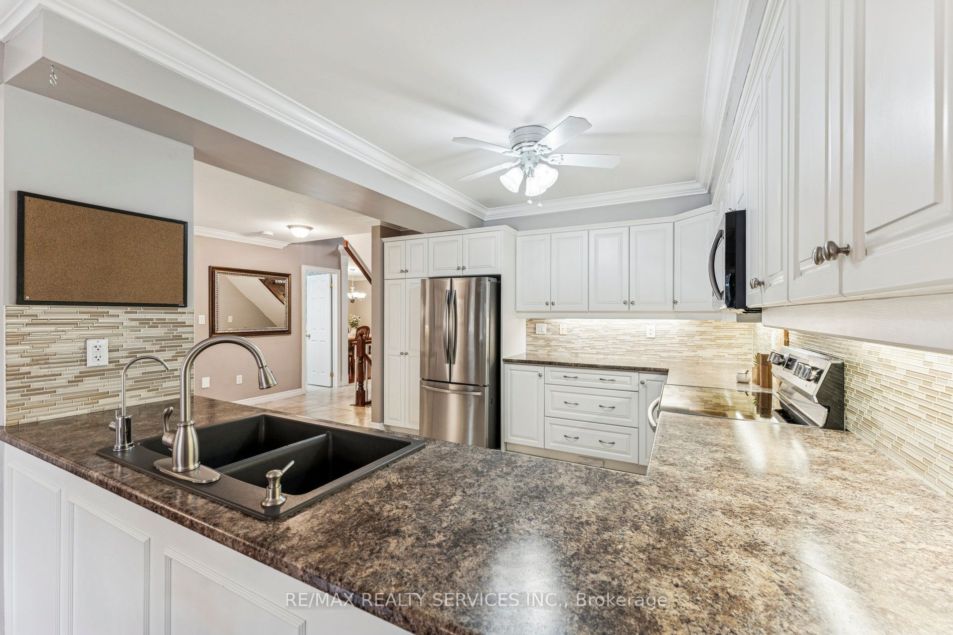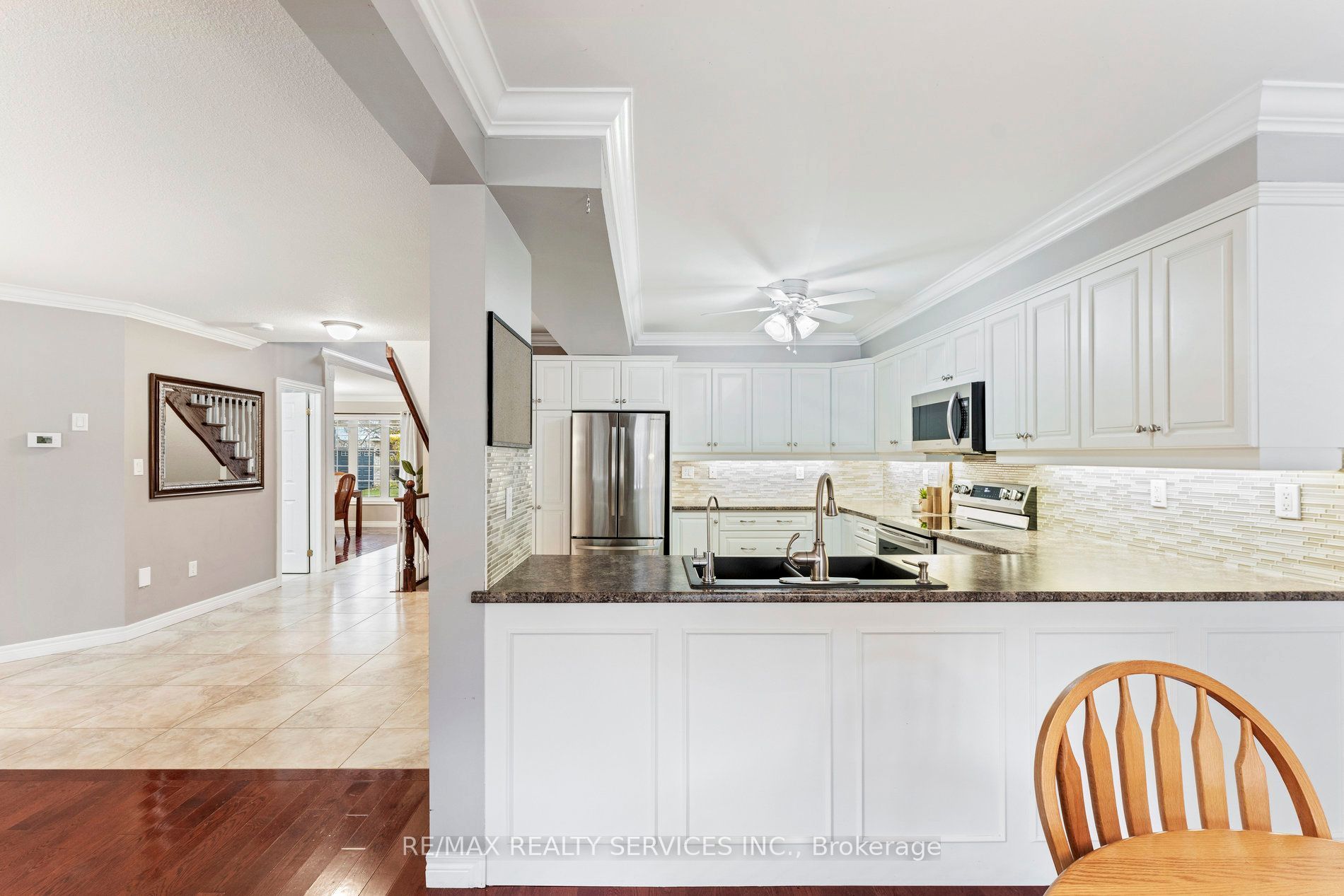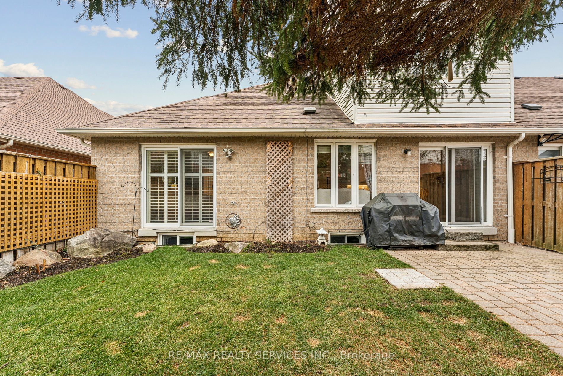 Welcome to old paisley mews in caledon east. A quiet secluded enclave. This beautifully maintained end unit bungalow with loft (a rare offering) has the space & privacy of a multi-level home with the convenience of main floor living. With nearly 1500 sq ft above grade plus a professionally finished 1125 sq ft lower level, you'll enjoy an impressive 2615 sq ft of total living space. The foyer features high ceilings & large ceramic tile that continues through to the kitchen with tons of cabinetry, pantry storage, generous counter space & freshly painted solid maple cabinets. The open-concept living room is warm & inviting, perfect for gatherings or quiet evenings at home. The main floor bedroom includes a walk in closet & 4pc ensuite, plus a walkout to the backyard. The dining room was originally the 3rd bedroom & can easily be converted back with the addition of a wall & door. Upstairs the loft retreat is a standout feature: a large bedroom, an updated 3pc bath & a charming reading nook complete with custom built-in library shelving. A perfect space for a primary suite or a private guest level. Professionally finished lower level is exceptional. It offers a large family room with a gas fireplace, a full bedroom with closet, a 3pc bath, oversized laundry room. Step outside to a private fully fenced backyard with no home directly behind. The interlock patio provides ample space for outdoor dining, gardening or simply unwinding in nature. Craftsmanship is showcased throughout, custom woodworking, wainscoting, crown moulding & upgraded trim. All flooring has been replaced & bathrooms have been stylishly updated. Parking for 3 cars. Potl fee of $153/mth, which covers common elements including private roads, visitor parking, snow removal. This home includes one bedroom in the loft, one on the main level, and a third main-floor bedroom presently used as a dining room. This room can be restored to its original bedroom layout with the addition of a partition wall.