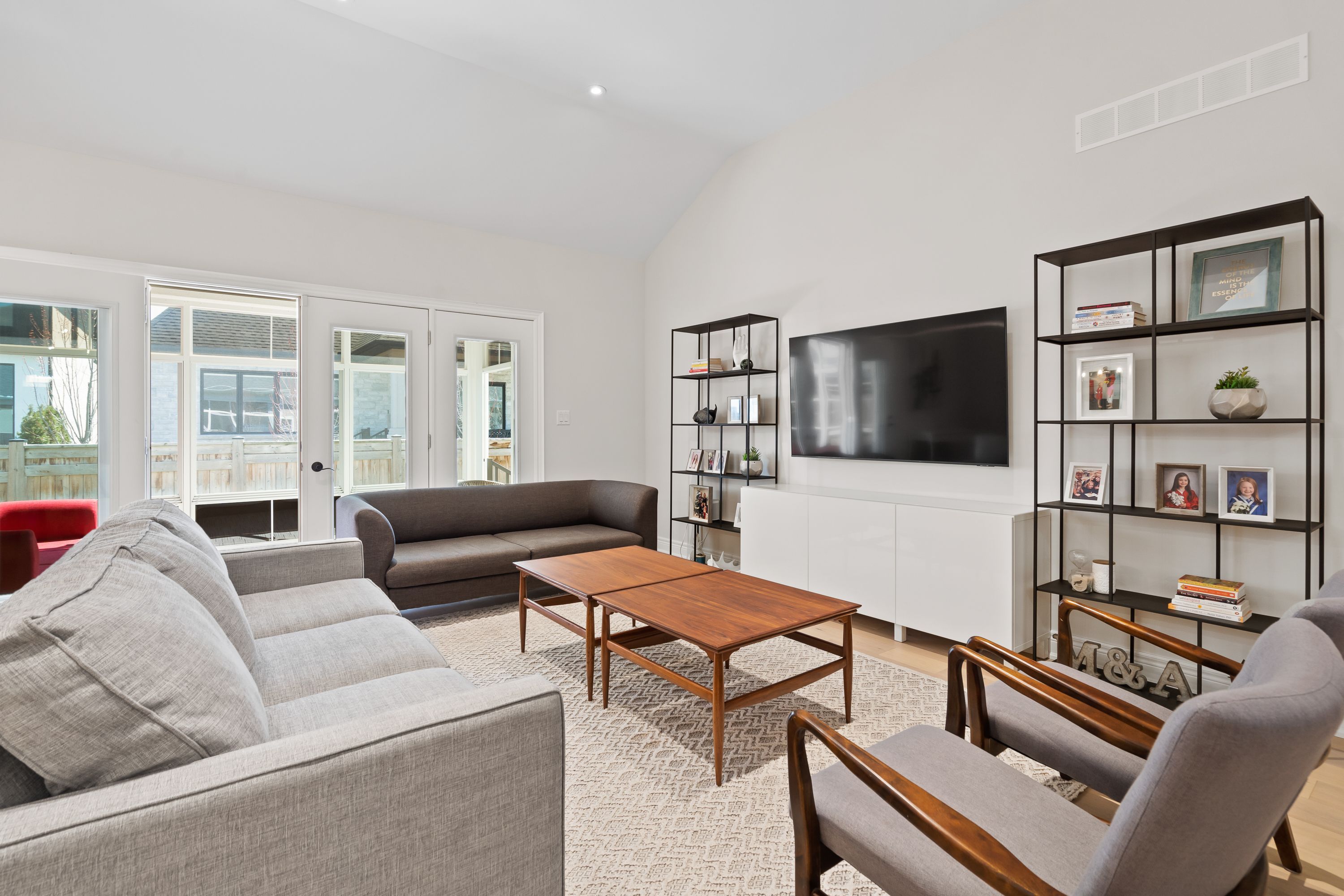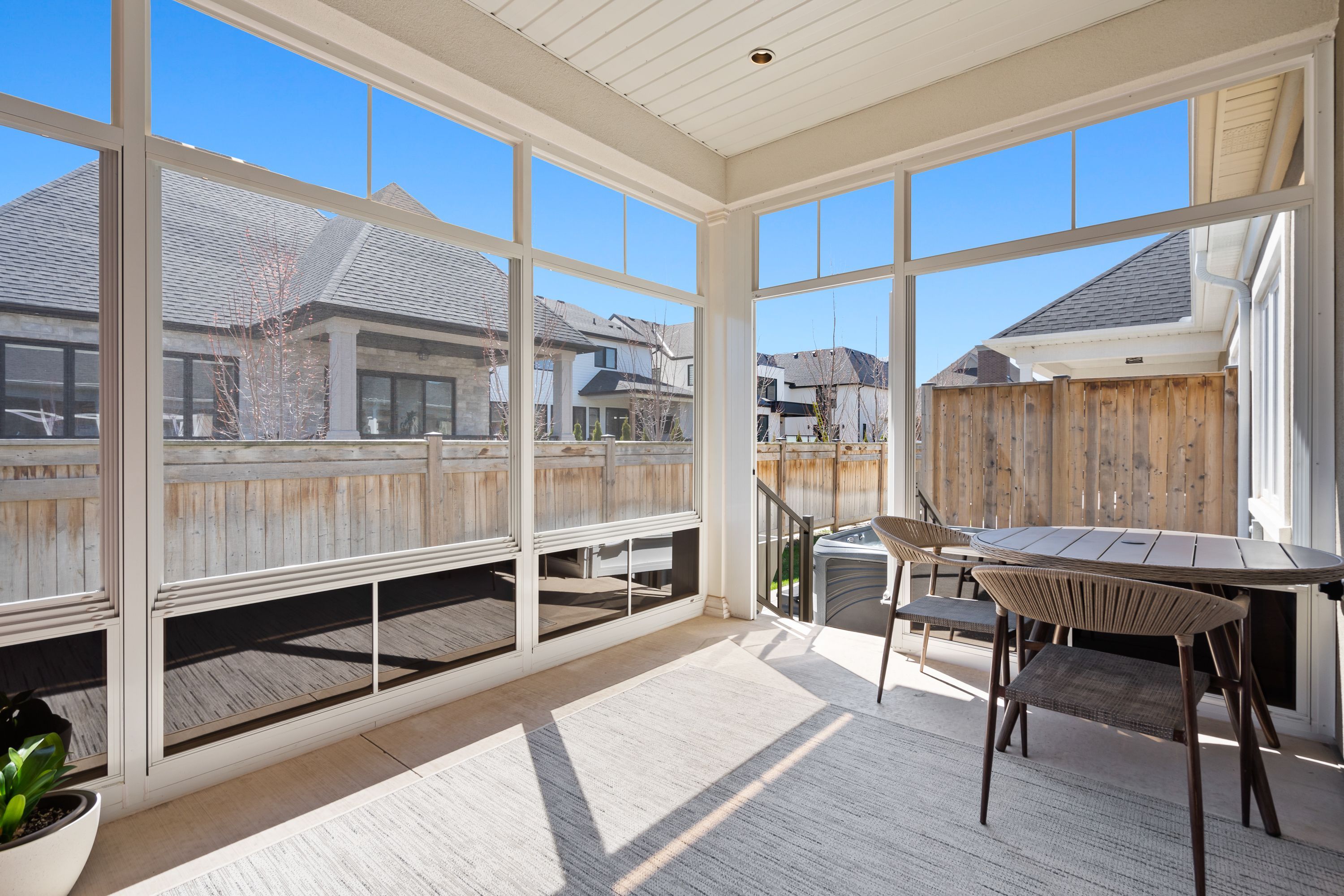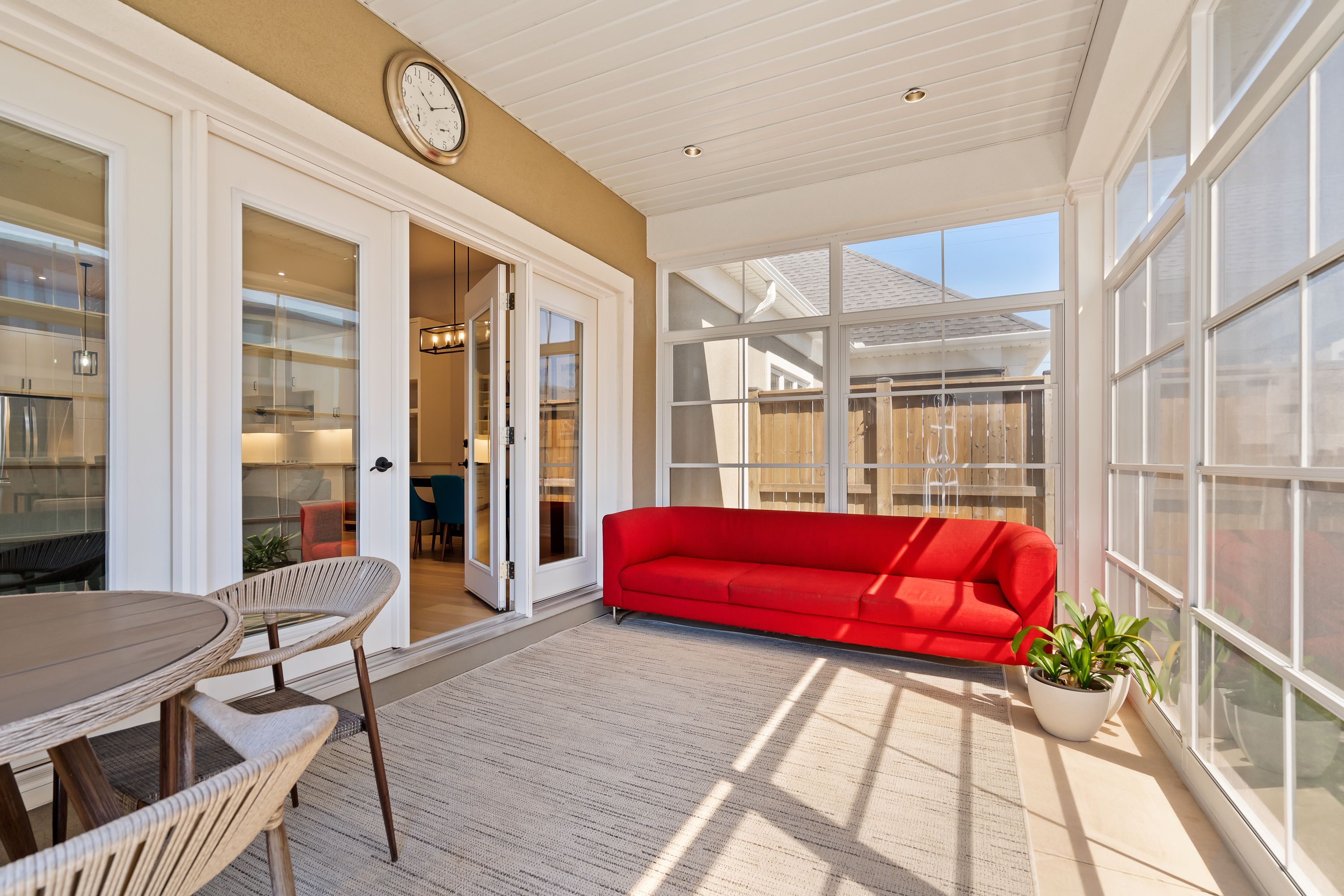 • Bright sunroom and open living space with impressive 11-foot ceilings.