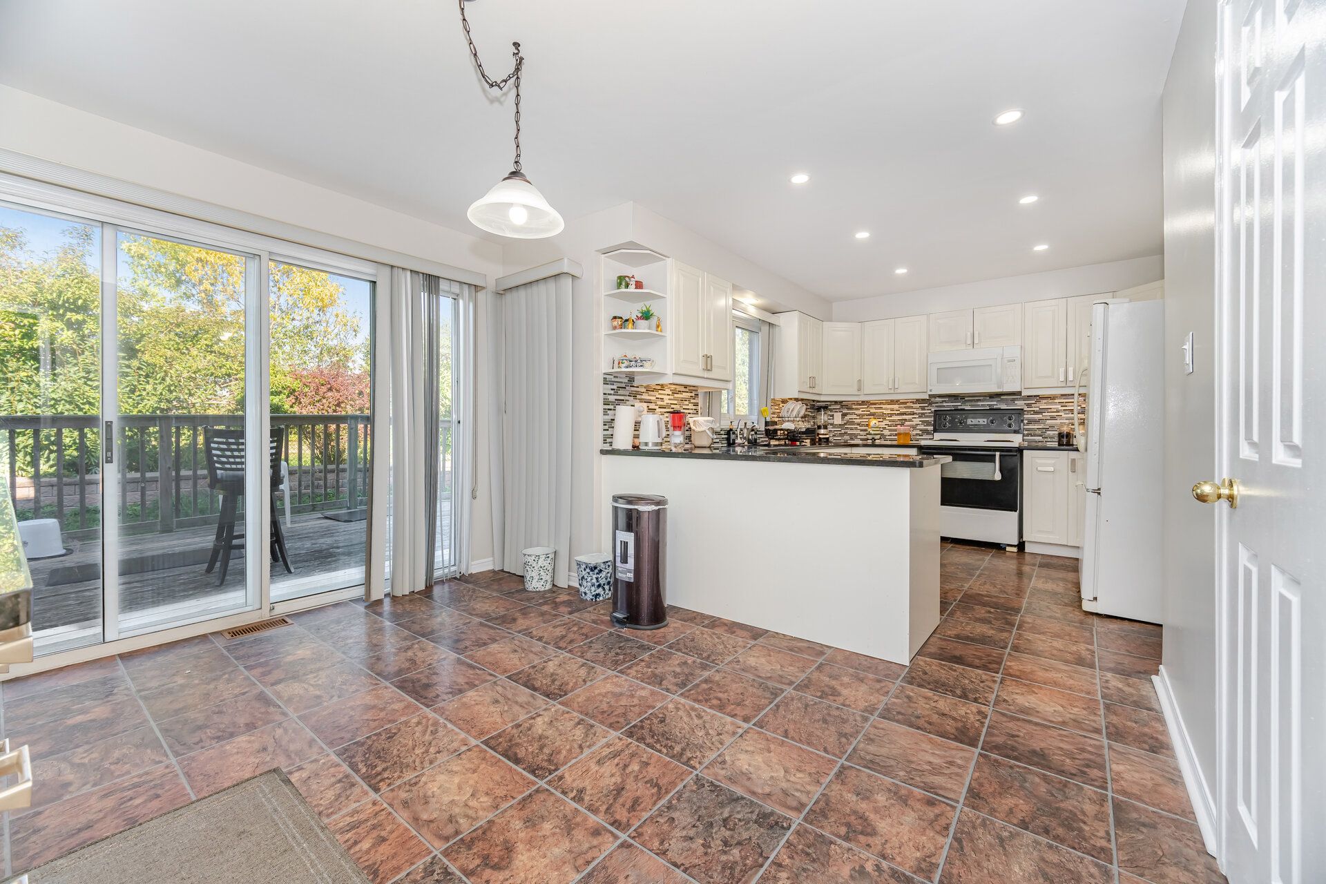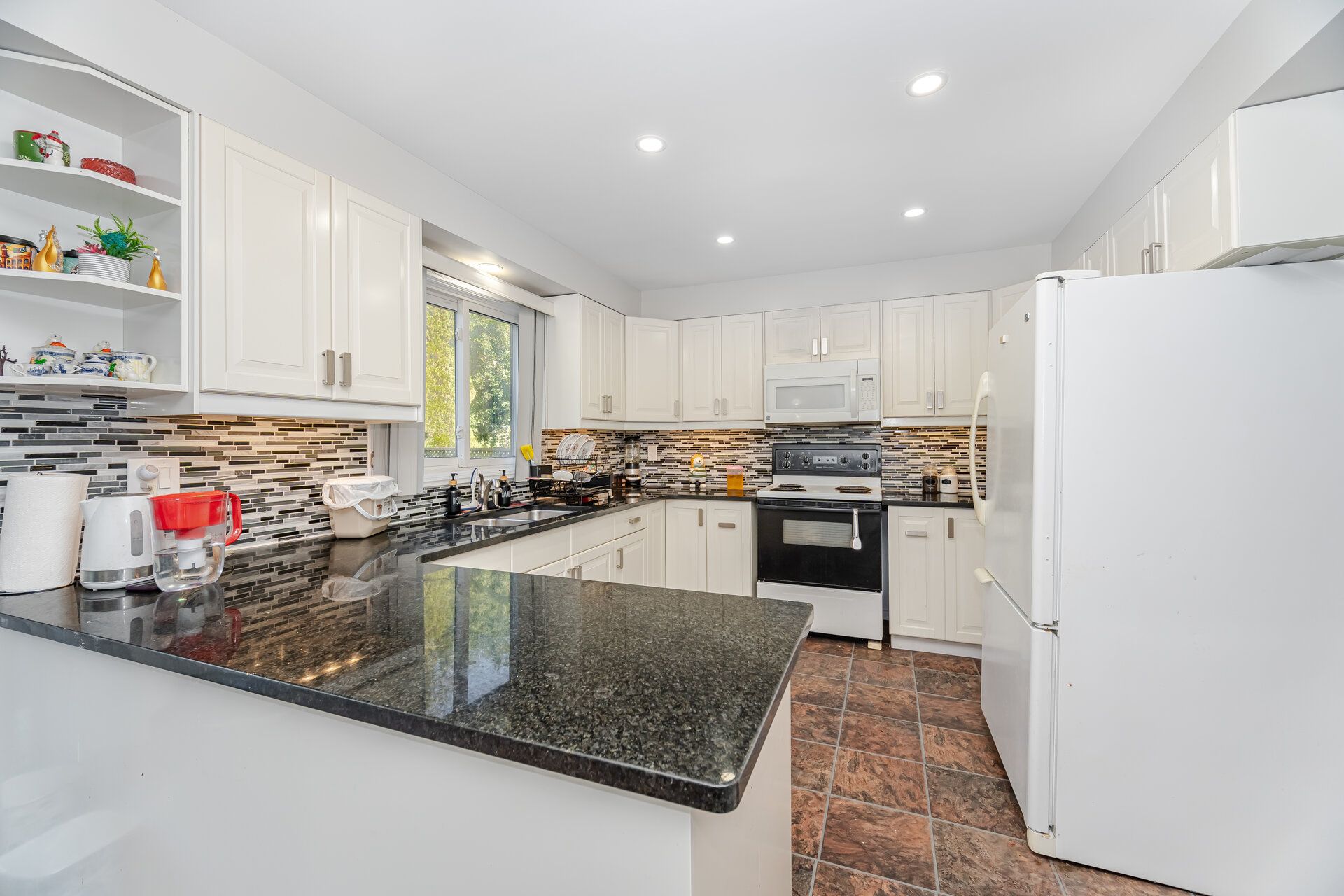 • Renovated kitchen featuring granite countertops and walk-in pantry.