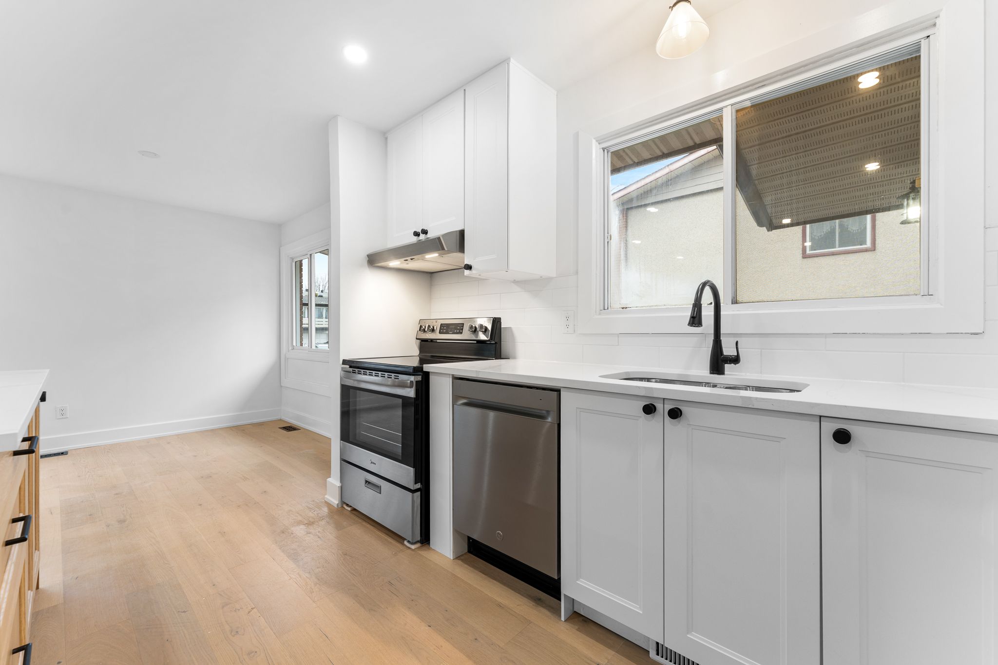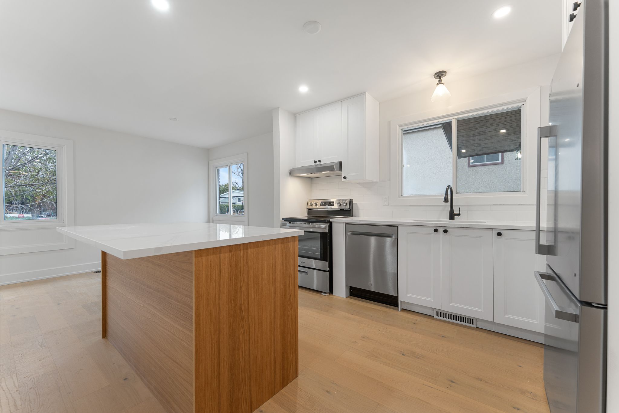 Welcome to this stunning, fully renovated semi-bungalow offering modern finishes, and a bright, spacious layout. From the moment you step inside, you'll appreciate the thoughtful updates, open-concept design, and attention to detail throughout. The main floor features a sun-filled living area with large windows, brand-new flooring, and a seamless flow into the updated kitchen-complete with sleek cabinetry, quartz countertops, stainless steel appliances, and ample storage. Two generous bedrooms and a beautifully redesigned full bathroom complete the main level. The renovated lower level offers incredible versatility, featuring a large family room, 2 additional bedrooms, upgraded bathroom, and plenty of storage. Located in a quiet, family-friendly neighbourhood close to schools, parks, transit, and shopping, this home delivers exceptional value and modern comfort. Must see!