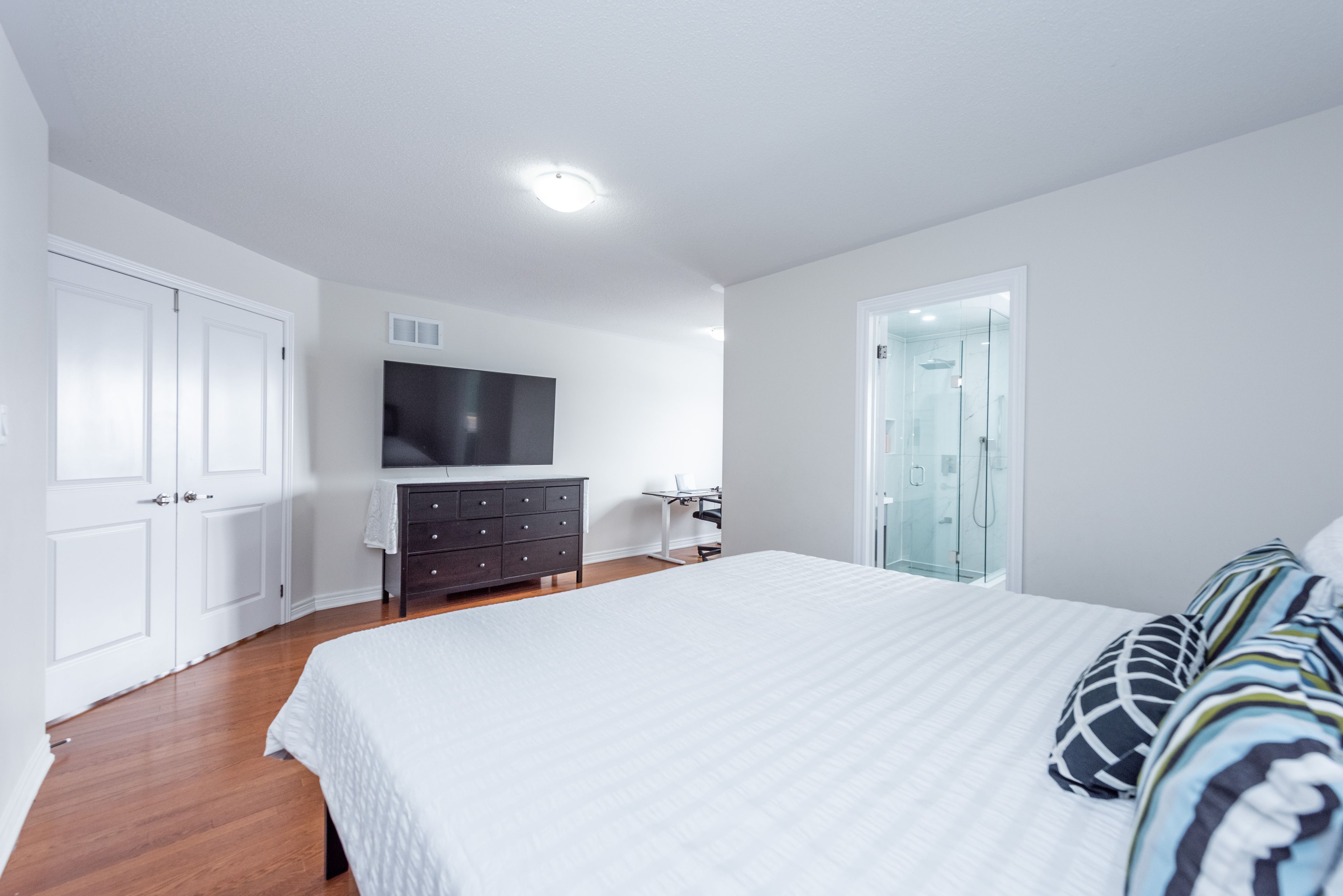 Gorgeous well kept fully upgraded 2357 sqft. Corner town house on premium ravine. Huge pieshaped 155 ft deep lot, 9" ceiling on m/f & double door entry, hardwood on full house, oakstaircase, upgraded kitchen with granite c/t, back splash center island, s/s appliances, longcabinet w/lights, pantry, master w/ 5 piece ensuite, w/i closet jacuzzi tub & sitting area, family room w/gas fireplace & open to above high ceiling w/pot lights. Recently modernrenovated washrooms with standing showers spacious 2 bedroom finished basement with 2 fullwashrooms & cold cellar. Entire house freshly painted. Close to schools, hwy, plaza, transit,park, etc..
