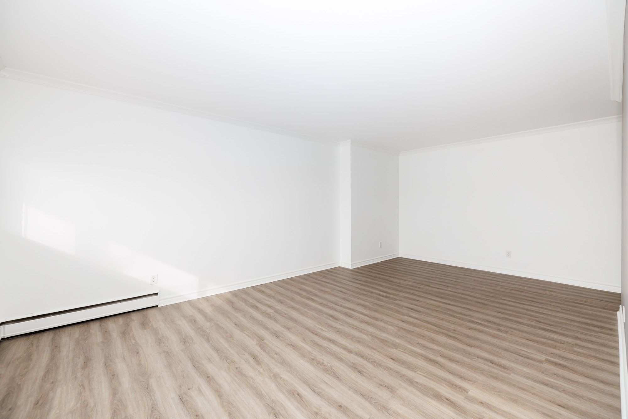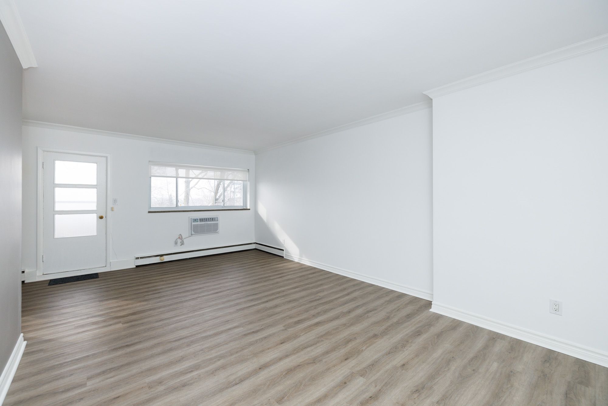• Spacious two-bedroom unit with a large living room and balcony access.