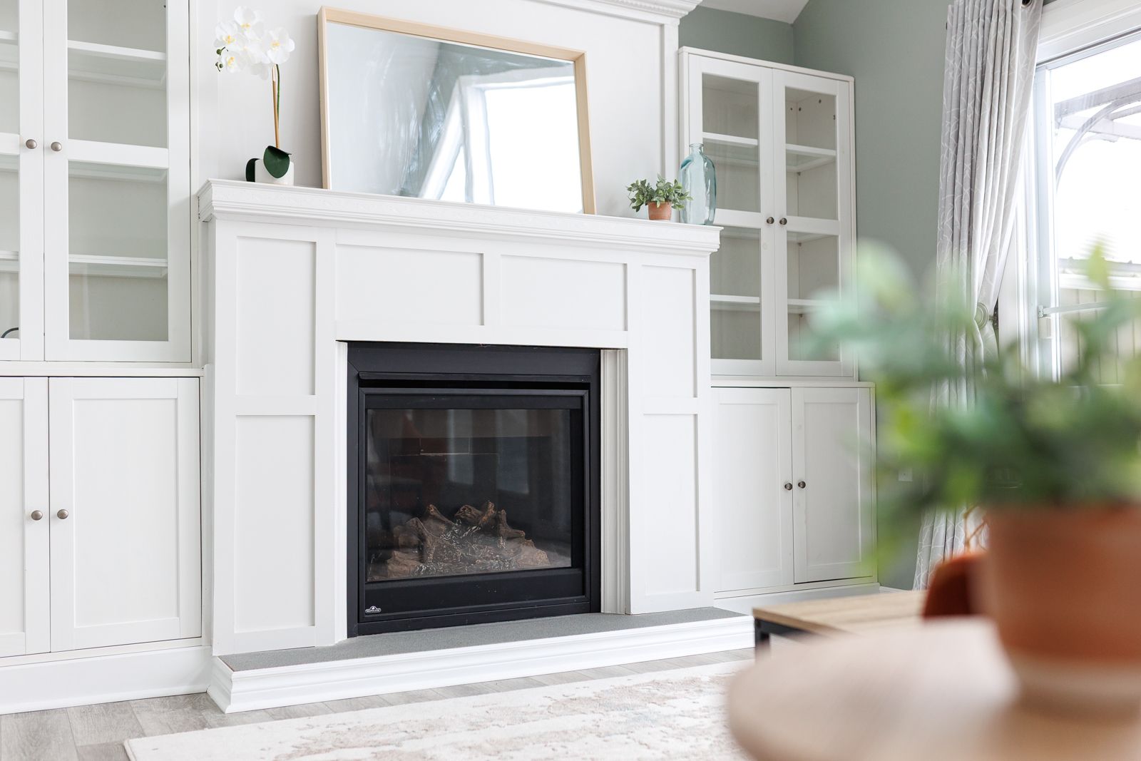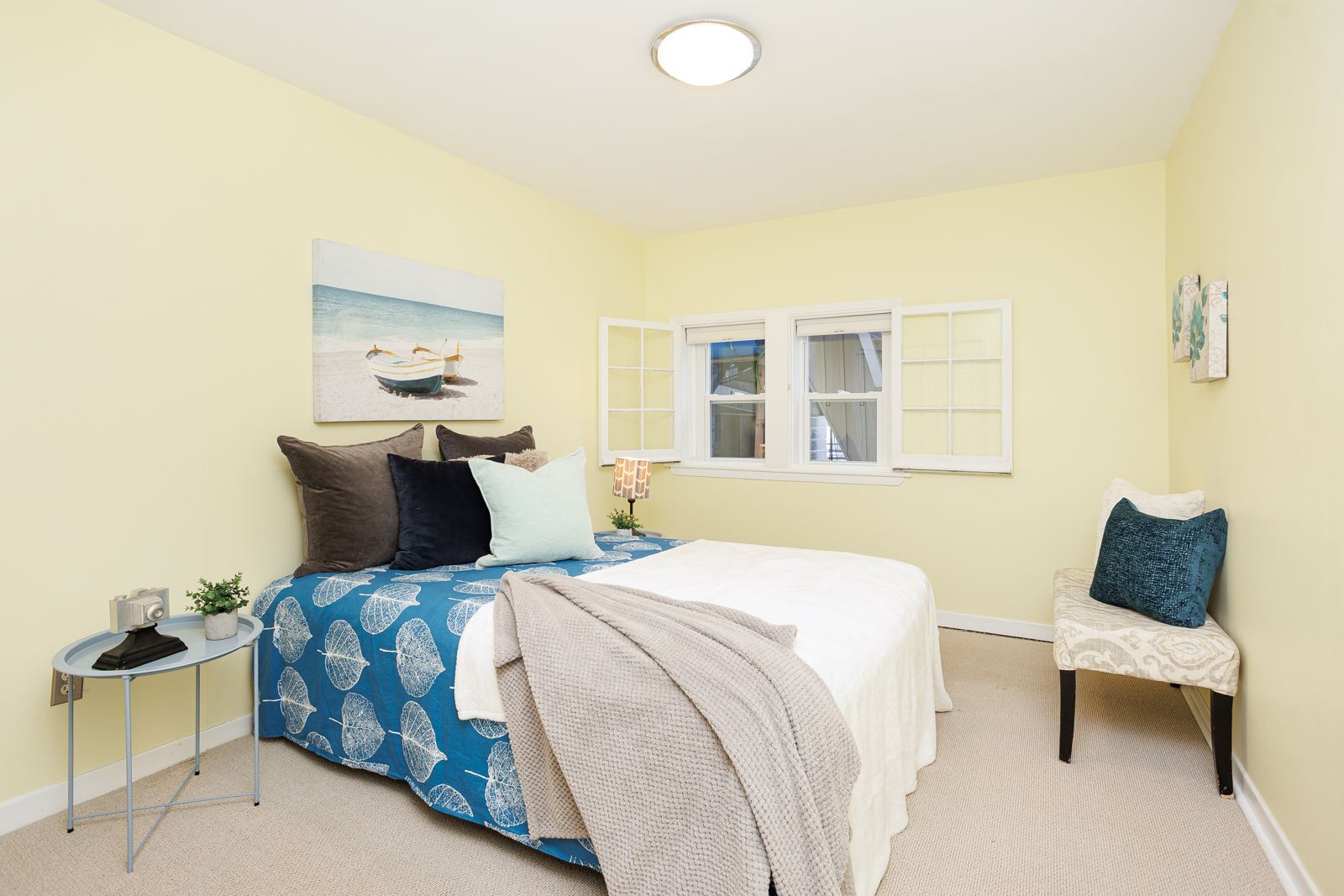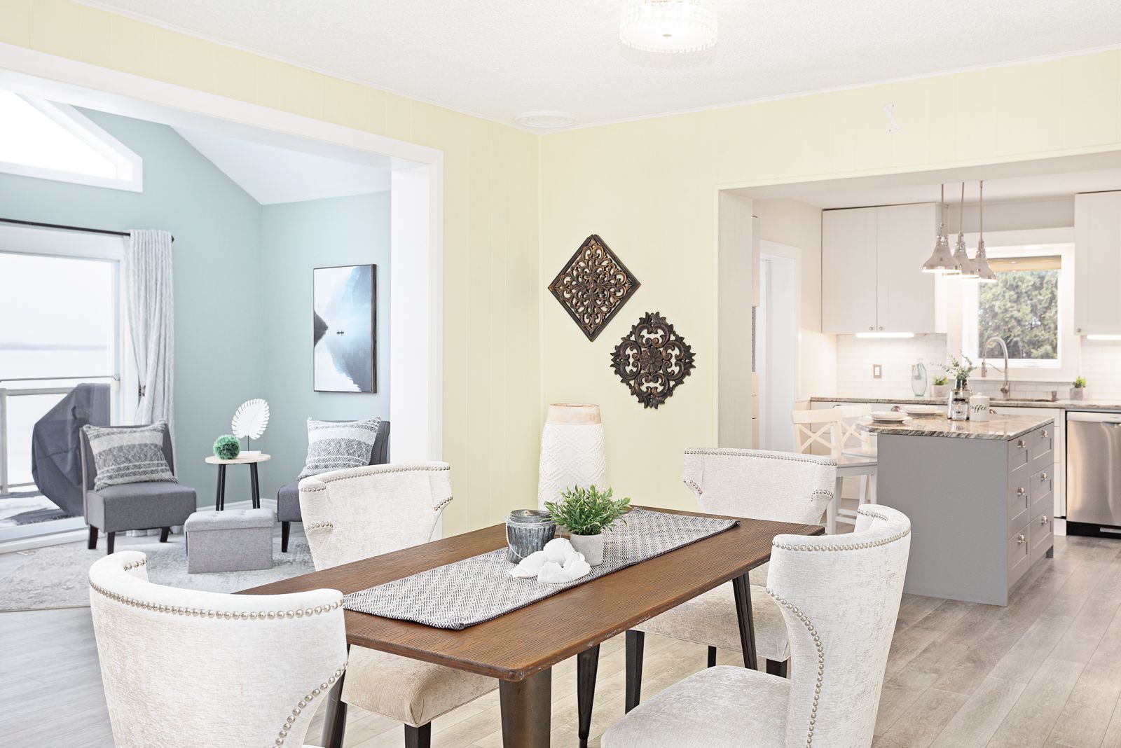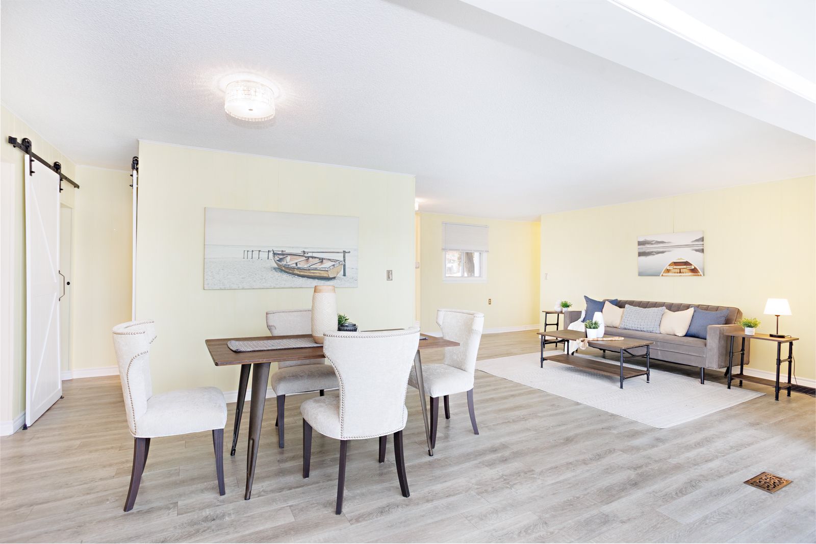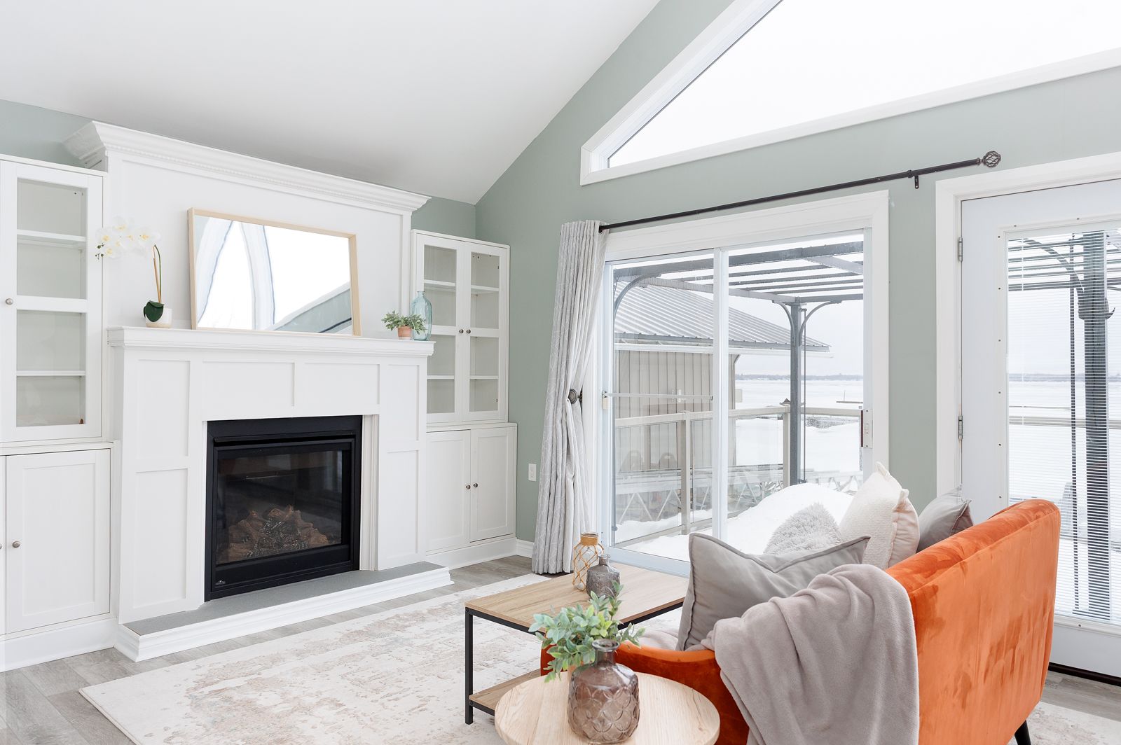 • Bright, open living space with large gable windows for natural light.