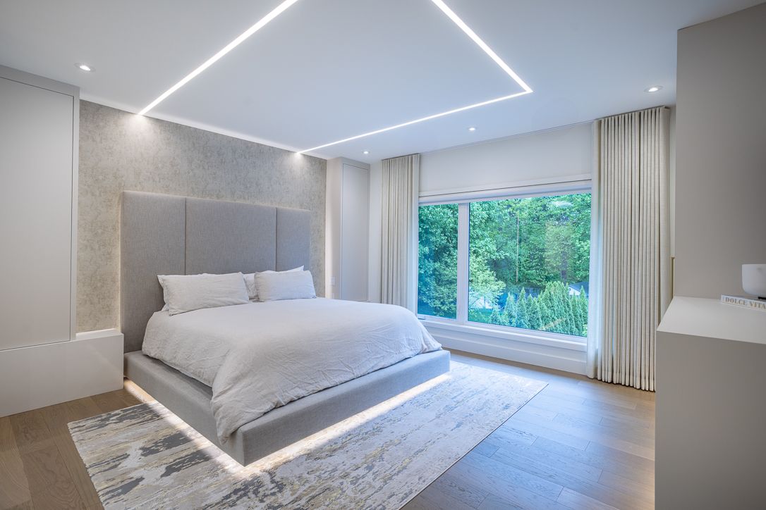 • Lower level includes a home theatre, gym, and lounge area.
