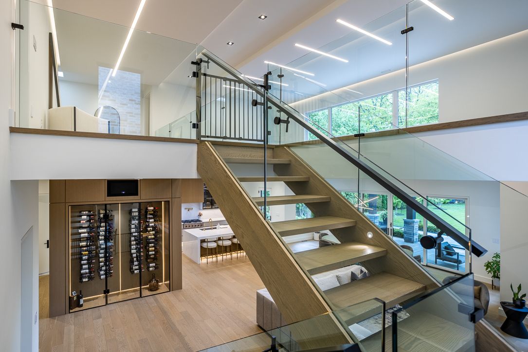 Welcome to 14 penhale drive a modern masterpiece in the heart of etobicoke. Experience architectural brilliance and luxurious living in this newly built custom home, set on an exceptional south facing 68 x 268 ravine lot in one of etobicoke's most desirable family neighborhoods. Every inch of this residence reflects thoughtful design, premium craftsmanship, and effortless style. A bold 20-foot ceiling in the family room creates an awe-inspiring first impression, enhanced by a full wall of windows and a 16-foot sliding door that opens to a covered loggia perfect for seamless indoor-outdoor living and entertaining. Sunlight streams throughout the main level, highlighting the open-concept layout and sleek modern lines. At the heart of the home, a glass-enclosed, temperature-controlled 200-bottle wine display offers a stunning focal point that combines visual drama with function. The chefs kitchen, custom-designed by napa valley kitchens, is a showstopper featuring a bookmatched stone backsplash, caesarstone countertops, high-end integrated appliances, and a separate service kitchen for effortless hosting. Upstairs, four spacious suites each include bath/washroom access, offering comfort and privacy for every family member. The lower level is designed for recreation and relaxation, with a home theatre, gym, wet bar/kitchen, lounge area, and an additional bedroom for guests or extended family. No detail has been overlooked from custom millwork and high-end finishes to full smart home automation and a 2-car garage. 14 penhale drive is a rare opportunity to own a truly exceptional modern home in a warm, established community known for top schools, lush parks, and everyday convenience.
