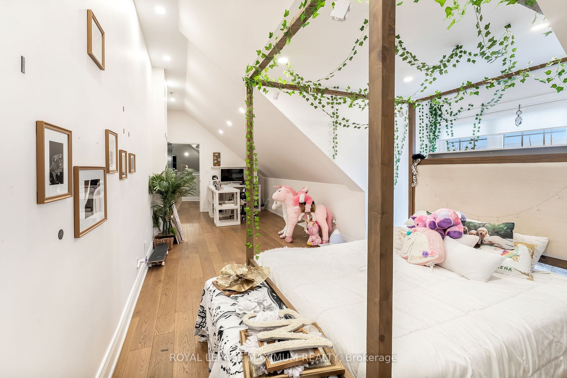 Welcome to this one of a kind sprawling ranch-style bungalow that exudes luxury &sophistication. Nestled on a perfect lot, it features a 5 car gargae - a car enthusiasts dream. At the hub of the home is a gourmet kitchen complete with a spacious pantry adjacent to a formal living & dining room inspired by timeless elegance. This home has an additional 1200 sqft loft featuring a formal library & two uppper bedrooms, each with a matching ensuite. A professionally finished basement complete with a modern open concept kitchen with a massive breakfast island that hosts ample seating, a cozy rec room, a custom gym with sleek entry doors as well as a theatre room - the ultimate home entertainment. This is a true gem.