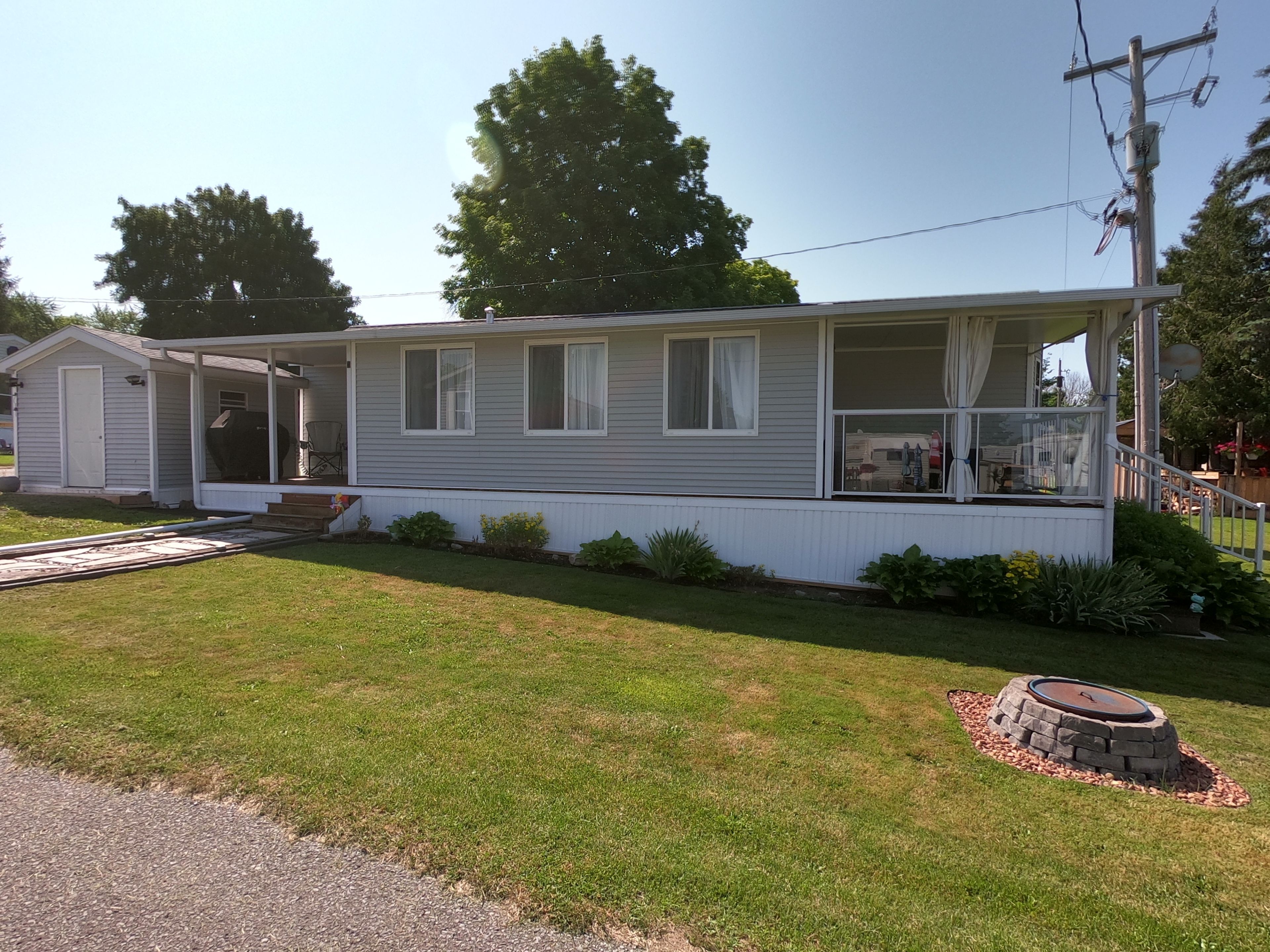This 2 bedroom, 2 bathroom, 2006, spacious park model home with large sunroom addition with walkouts to front and rear covered patio areas is meticulous and shows like brand new! Enjoy your may to october affordable home away from home in shady acres park on rice lake, less than 90 minutes from toronto. 2026 land lease fees have been paid. Affordable cottage ownership for those weekend and holiday getaways or the perfect spot for snowbirds to call their summer home. Indulge in the numerous park activities (social events, boating, fishing, pool, basketball, volleyball, horse shoes, shuffleboard, playground, etc) or enjoy the quiet, peaceful, country life. Open concept living, dining & kitchen areas with vaulted ceilings. Primary bedroom with 2pc ensuite and plenty of storage. Guest bedroom with built in bunks. Main 4pc bathroom. Shed. Bbq. Fire pit. You deserve a break today......... Move in ready........ Enjoy the summer of 2026!