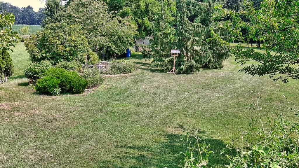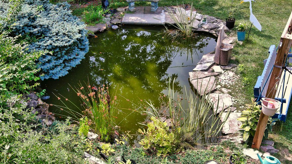 • Large yard features fruit trees, a fish pond, and space for a workshop.