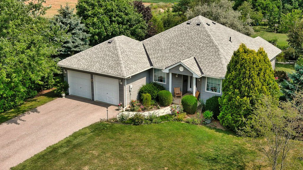 Well-kept 3 bedrooms and 2 full bathrooms bungalow on a dead end street with a double car garage, situated on an approximately 1 acre park like property completes with fruit trees (pear, cherry, mulberry, grape vine), fish pond plus a vegetable garden. The primary bedroom has a 4 piece ensuite bath with jetted tub. The main floor also includes another full bathroom, two extra bedrooms, direct entrance to the garage and a laundry area. The open concept kitchen has lots of cabinets and counter space with an island. The kitchen features tiled backsplash, under cabinet lighting and granite countertop on the island. Off of the kitchen is a dining area that receives lots of natural light which looks out to the deck and beautifully landscaped yard. The living room just off of the kitchen is spacious with hardwood flooring. Lower level is finished with plenty of storage area. When you first get to the lower level, you will find a great-sized rec-room and living room, small workshop and another room to suit your needs. Many features in this custom built home including 200 amp service that allows for generator hookup, 9 ft ceiling on main floor, it also has a gas dryer, a sump pump with a back up battery (2023), hrv system, updated furnace (2024), hot water tank (2024) and a gas line for the bbq just to name a few. Only 5 minutes to lake erie and 7 minutes to the 401. Enjoy this spring with the yard you have always wanted. Enough property to build your dream shop too!