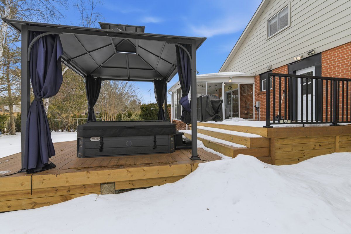 Welcome to 14 ravensdale road, a truly unique home in the highly sought-after pebble beach estates community in cobourg - just moments from lake ontario with exclusive private beach access for residents. Set on a mature 60 x 125 ft lot, this thoughtfully updated 3-bedroom, 3-bathroom two-storey blends modern farmhouse character with everyday functionality. The remodeled main floor features a custom kitchen with butcher block island, farmhouse sink, stainless steel appliances, and subway tile backsplash. Board and batten detailing, pot lights throughout, and carefully curated finishes add warmth and personality throughout the home. The main living space walks out to a three-season sunroom with patio doors on three sides, creating the perfect spot to relax while overlooking the backyard. Step outside to enjoy the newly built deck (2025) and included hot tub (2024). Upstairs, the primary bedroom retreat features wood beams, custom wall detailing, a large walk-in closet, and a spacious five-piece ensuite. Two additional bedrooms provide flexible space for family, guests, or a home office. The fully fenced backyard includes mature trees and a custom-built outbuilding with water service, ideal for a studio, hobby space, or future workspace. Additional updates include roof shingles (2023), air conditioner (2024), rebuilt deck (2025), and a water-powered backup sump system for added peace of mind. The partially finished basement offers additional space with future potential. Located on a quiet, low-traffic street just one block from the lake, this home offers a rare combination of character, lifestyle, and location. A rare opportunity to enjoy private beach living in pebble beach estates - schedule your showing and experience this home in person. Square footage as per mpac report. Room measurements as per photographer.