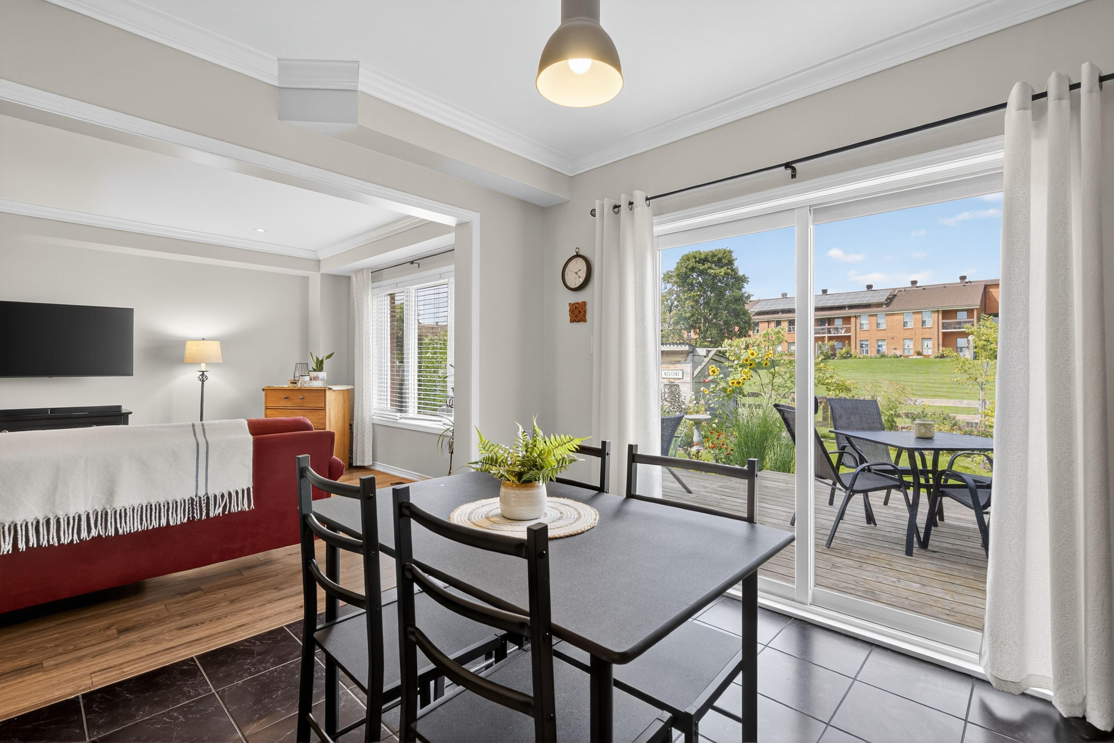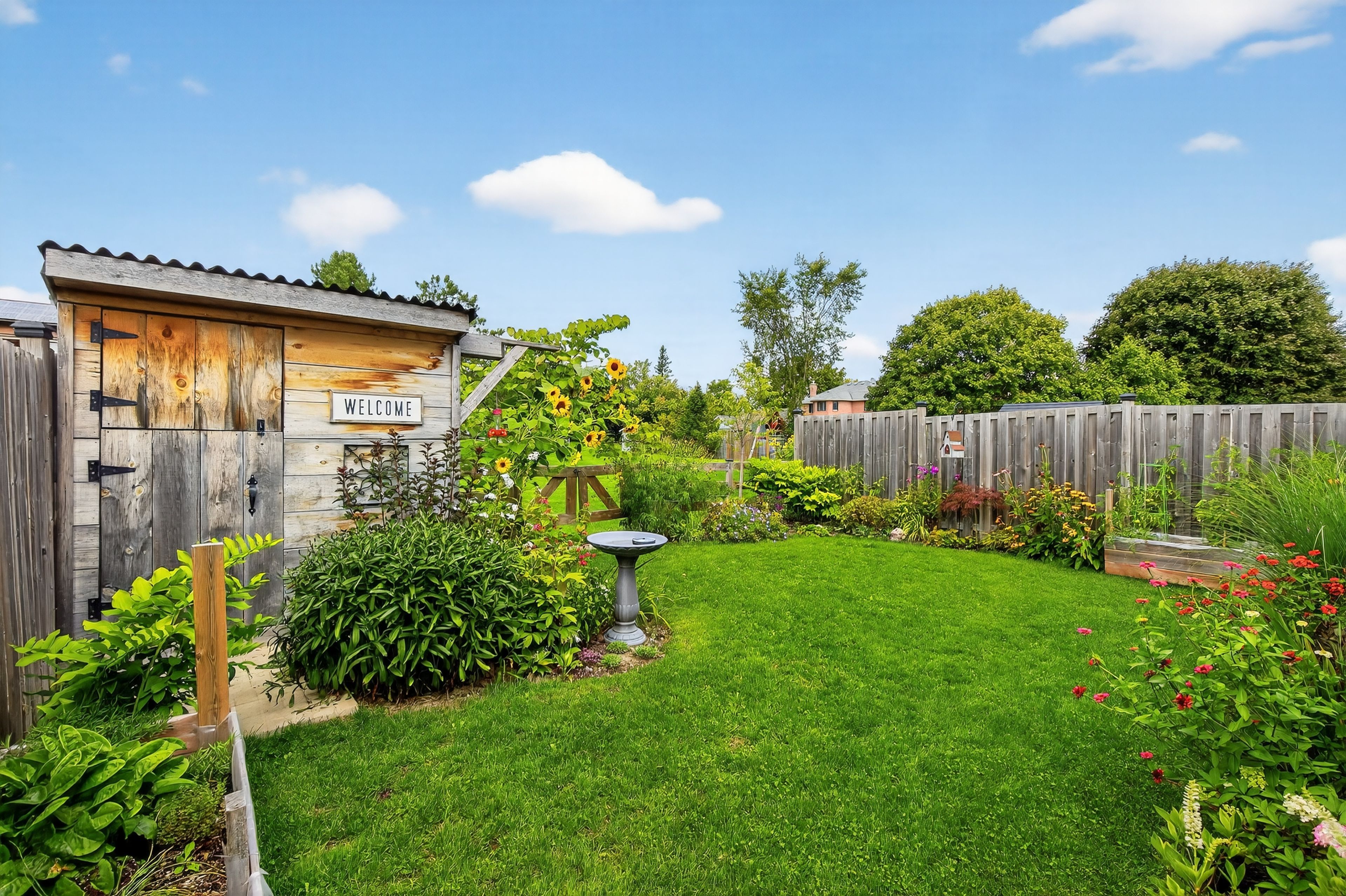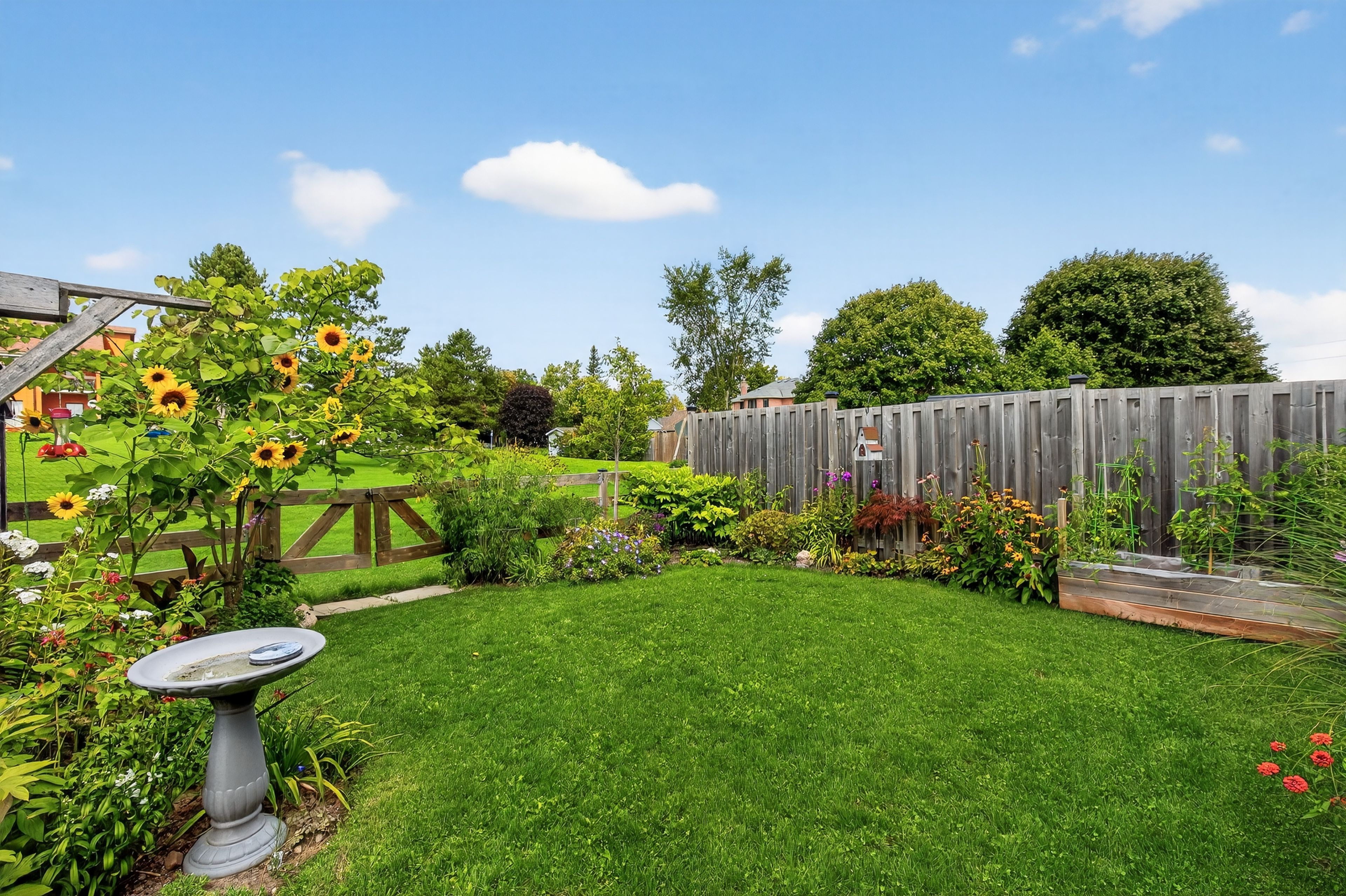 • Beautifully landscaped yard with deck overlooking greenspace.