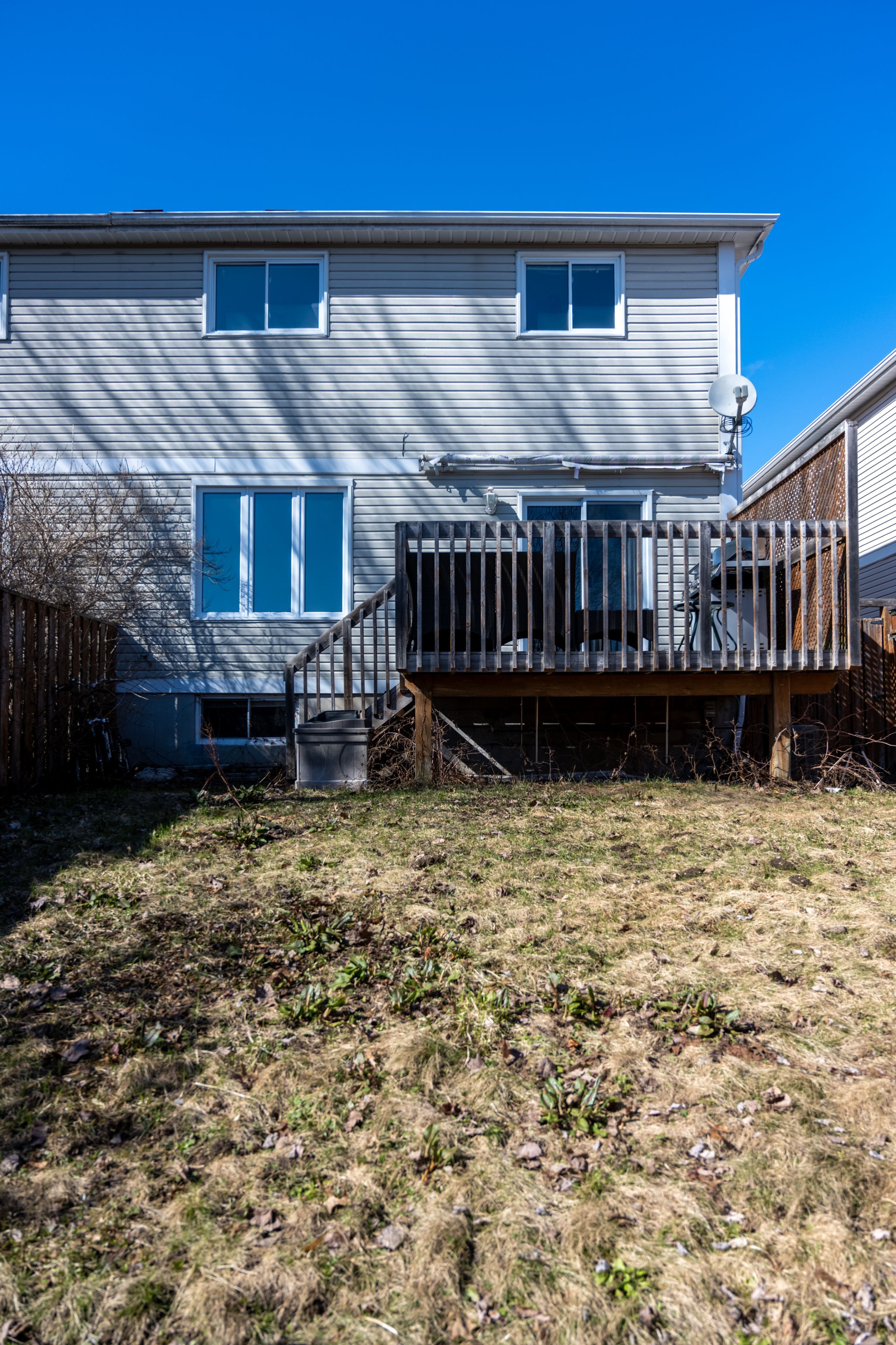 A place with space! Spread out in this 4-bedroom, 3-bath, 2-storey semi, located on a quiet cul-de-sac, conveniently close to major shopping areas, schools, and the beach. This spacious model boasts 1677 sq ft with a great main floor open kitchen /dining room with walkout to deck and fully fenced yard, bright foyer and living room, 2 pc powder room, and access to garage. Upstairs offers 4 bedrooms and a family bath. Even more space in the finished basement featuring a huge rec room with a gas fireplace, a 3-piece bath, laundry & utility room. Other notable features include forced gas heat, central air conditioning, and a private double driveway. Property pre-inspected for your peace of mind.