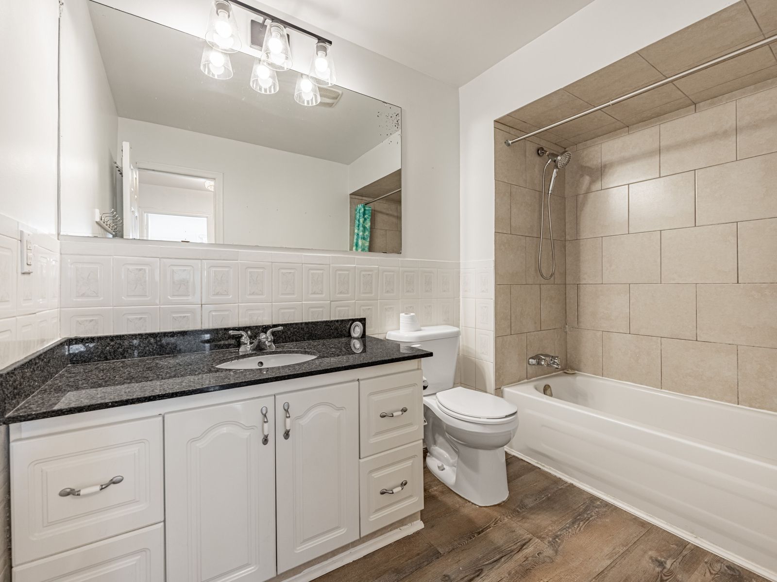 • 3 bedrooms and a large kitchen with granite countertops and new dishwasher.