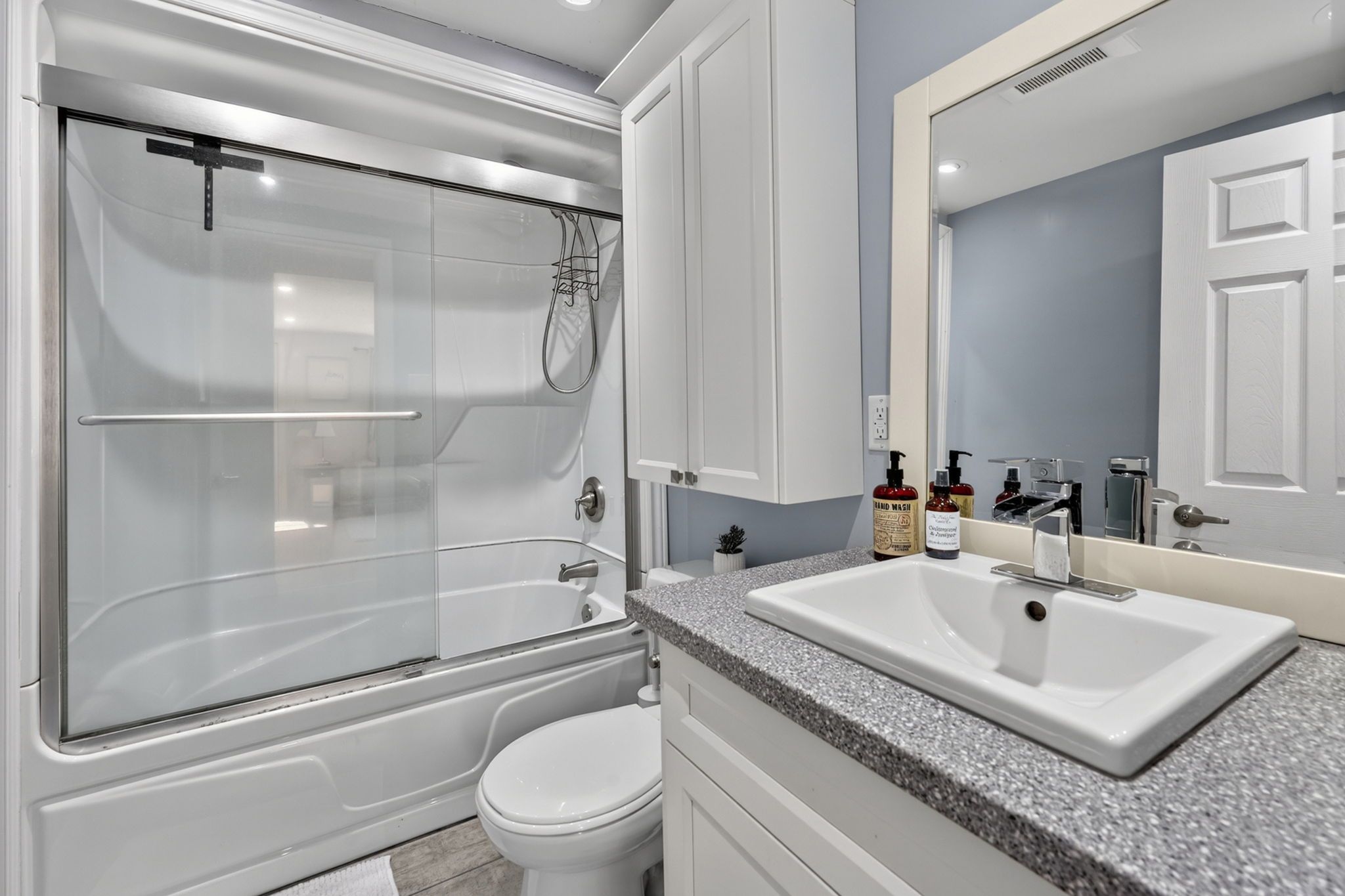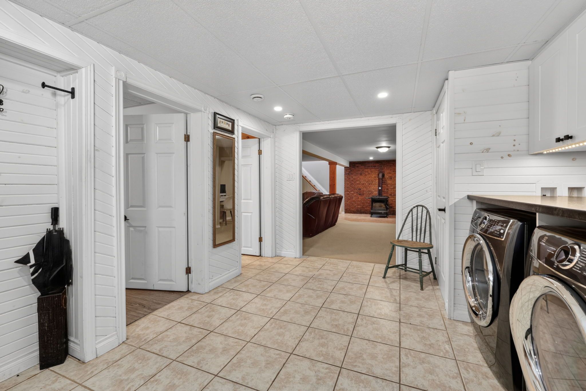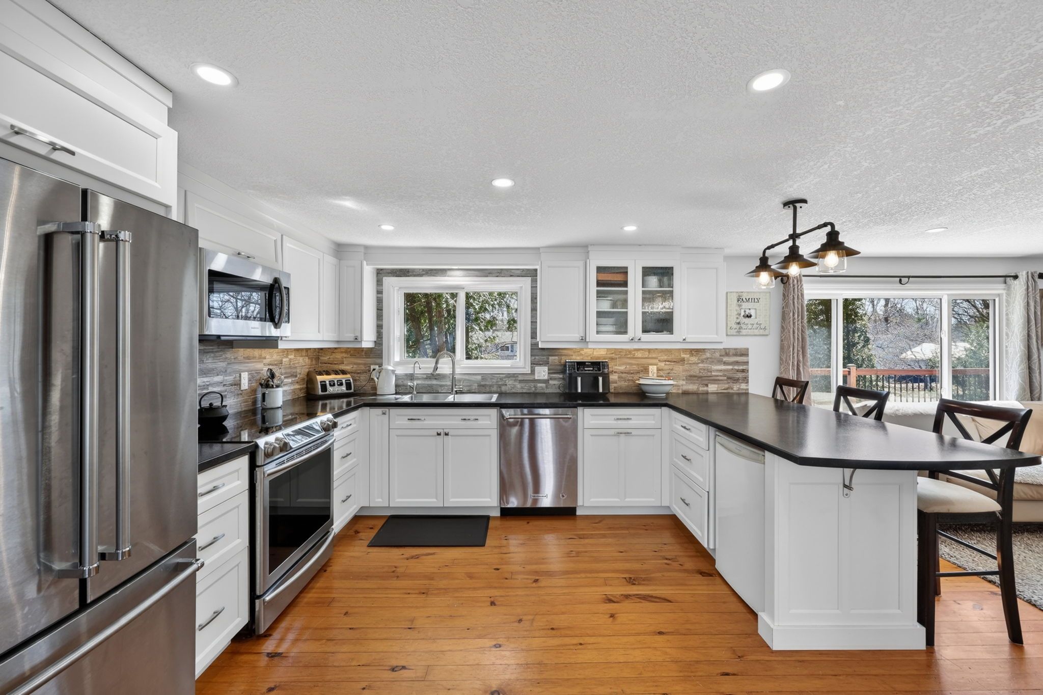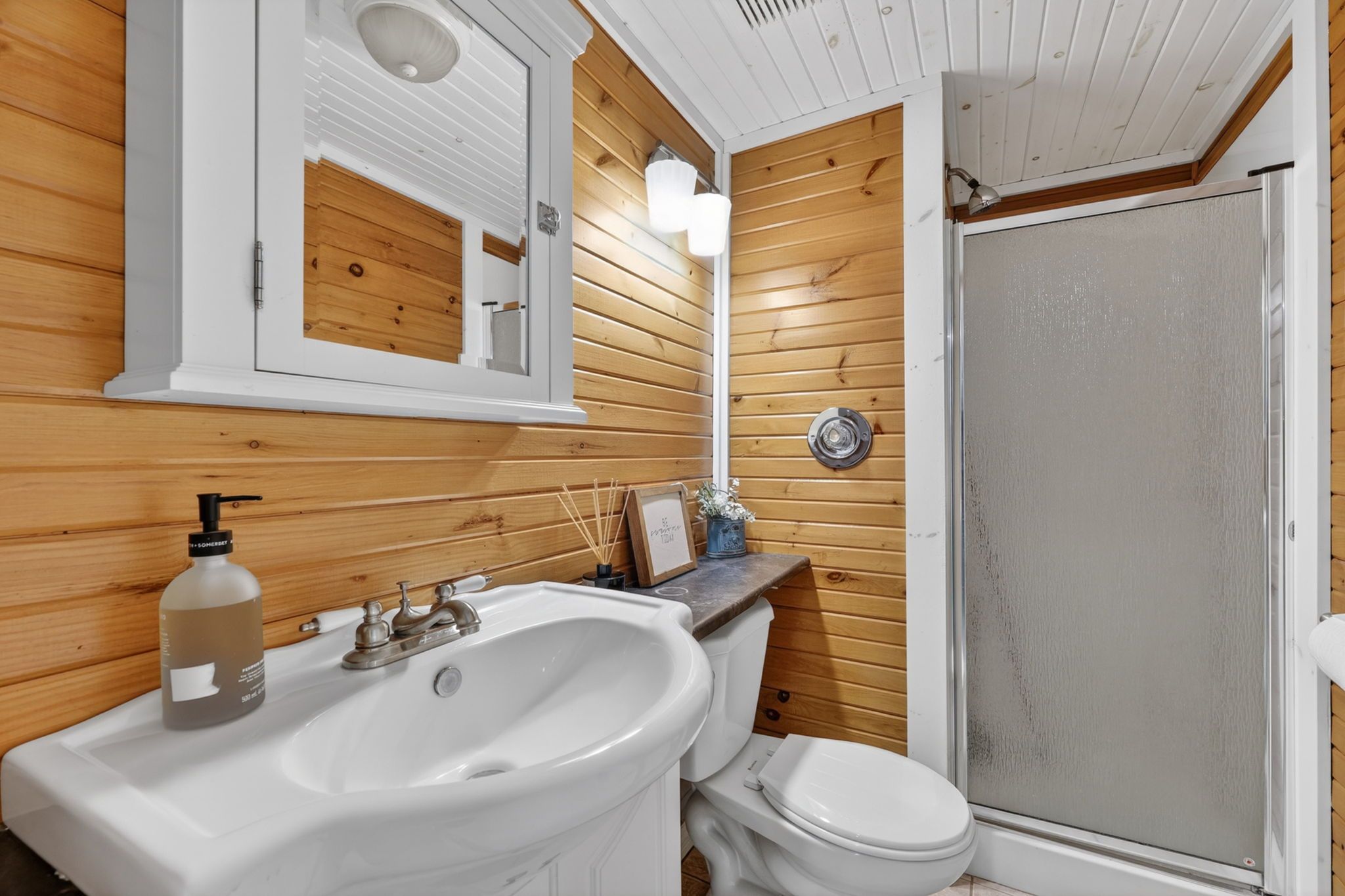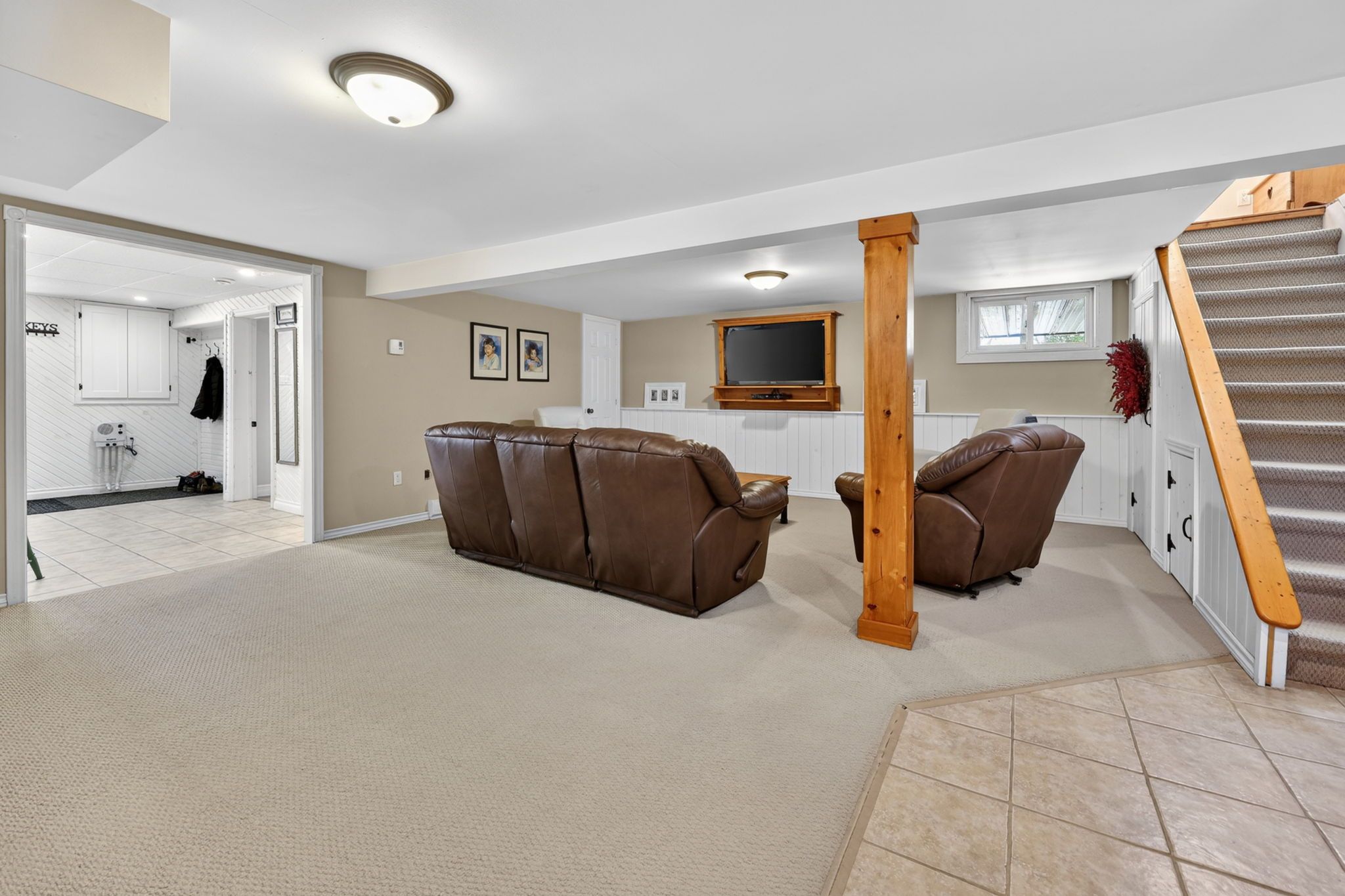 Detached shop... This charming updated home and immaculate 28' x 30' detached shop is located in desirable family friendly waterfront community. The main floor of the home boasts 2 bedrooms, newly updated 4 piece bath with in floor heating (keith lortie kitchens), updated kitchen (keith lortie kitchens) featuring island peninsula, pot lighting, all newer stainless steel appliances, an abundance of natural light and walk out to private deck, hot tub and partially fenced yard. In addition, is a cozy living room with walk out to front deck with new railing and stairs. The lower level is ground level walk out and features a 3rd bedroom, 2nd bath, spacious family room with wood burning fireplace and mud room/laundry entrance all allowing for in law potential. The amazing bonus is the immaculate detached shop with concrete flooring, radiant heat, water, a/c, independent electrical panel, and 10' wide x 9. 8 ft high garage door. Extra features include: kinetico water system, new privacy wood fencing, up to 10 car parking, and all within minutes walk to private waterfront parkette. ++++