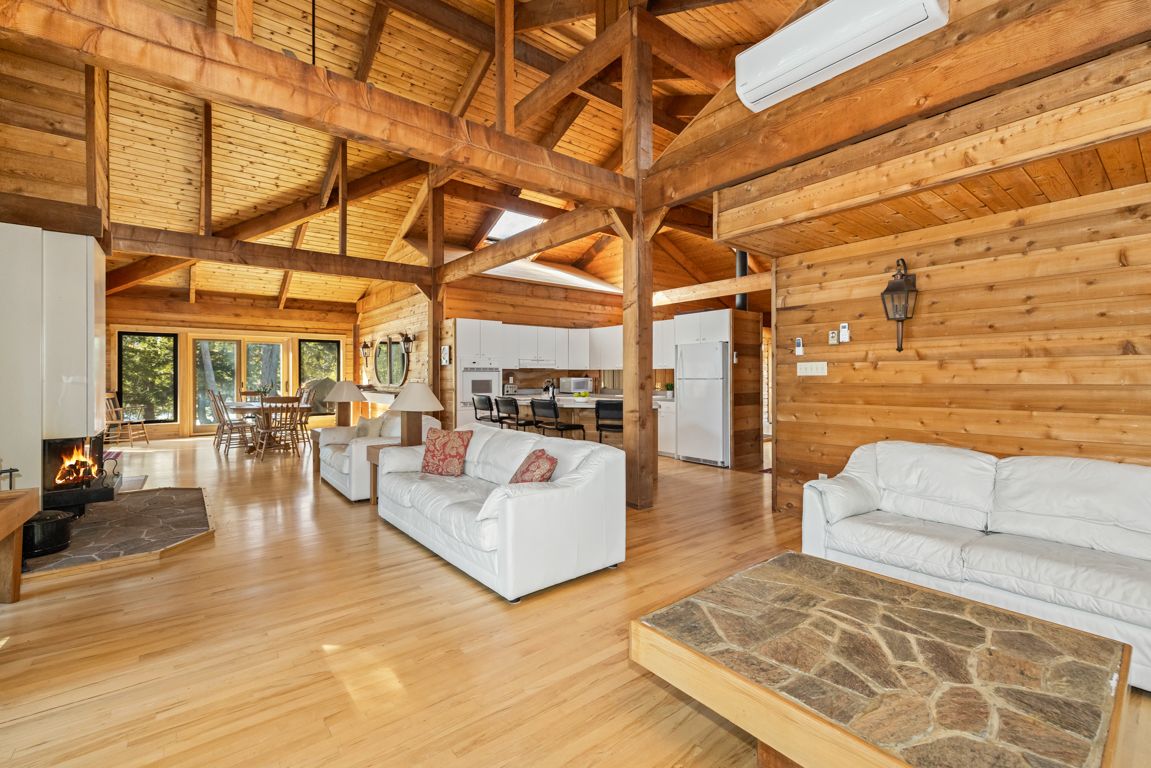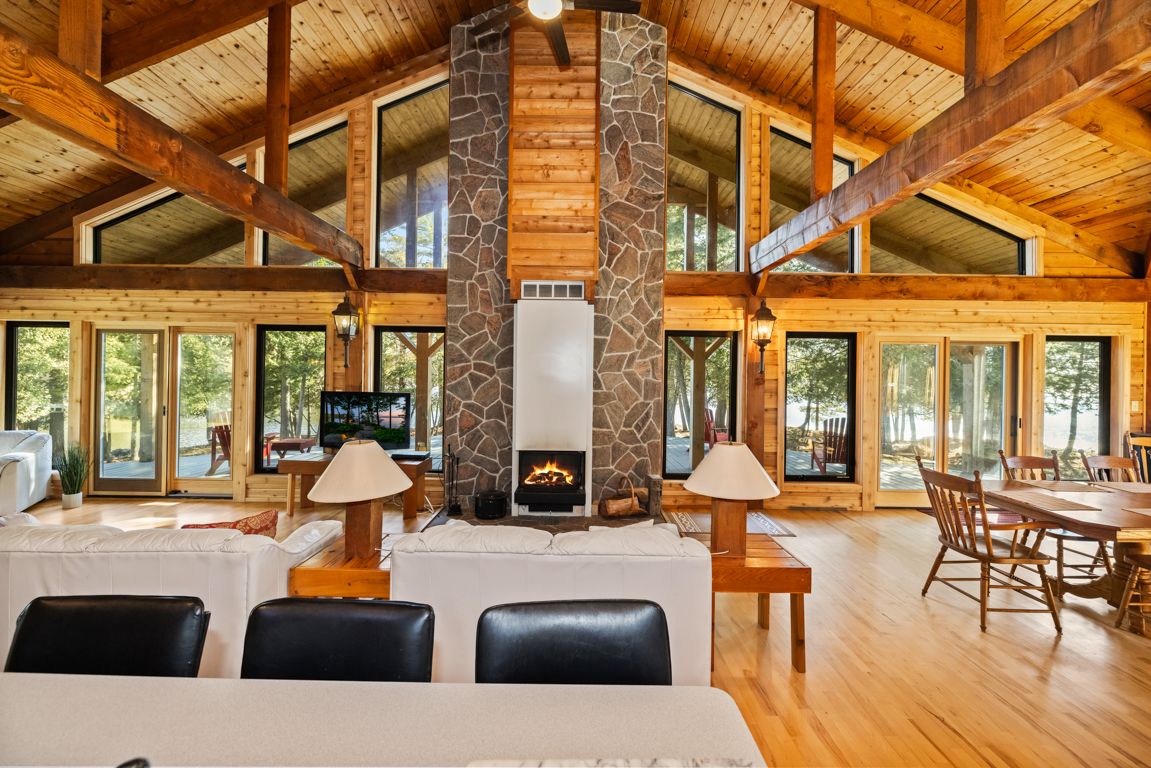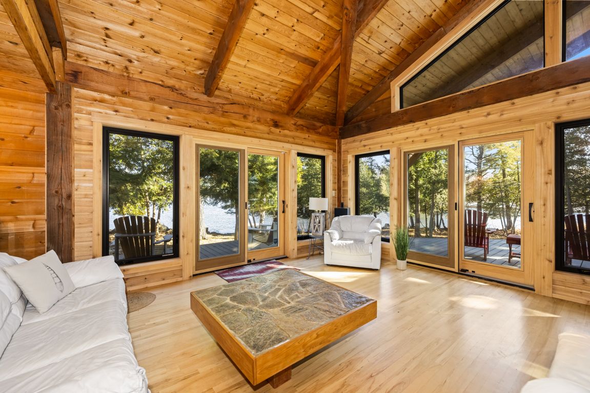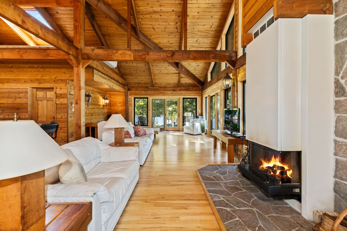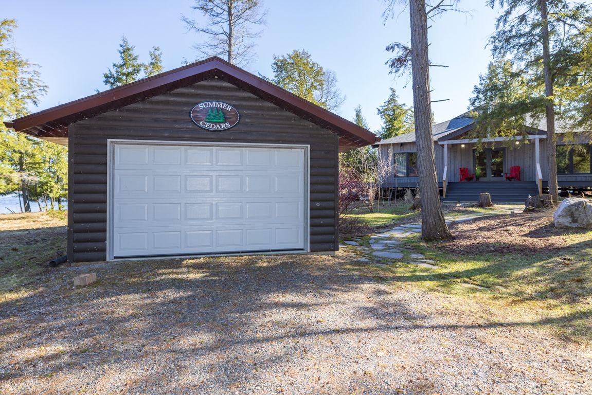 Lake manitouwabing spectacular point of land! Imagine 4. 2 acres of privacy! Panoramic views! Western sunset skies! This one has it all! Turnkey offering! Main cottage boasts douglas fir post & beam construction, warm cedar lined interior, 3 bedrooms, 1. 5 baths, captivating great room spanning 45 ft w vaulted ceilings, wrapped in windows & walkouts to the extensive wrap around composite decking, turnkey offering; includes cottage & bunkie furnishings, new exterior siding & shingles on cottage & garage, new drilled well 2021, potential for year round use (skirt in perimeter & insulate), newer garage 24 x 16 w hydro, experience old world charm at the water's edge in the 3 log cabin bunkies, ideal for extended family & guests, private road kept open 4 seasons for a nominal fee, once in a while a special rare property comes along and this is it! Don't miss this spectacular waterfront land, location & cottage retreat!