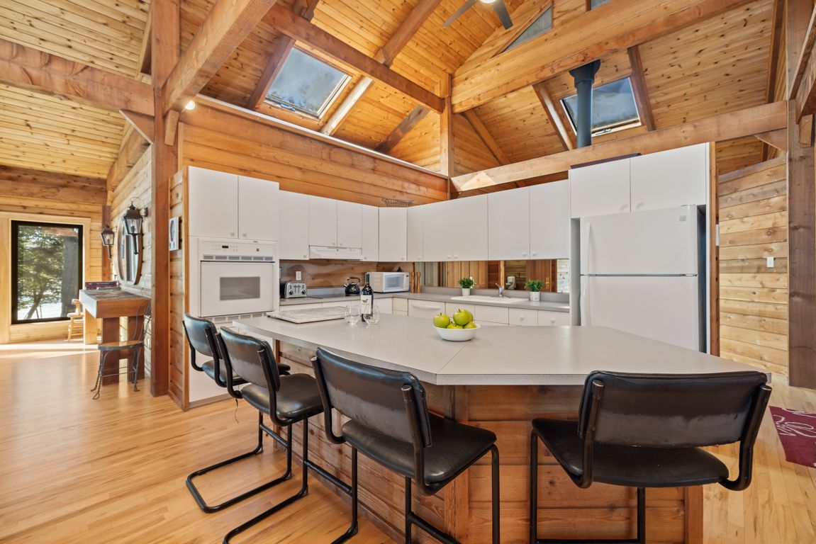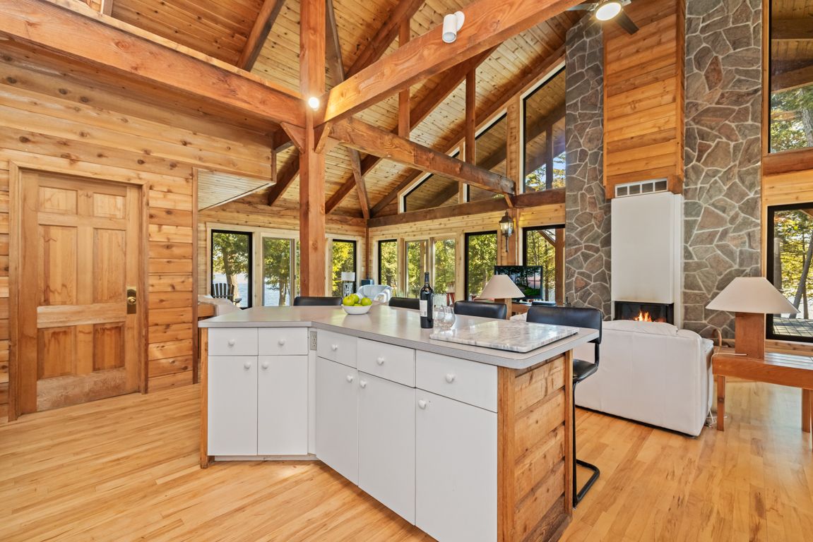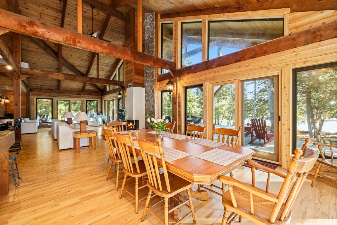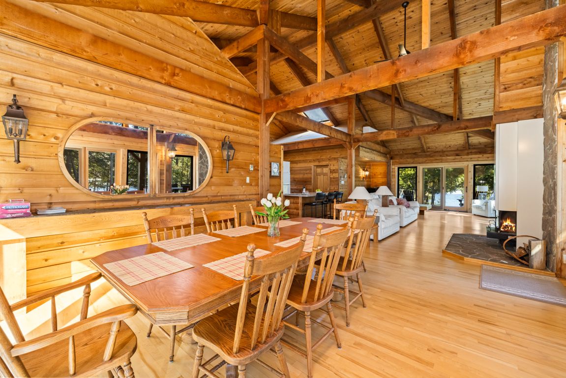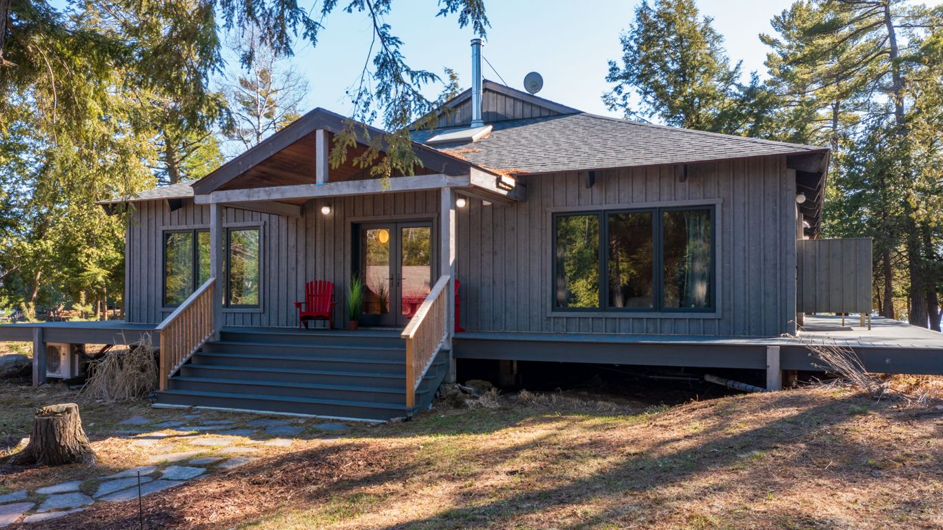 Lake manitouwabing spectacular point of land! Imagine 4. 2 acres of privacy! Panoramic views! Western sunset skies! This one has it all! Turnkey offering! Main cottage boasts douglas fir post & beam construction, warm cedar lined interior, 3 bedrooms, 1. 5 baths, captivating great room spanning 45 ft w vaulted ceilings, wrapped in windows & walkouts to the extensive wrap around composite decking, turnkey offering; includes cottage & bunkie furnishings, new exterior siding & shingles on cottage & garage, new drilled well 2021, potential for year round use (skirt in perimeter & insulate), newer garage 24 x 16 w hydro, experience old world charm at the water's edge in the 3 log cabin bunkies, ideal for extended family & guests, private road kept open 4 seasons for a nominal fee, once in a while a special rare property comes along and this is it! Don't miss this spectacular waterfront land, location & cottage retreat!