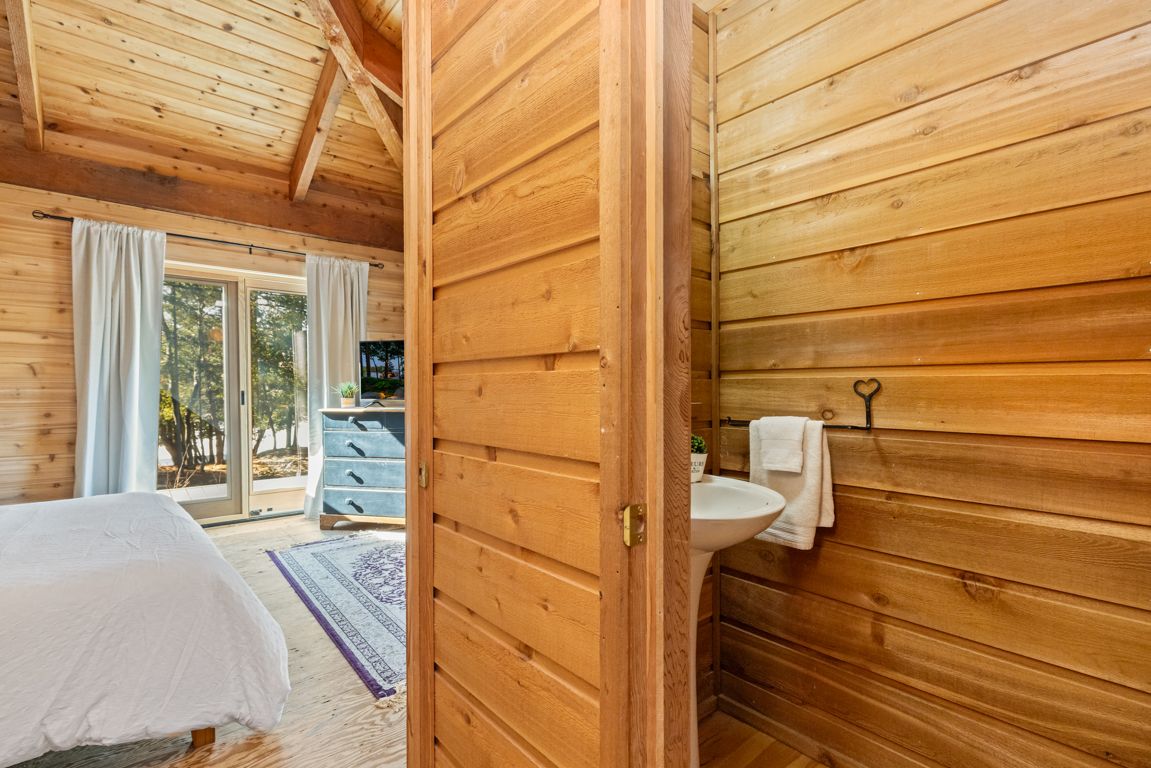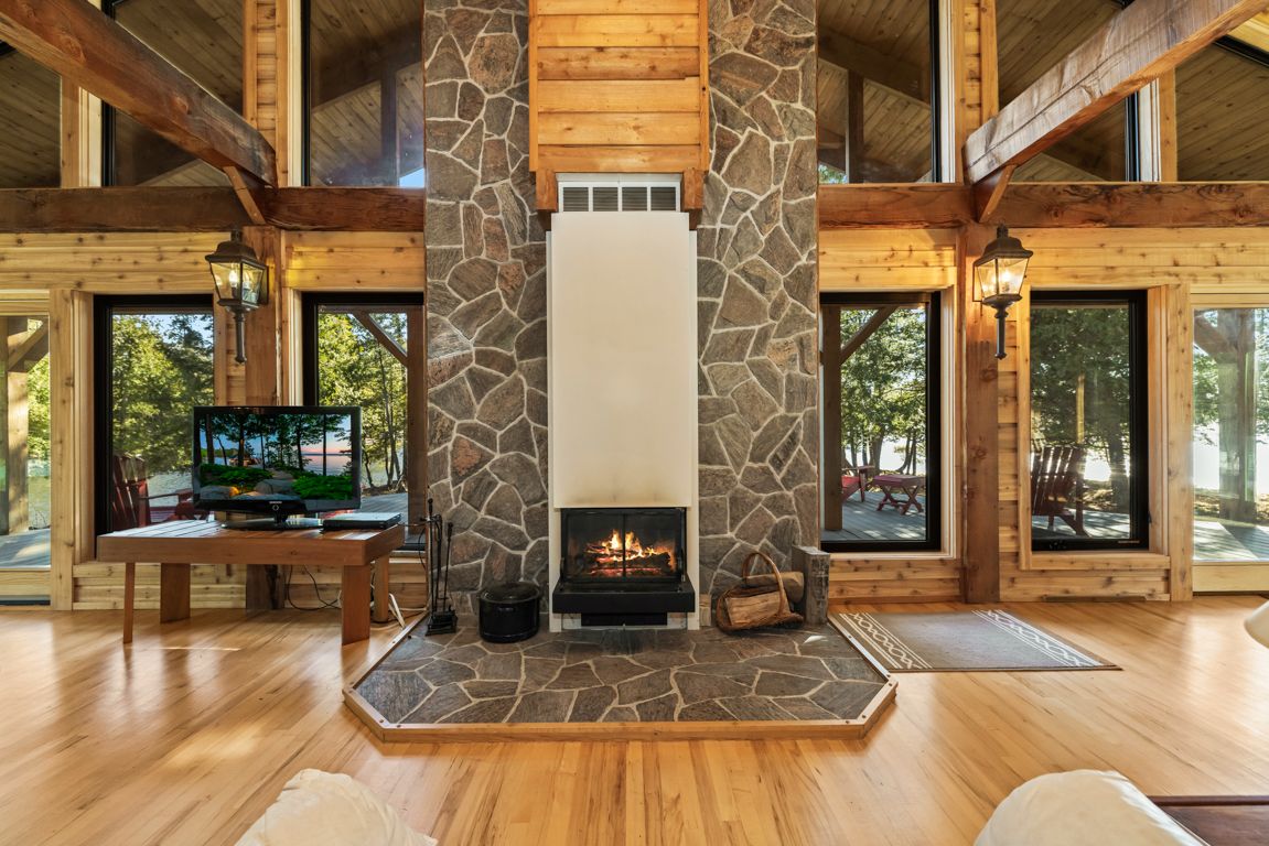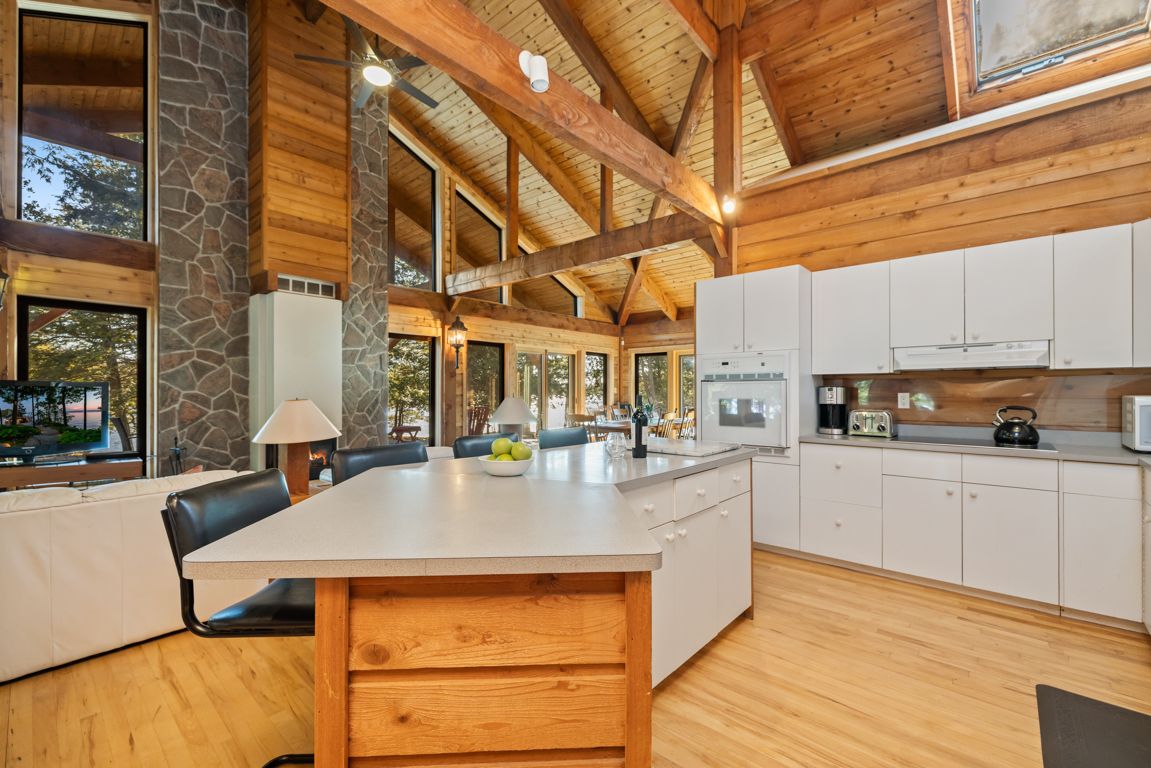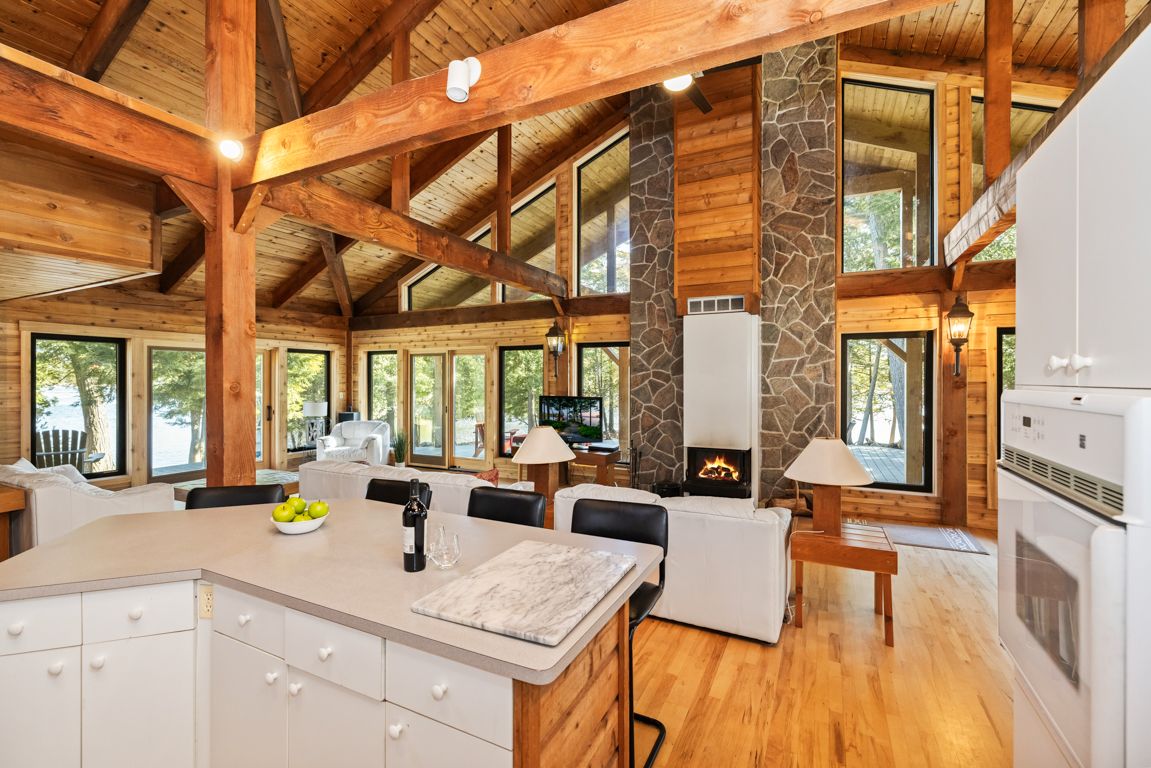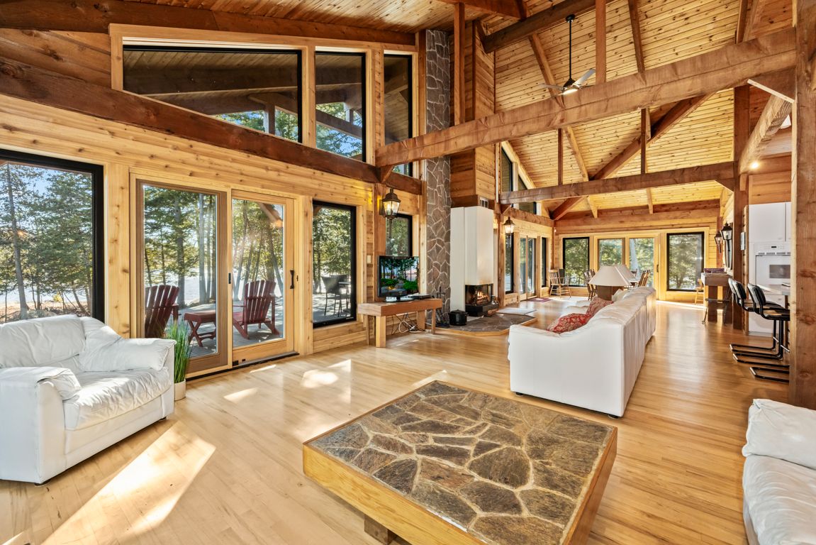 Lake manitouwabing spectacular point of land! Imagine 4. 2 acres of privacy! Panoramic views! Western sunset skies! This one has it all! Turnkey offering! Main cottage boasts douglas fir post & beam construction, warm cedar lined interior, 3 bedrooms, 1. 5 baths, captivating great room spanning 45 ft w vaulted ceilings, wrapped in windows & walkouts to the extensive wrap around composite decking, turnkey offering; includes cottage & bunkie furnishings, new exterior siding & shingles on cottage & garage, new drilled well 2021, potential for year round use (skirt in perimeter & insulate), newer garage 24 x 16 w hydro, experience old world charm at the water's edge in the 3 log cabin bunkies, ideal for extended family & guests, private road kept open 4 seasons for a nominal fee, once in a while a special rare property comes along and this is it! Don't miss this spectacular waterfront land, location & cottage retreat!