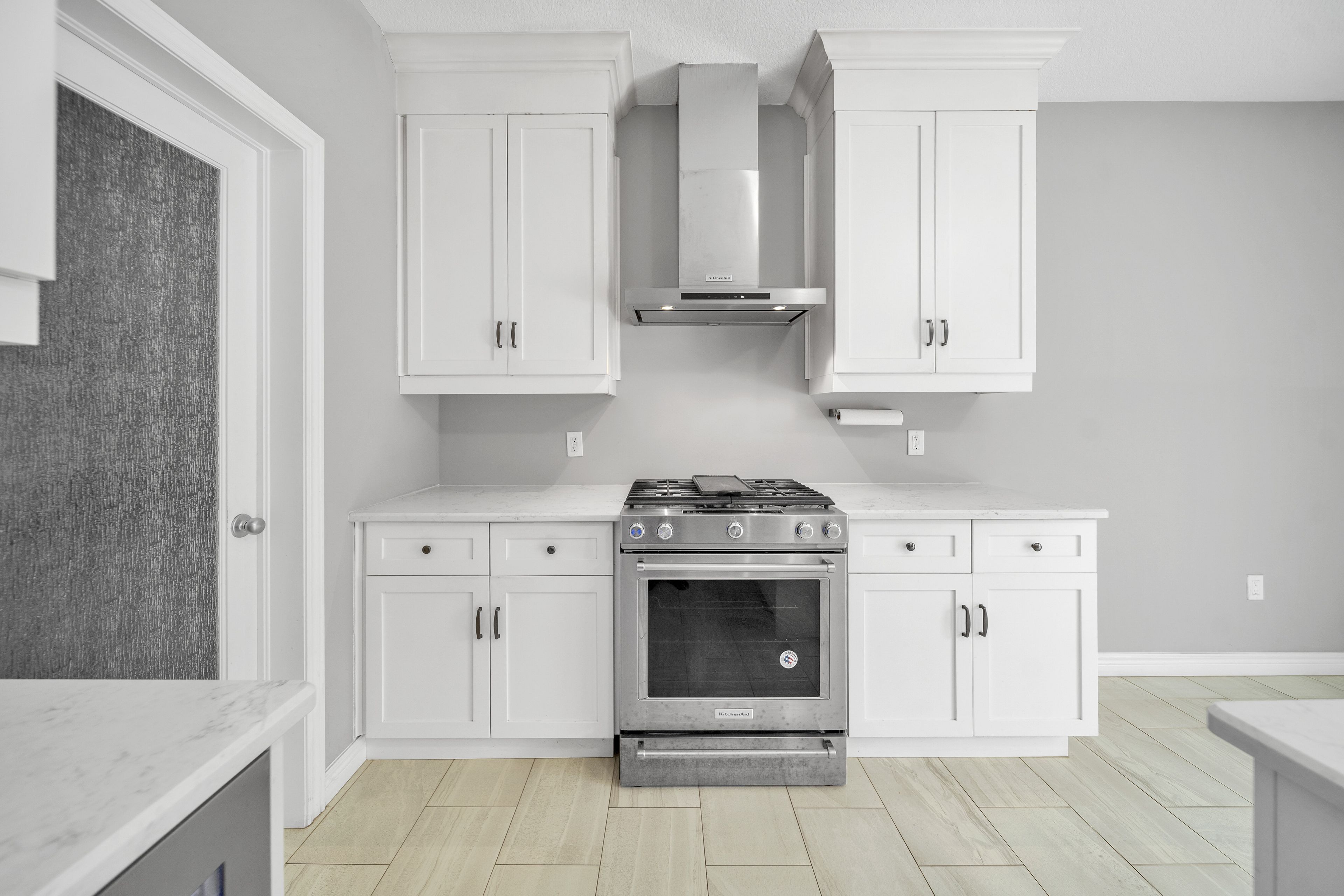 • Chef's kitchen features a walk-in pantry and quartz island.