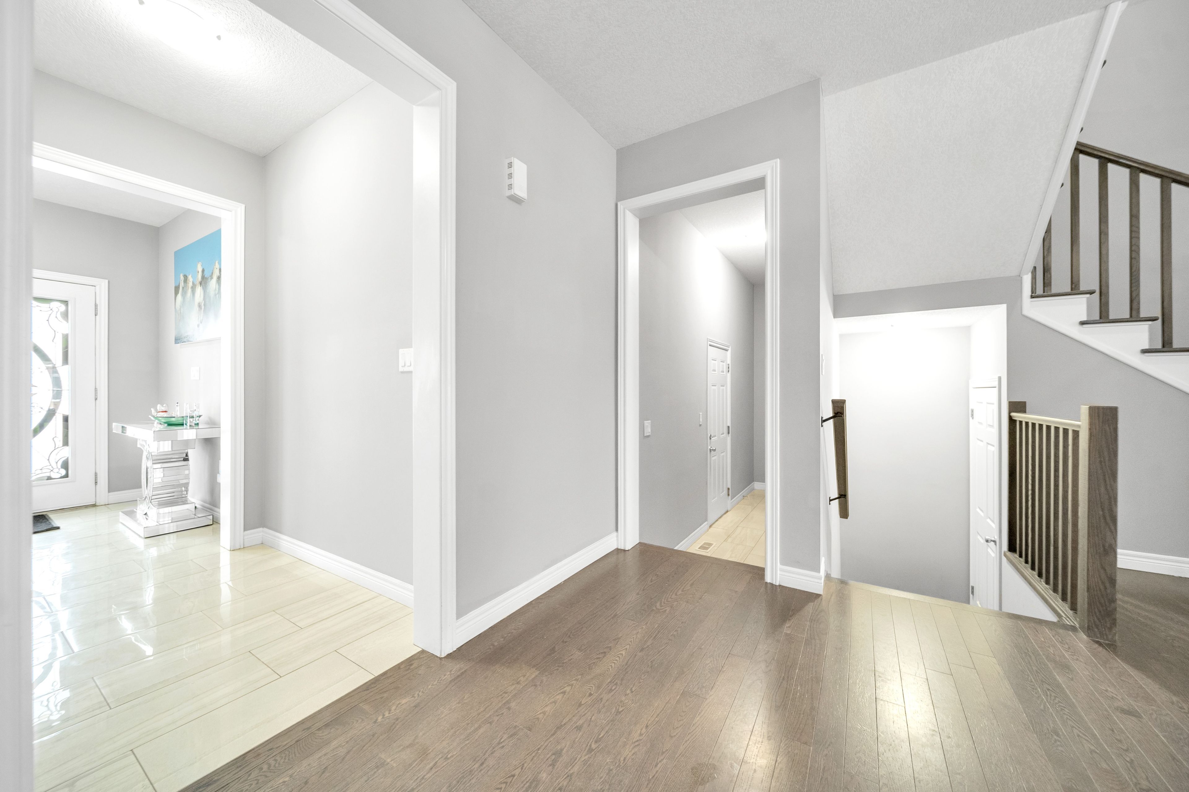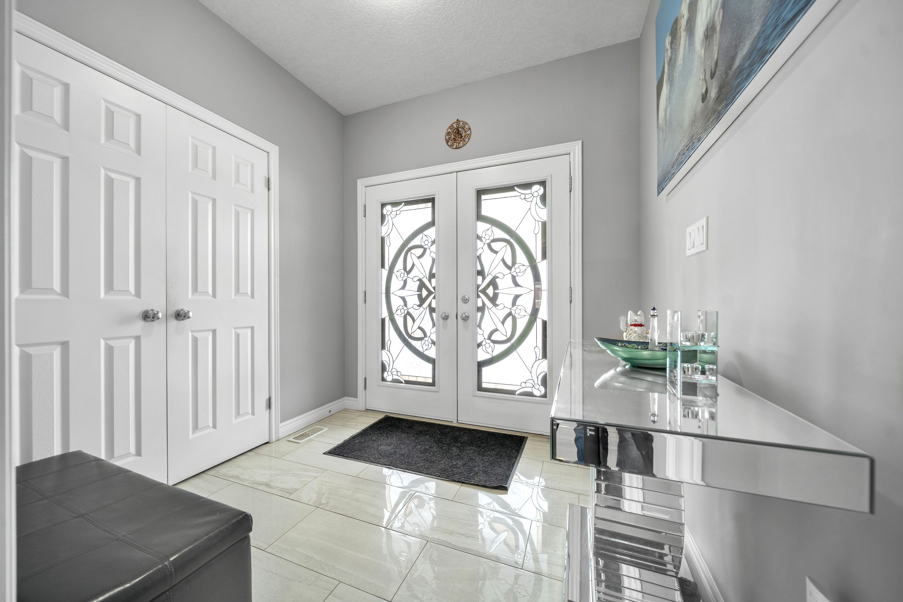 • Elegant foyer with porcelain and hardwood floors throughout.