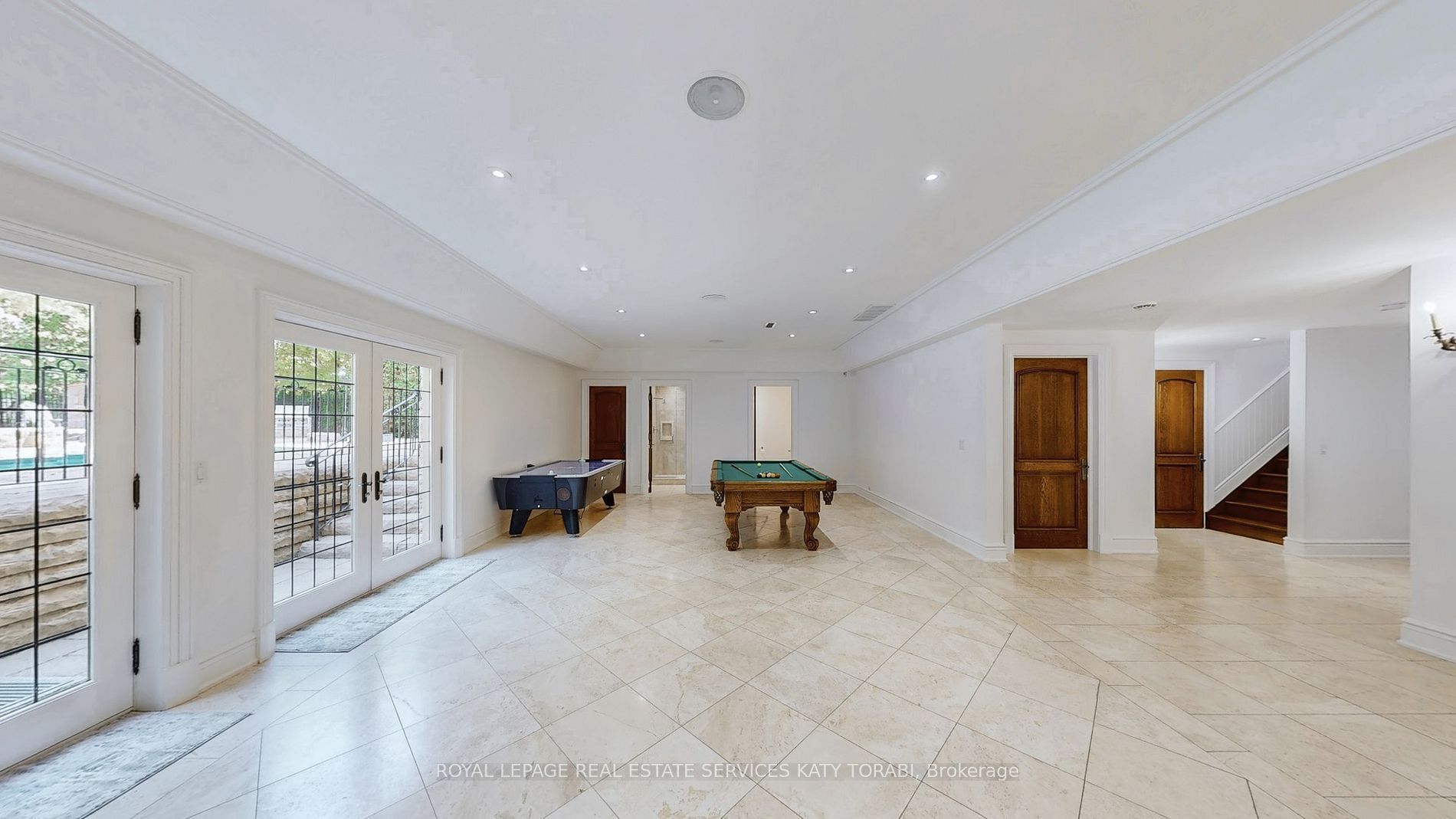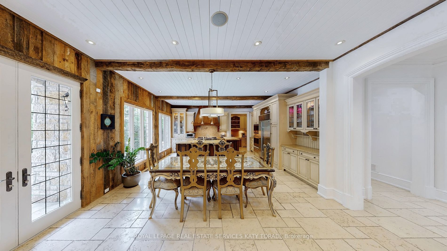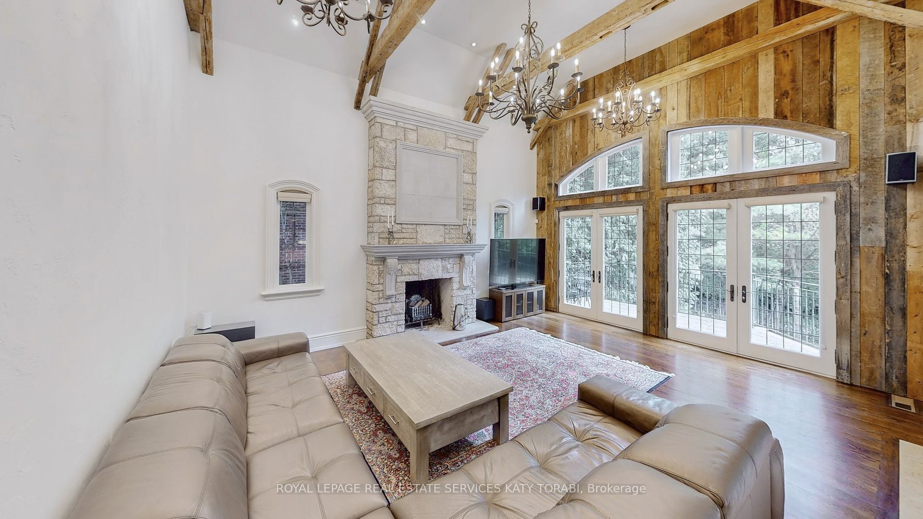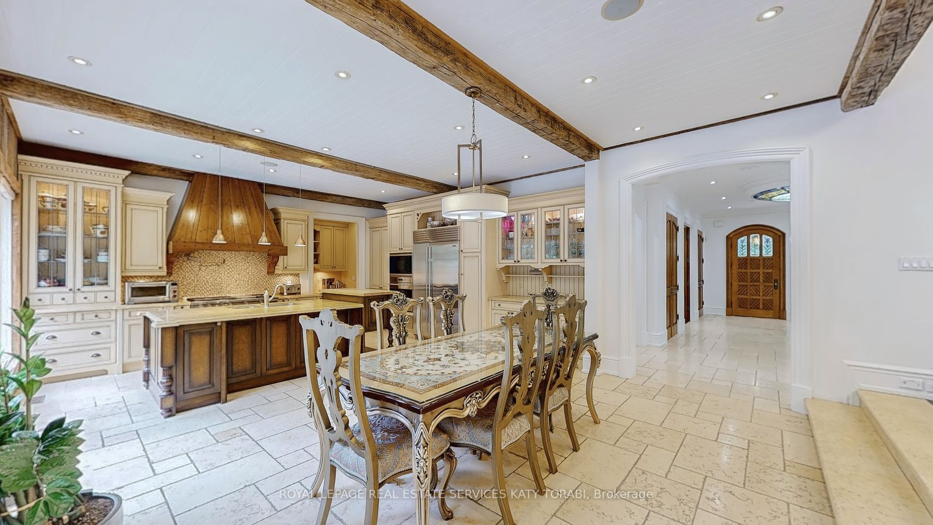 Welcome to 14 saint margarets drive, a european-inspired limestone and tyndall stone masterpiece nestled on one of the most picturesque and prestigious streets in hoggs hollow. This estate showcases a rare tyndall stone exterior prized for its distinctive rich patterns combining architectural prestige with natural elegance. Its unique textures lend an air of exclusivity and sophistication rarely found in a private residence, complemented by a cedar shake roof. Majestically sited on a premium 90 by 150 ft lot backing onto the river, this residence offers over 9,000 sq. Ft. Of luxurious living space where timeless craftsmanship meets modern comfort. A grand foyer with stained glass and domed ceiling introduces interiors of remarkable scale and craftsmanship. The vaulted great room, with vintage beams, soaring windows, and a stone fireplace, serves as a dramatic centerpiece. A formal dining room with serving area, a richly panelled office with patio walkout, and a chefs kitchen with walk-in pantry, oversized island, butlers pantry, and adjoining breakfast area complete the main level. From the kitchen, great room, and office, walk out to three patios overlooking the river, manicured grounds, and pool. The upper level hosts six bedrooms, each with its own newly renovated bathroom. The serene primary suite offers a private balcony, fireplace, walk-in closet, and spa-inspired ensuite with soaker tub, double vanities, and oversized shower. Most rooms capture sweeping river views, while a bright study nook enhances family comfort. The fully finished lower level extends the living space with a recreation lounge featuring fireplace and bar, glass-walled gym, custom wine cellar, nanny suite, walk-in cedar room, media room, and a second kitchen ideal for entertaining or extended family living. Outdoors, enjoy a resort-style retreat with heated pool, outdoor fireplace, built-in bbq, and wood-fired pizza oven, all set among stone terraces, mature trees, & professional landscaping.