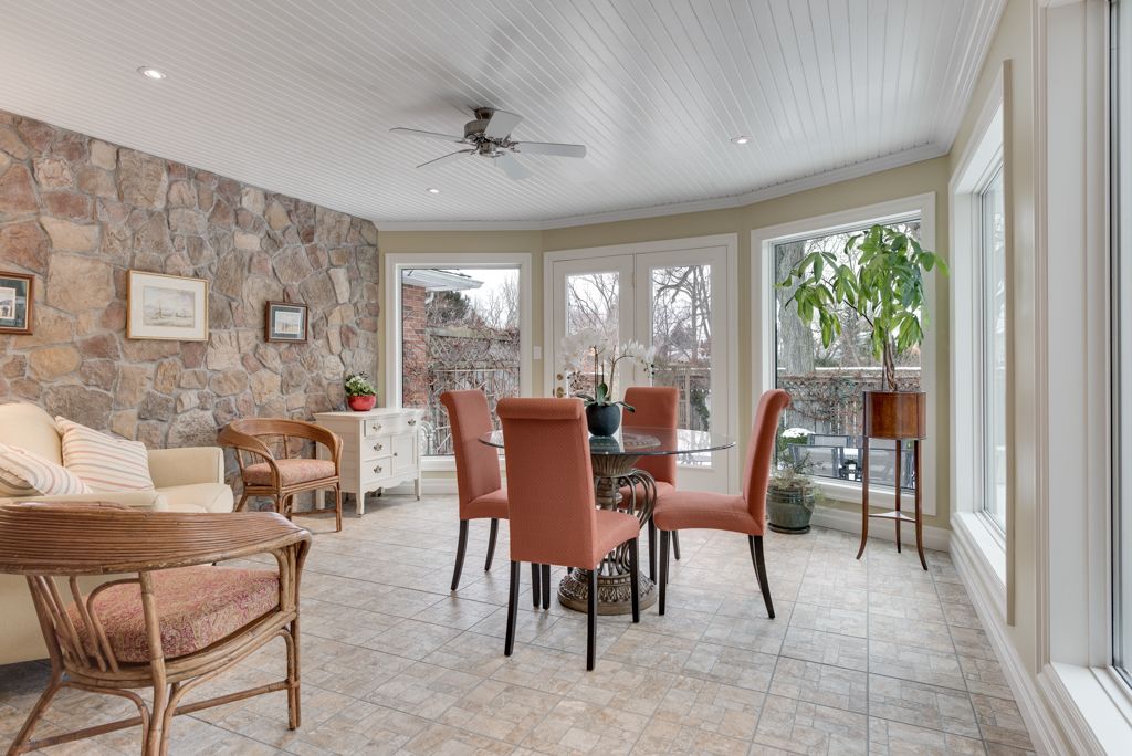 • Bright sunroom opens to a beautifully landscaped private backyard.