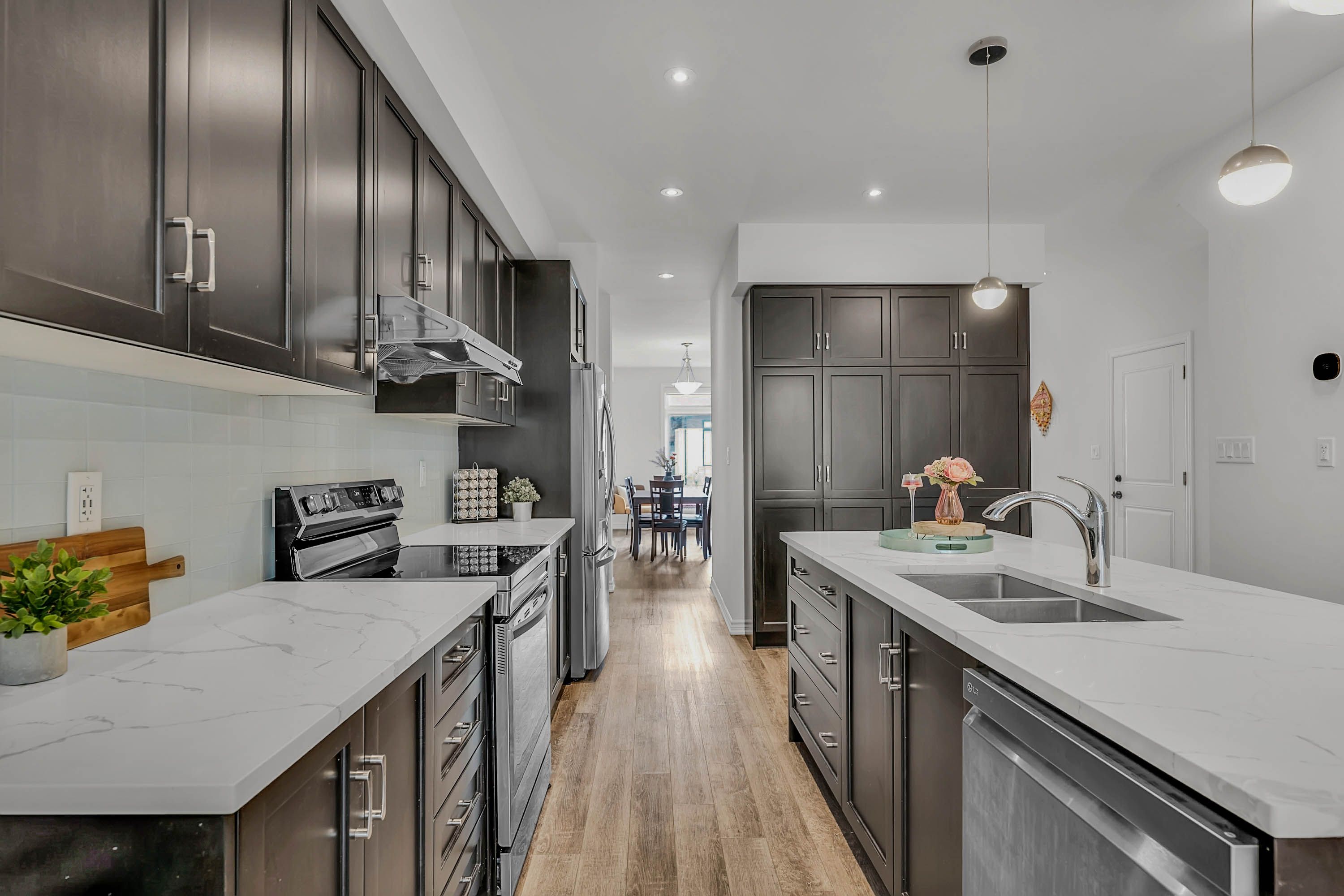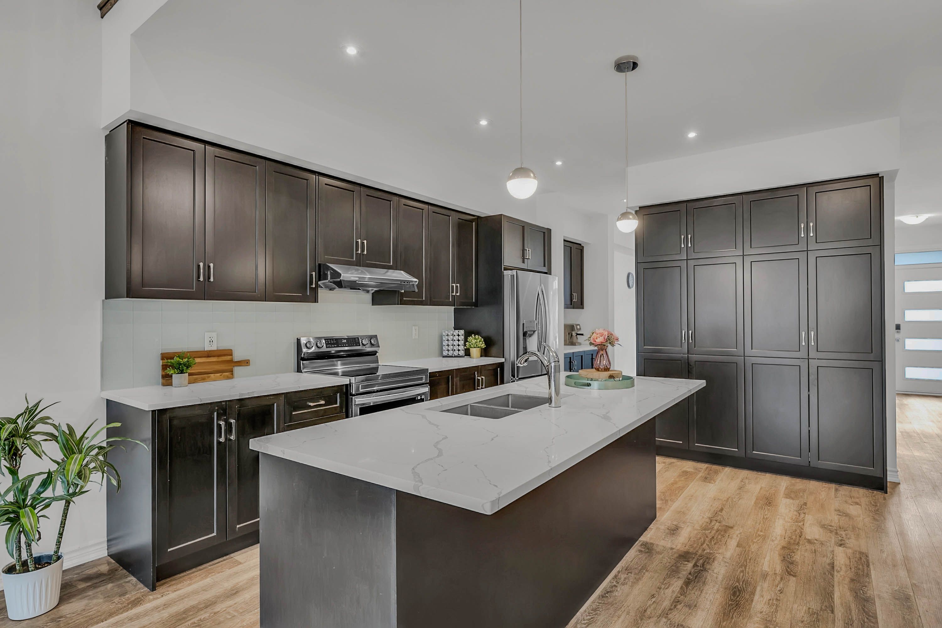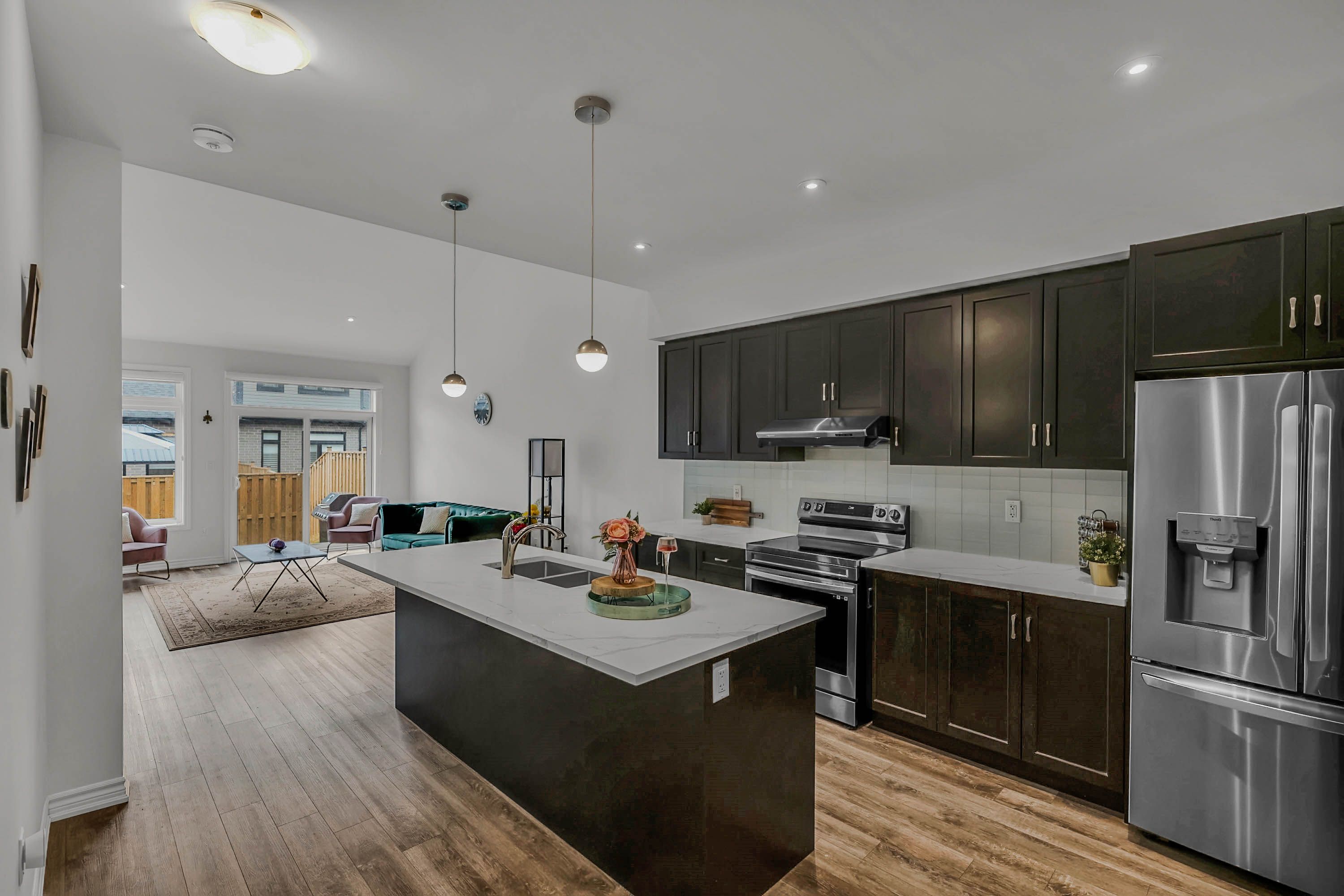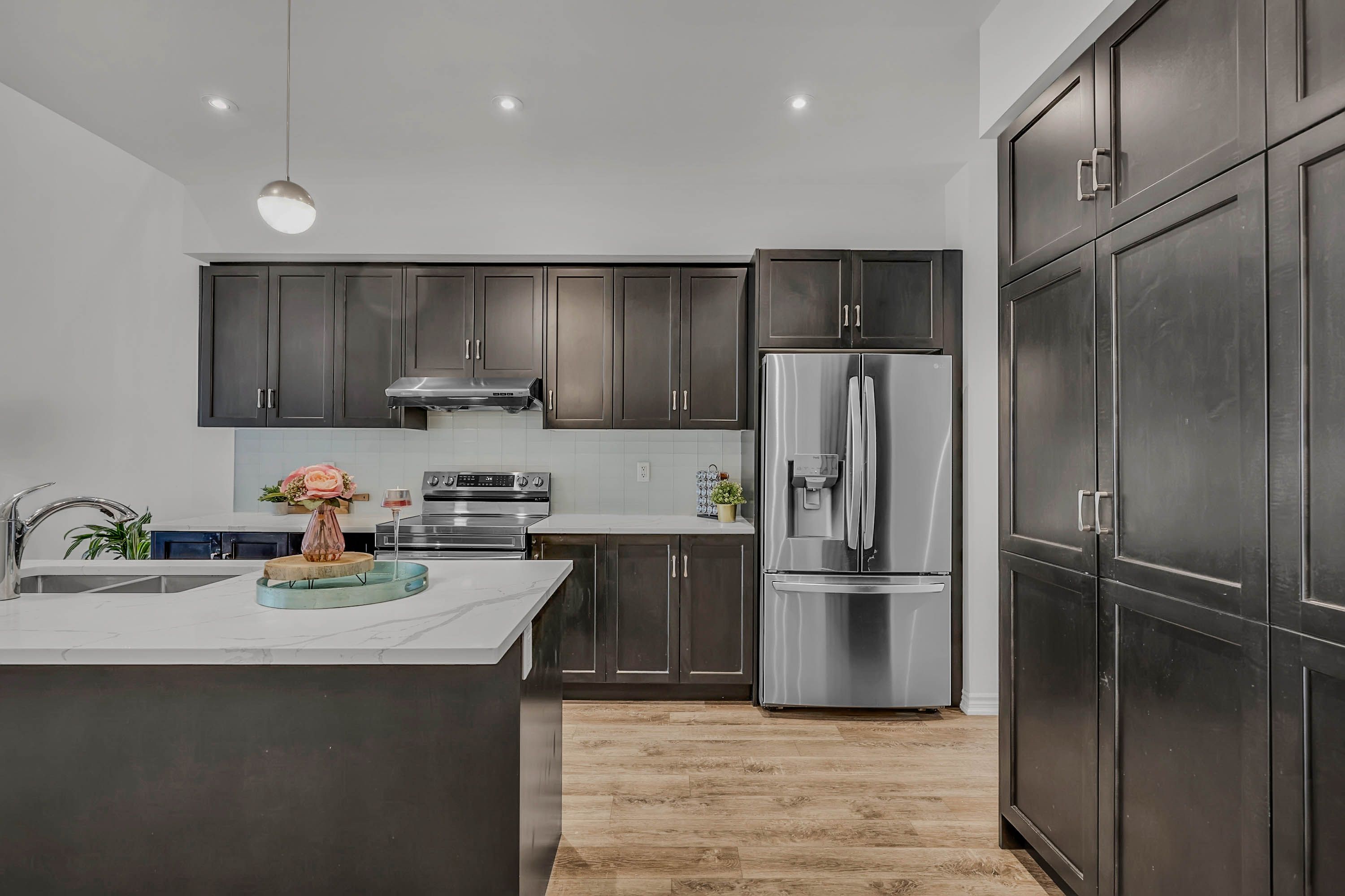• Contemporary kitchen with stainless steel appliances for a modern touch.