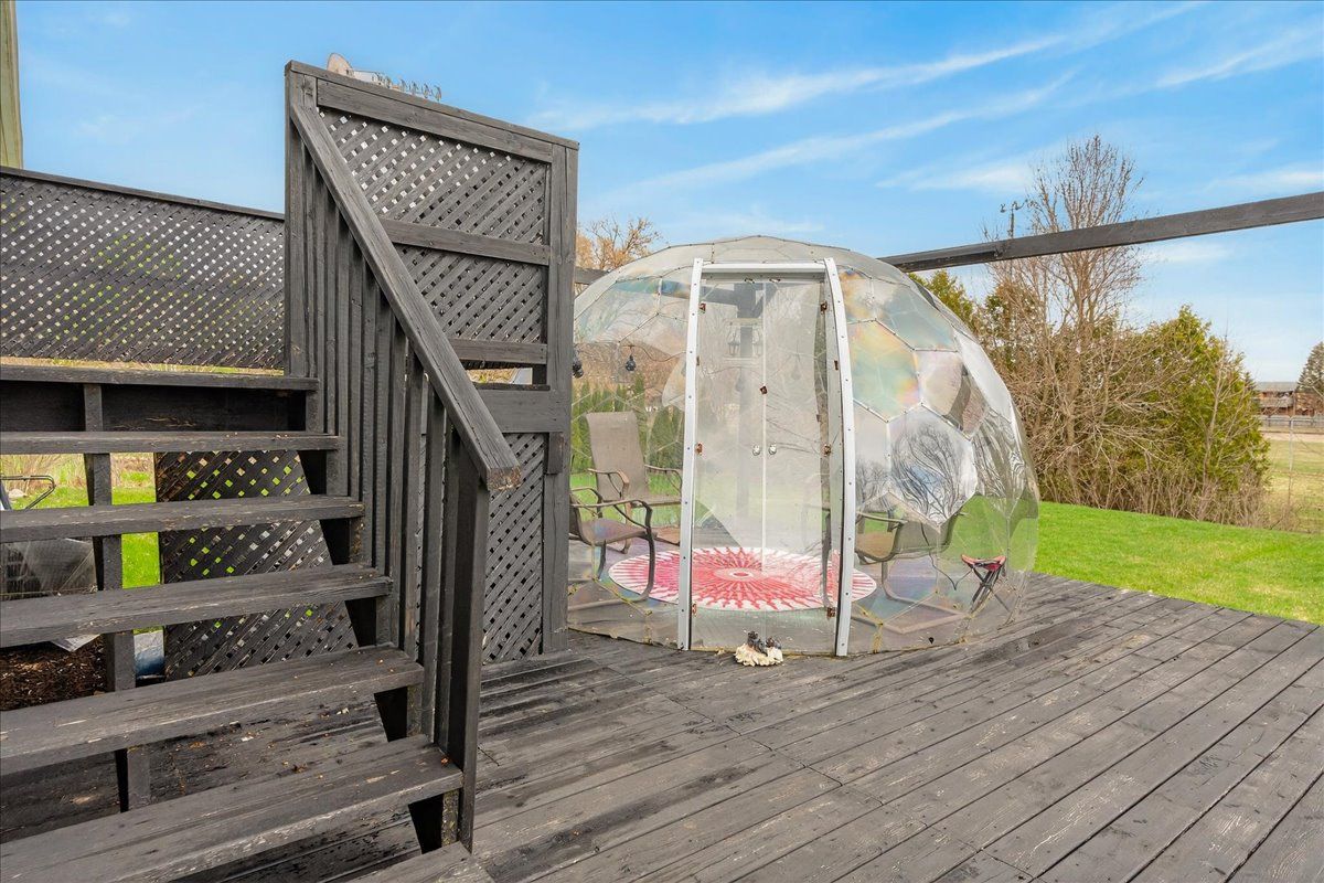 Welcome to this well-maintained 3-bedroom raised ranch situated on just under half an acre on the edge of appin, ontario, backing onto the local park and baseball diamond. Built in 2001, the main floor offers a comfortable living room and a spacious eat-in kitchen with a garden door to the rear deck and direct access to the oversized attached two-car garage. The primary bedroom includes a 4-piece ensuite, with an additional 4-piece bathroom on the main floor serving family and guests. The finished basement provides a large family/flex room, adding valuable living space to suit a variety of needs. Outside, the open yard is framed by mature trees and greenery, offering privacy while maintaining a welcoming feel. A unique dome structure on the property rounds out this one-of-a-kind offering. Located in a quiet community setting with parkland at your backdoor - a fantastic opportunity for families or those looking to enjoy the best of small-town living.