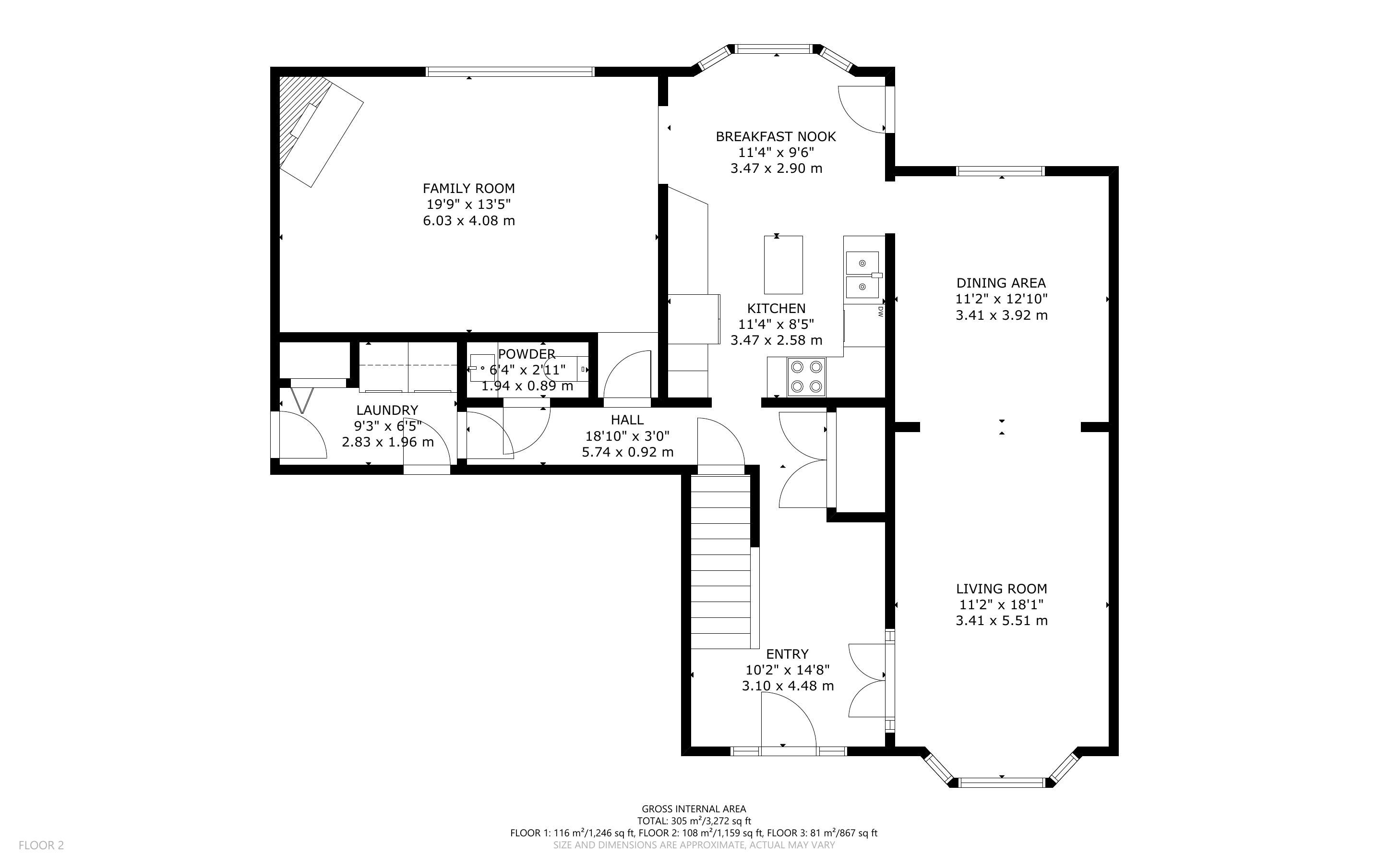 • Spacious main floor with an eat-in kitchen and oversized family room.