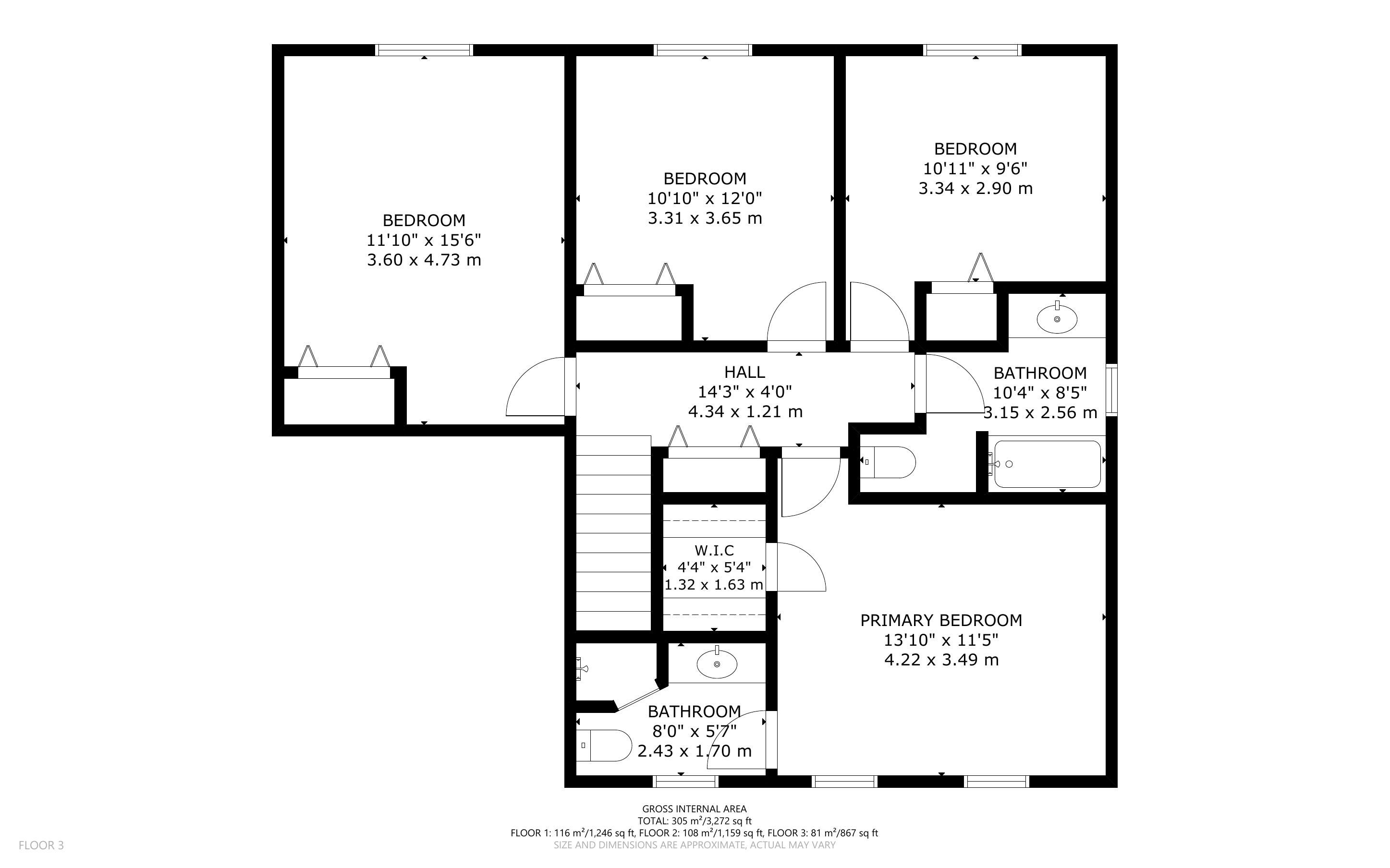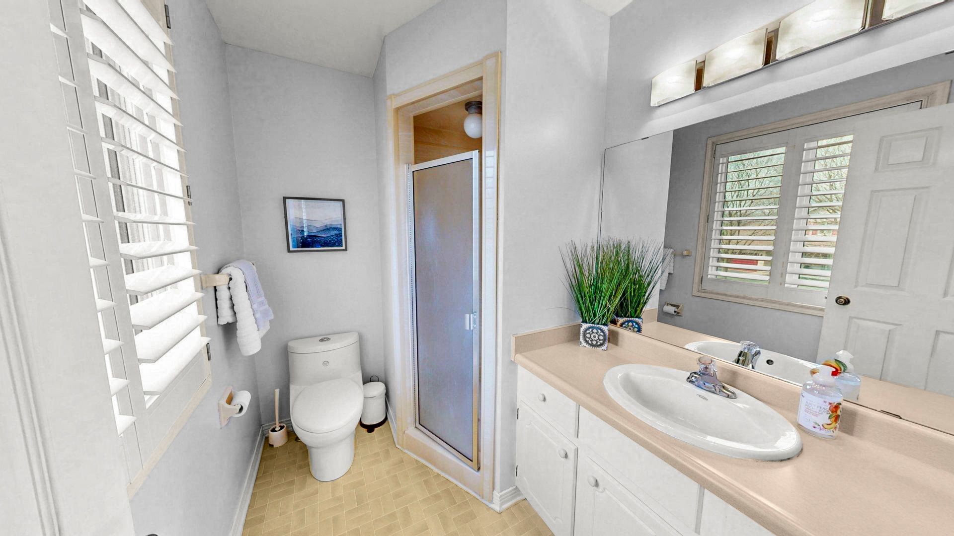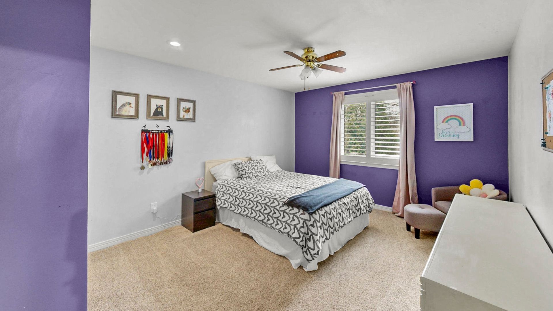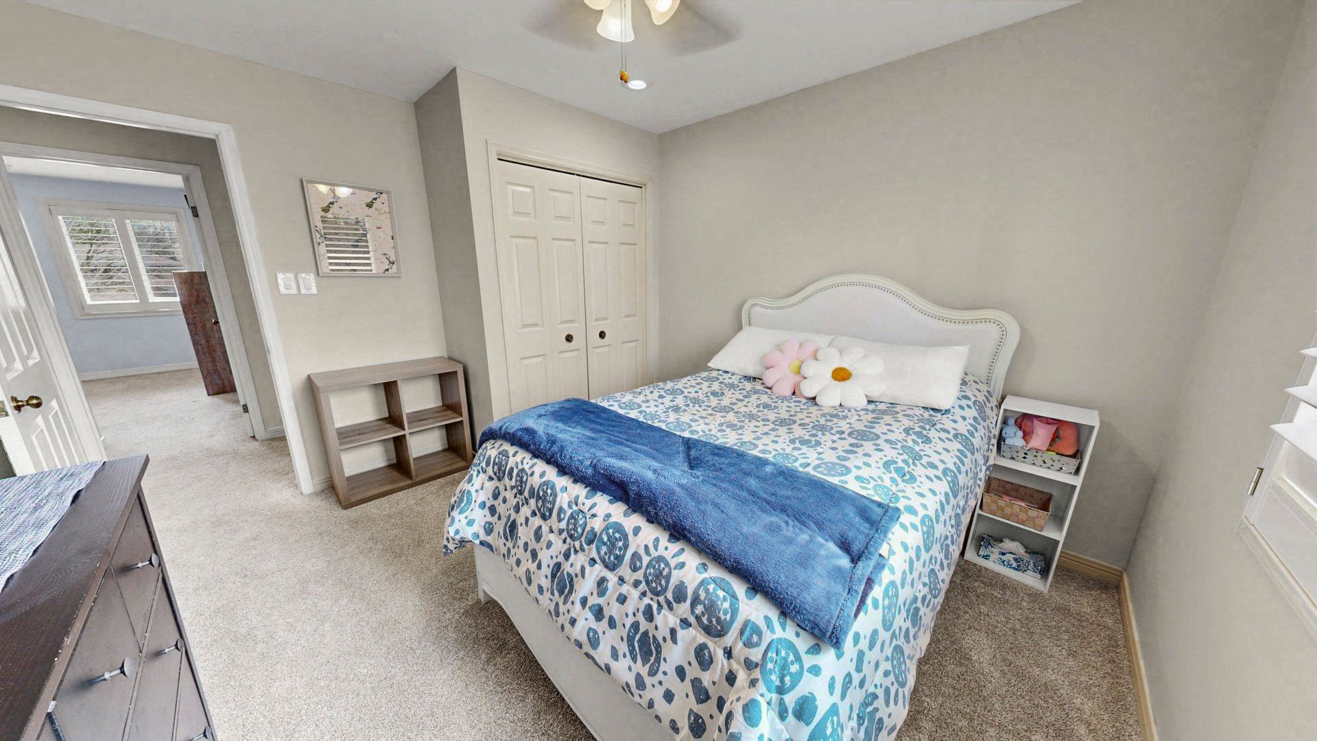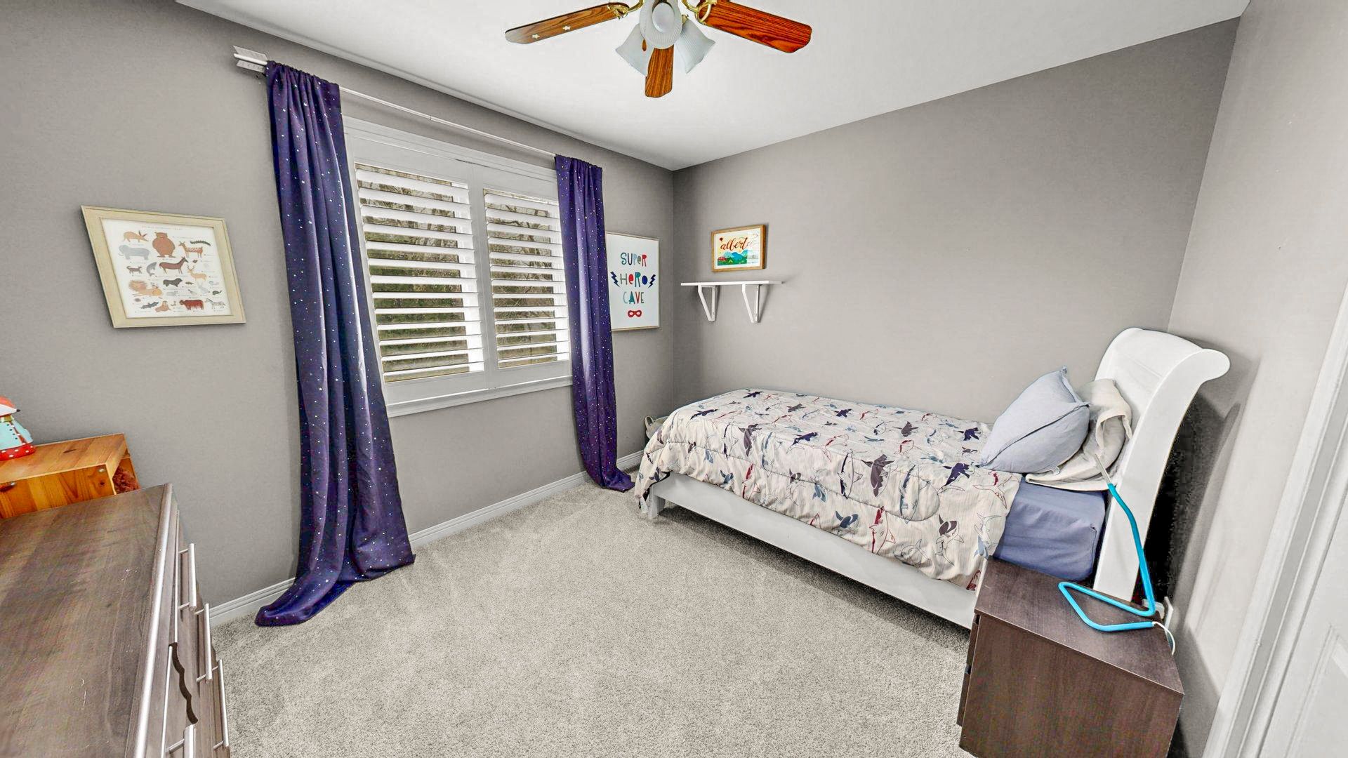 • Four generously sized bedrooms with custom California shutters.