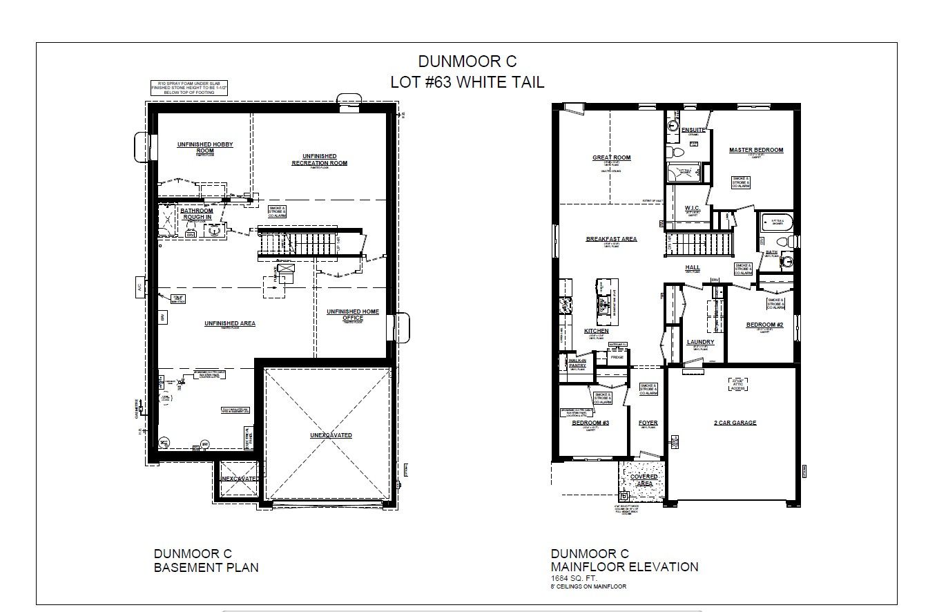 Located in the beautiful eagle ridge subdivision is the dunmoor model, built by doug tarry homes. This energystar and net zero ready bungalow offers a comfortable and spacious living experience with 1,684 square feet of finished space on the main level. Inside, you'll find 3 bedrooms, including a primary bedroom with a walk-in closet and a 3pc ensuite, along with a 4pc bathroom ideal for family living. The living room features vaulted ceilings with convenient access to rear yard. The open-concept kitchen is complete with quartz countertops, large island with breakfast bar, walk-in pantry and dining area. A practical laundry area with tub is conveniently located in the mudroom, making chores a breeze. One of the standout features of this home is the generous unfinished basement, offering plenty of potential for expansion. Come see how this space can work for you! Welcome home!