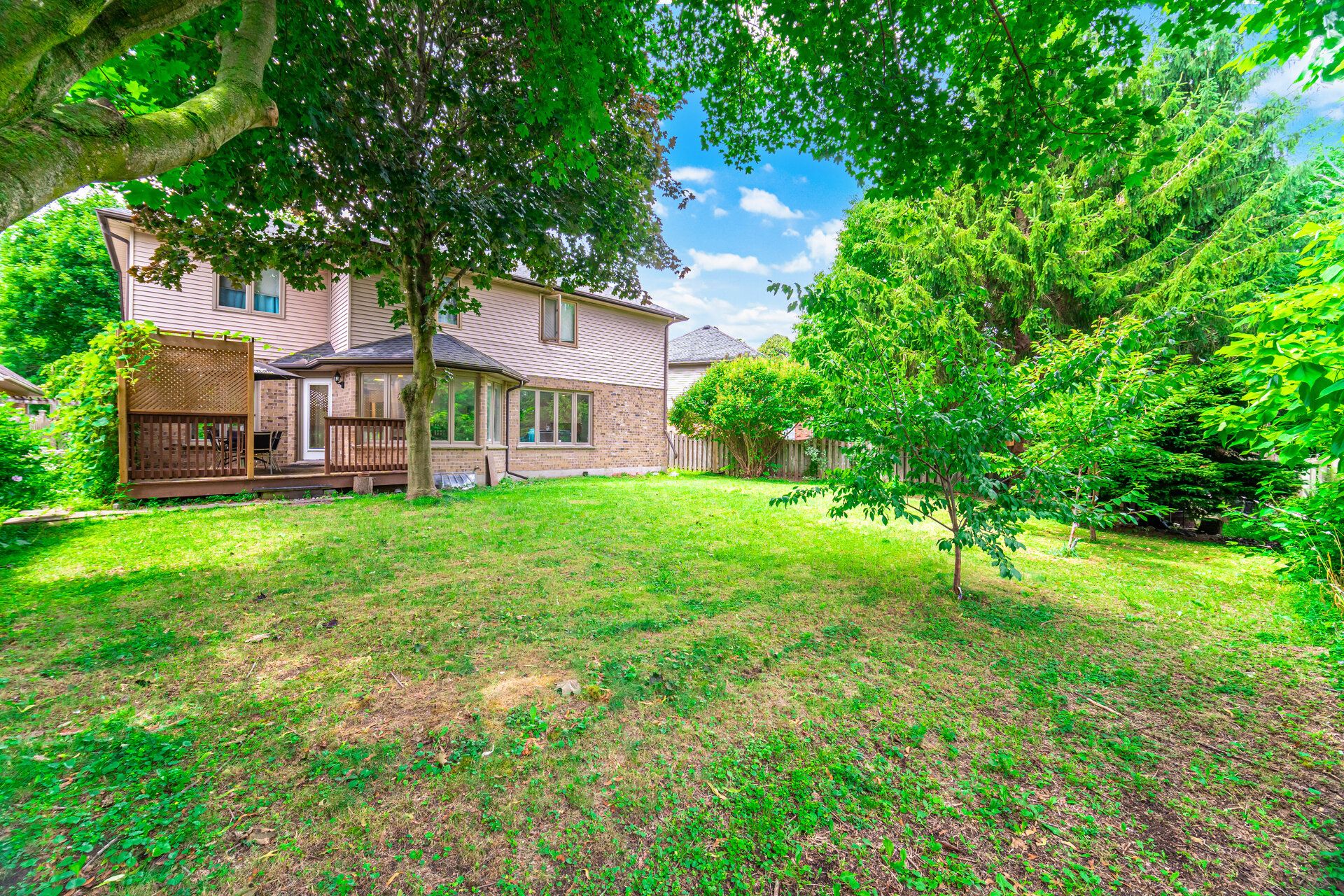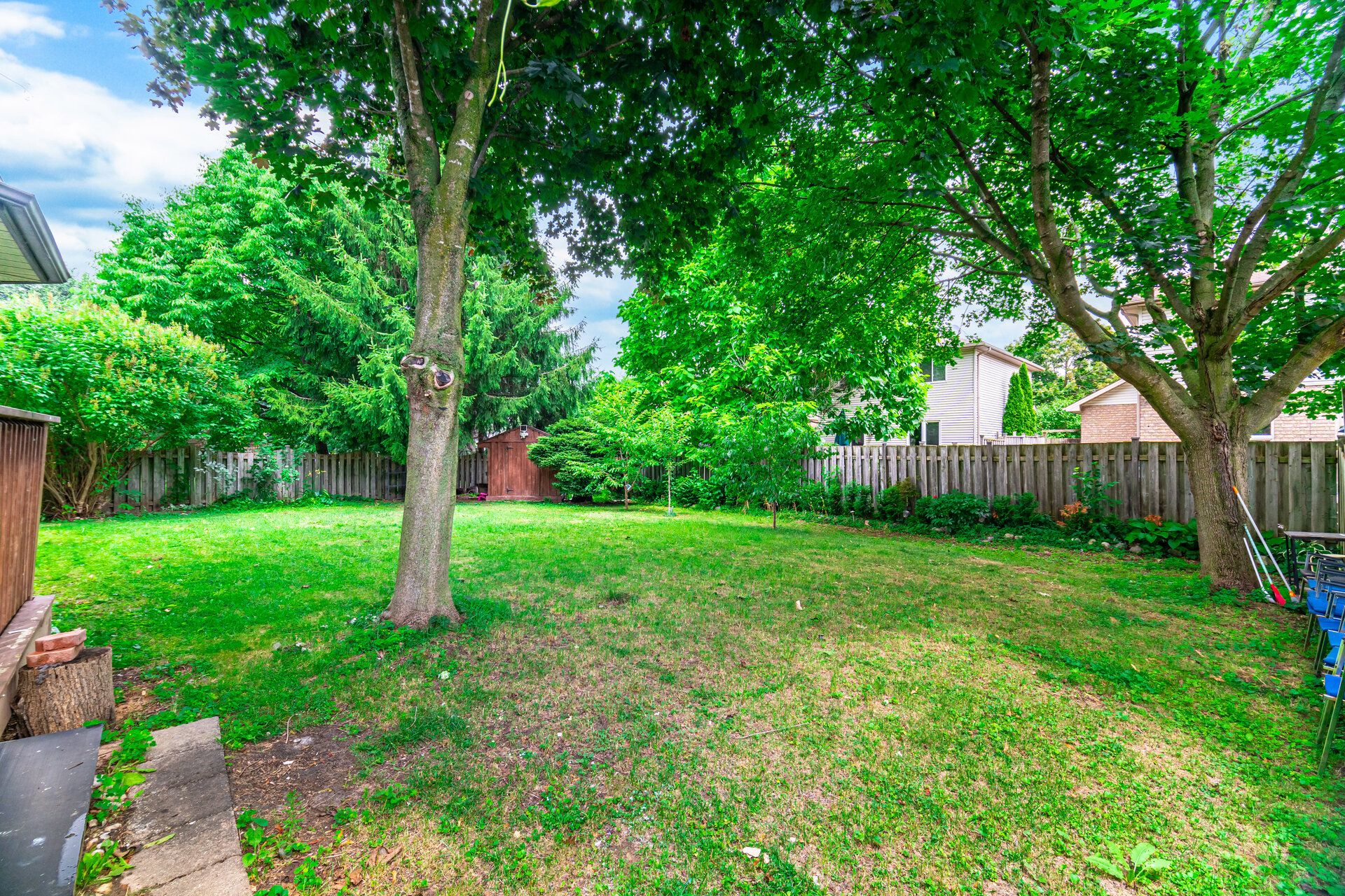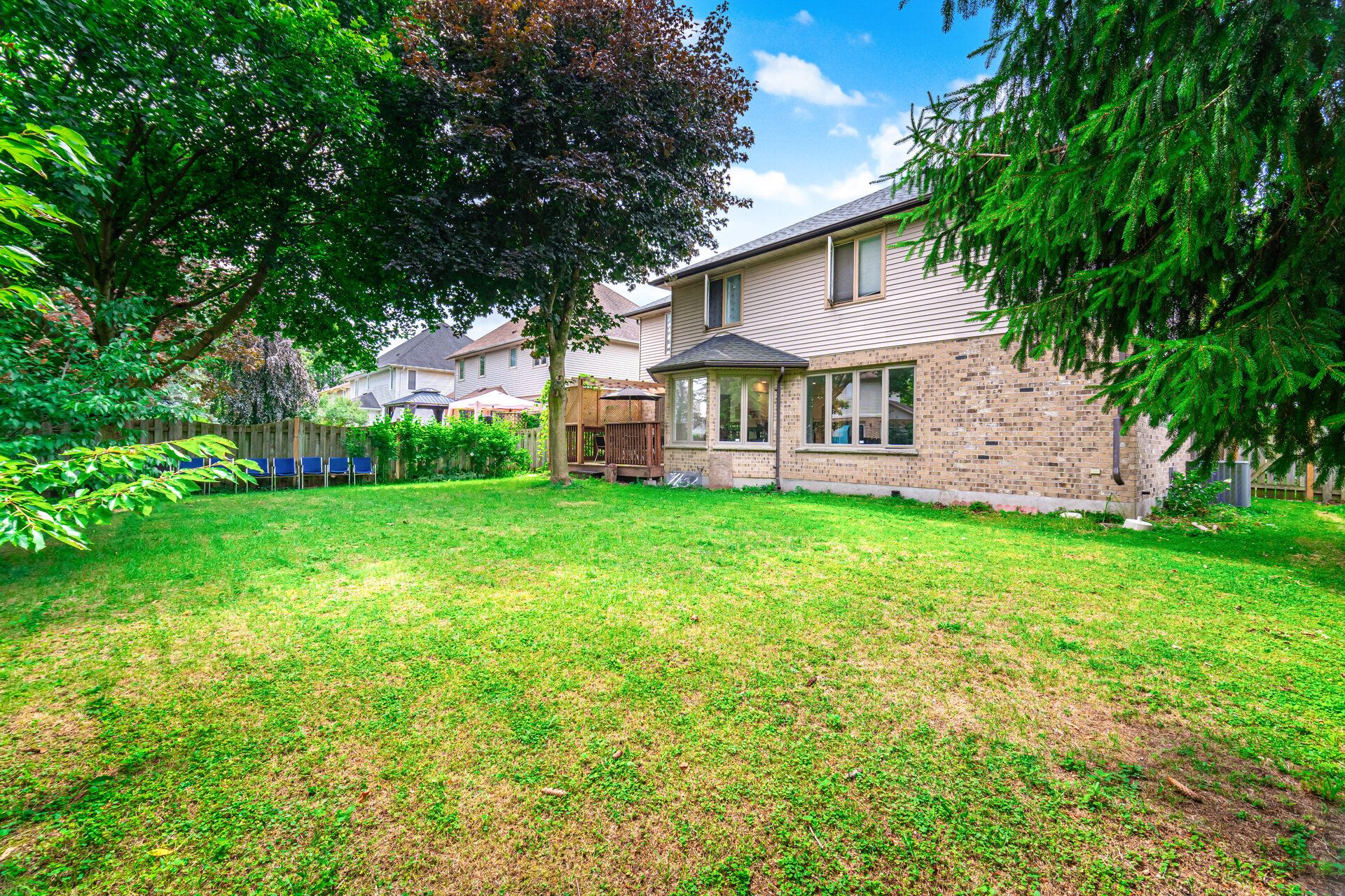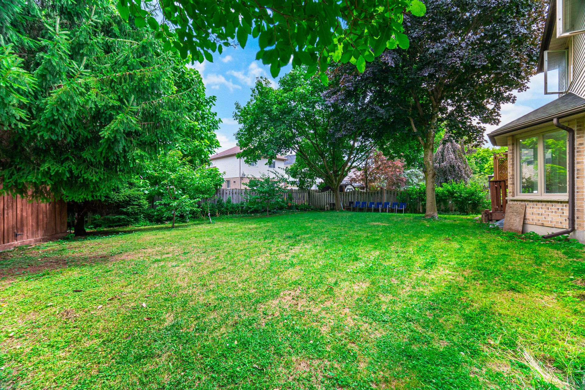• Open-concept layout with a large fenced backyard and breakfast area.