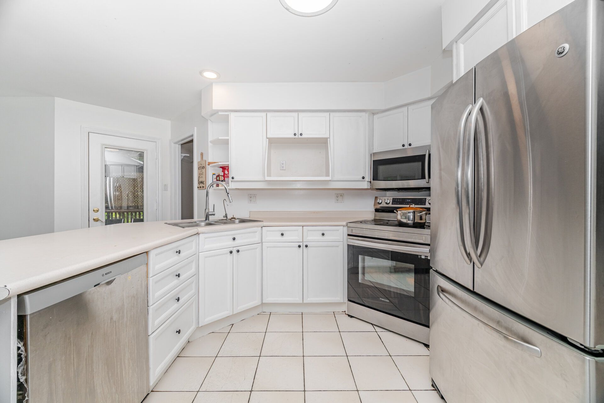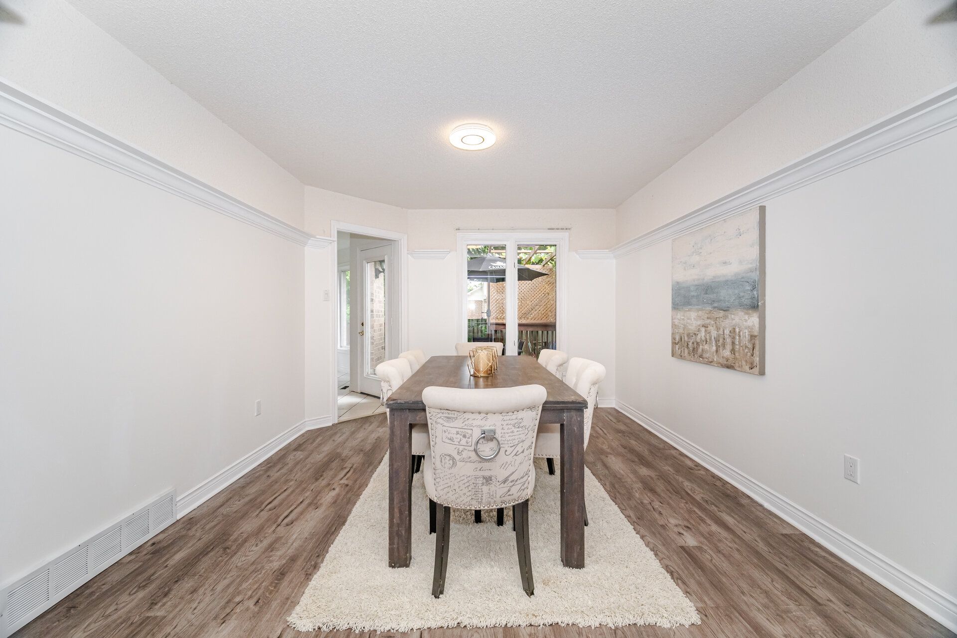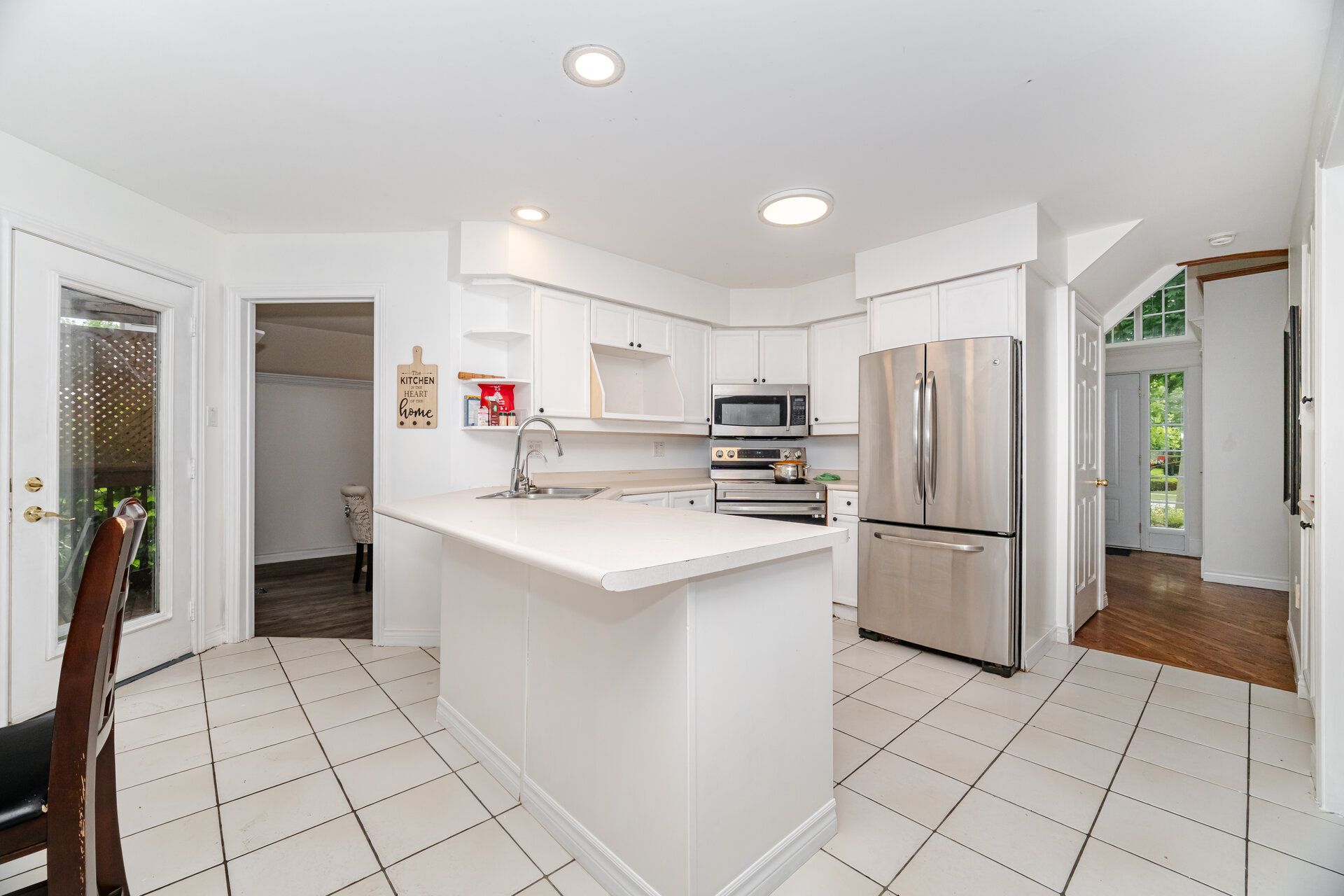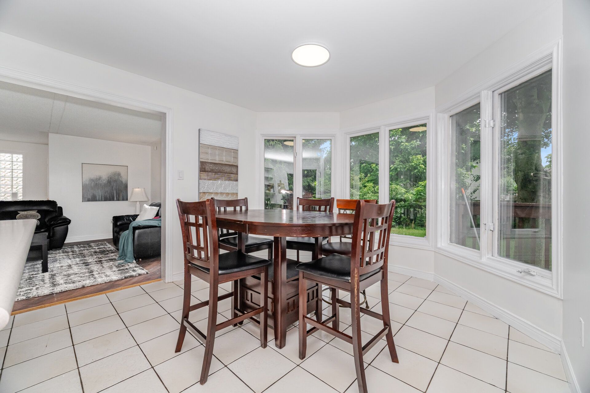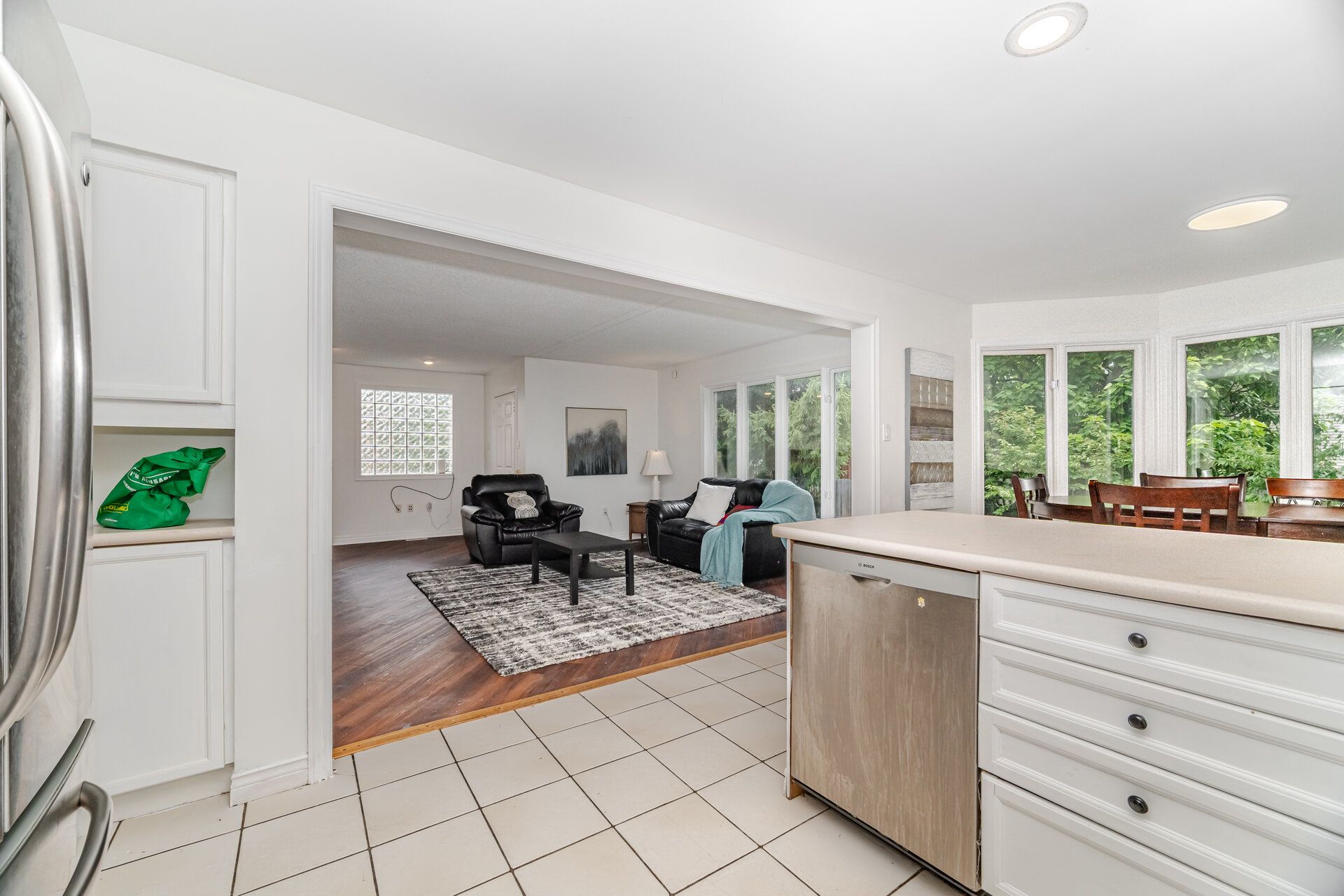 • Open-concept layout with a large fenced backyard and breakfast area.