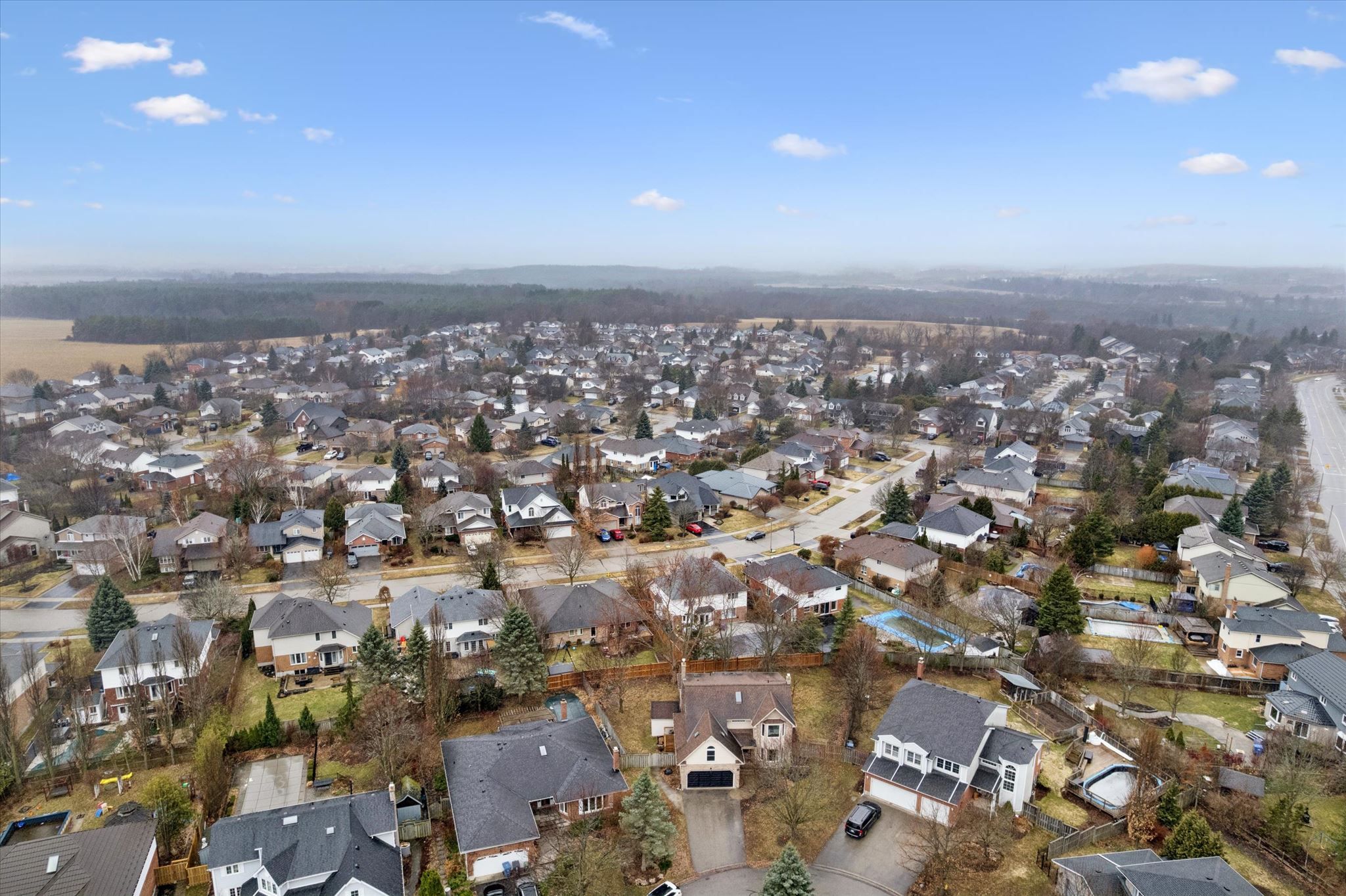 Kortright hills is more than a neighbourhood-it is a way of life. Tucked quietly within one of its most charming and sought-after enclaves, wood duck court offers a setting that feels both intimate and exceptional-one of those rare streets that leaves a lasting impression from the moment you arrive. Set on a remarkable pie-shaped lot, this beautifully appointed residence is framed by mature trees and lush surroundings, offering an extraordinary sense of space and privacy. The expansive backyard with two large decks presents a rare opportunity to create a truly bespoke outdoor retreat-perfect for entertaining, quiet mornings, or evenings spent beneath the canopy of trees. Inside, the home unfolds with a thoughtful balance of openness and defined living spaces. The recently renovated main floor has been curated with intention, blending timeless design with modern functionality. At its heart lies a stunning kitchen-both refined and inviting-crafted with exceptional attention to detail and designed to bring people together. The adjoining family room enhances the home's warmth, anchored by a wood-burning fireplace that creates an atmosphere of comfort and ease. An elegant open staircase allows natural light to flow throughout, enhancing the bright, airy ambiance. Upstairs, four generously sized bedrooms provide space for the entire family, including a serene primary suite complete with a beautifully appointed private ensuite. The finished basement adds versatility with additional living space, a bedroom, and a full bathroom-ideal for guests or extended family. Beyond the home, the lifestyle is truly unmatched. Just moments away, kortright hills public school sits at the heart of the community, surrounded by parkland and playgrounds. Nearby trails and conservation lands offer endless opportunities to enjoy nature, connecting seamlessly to guelph's extensive trail network. A rare offering in one of the south end's most beloved communities.