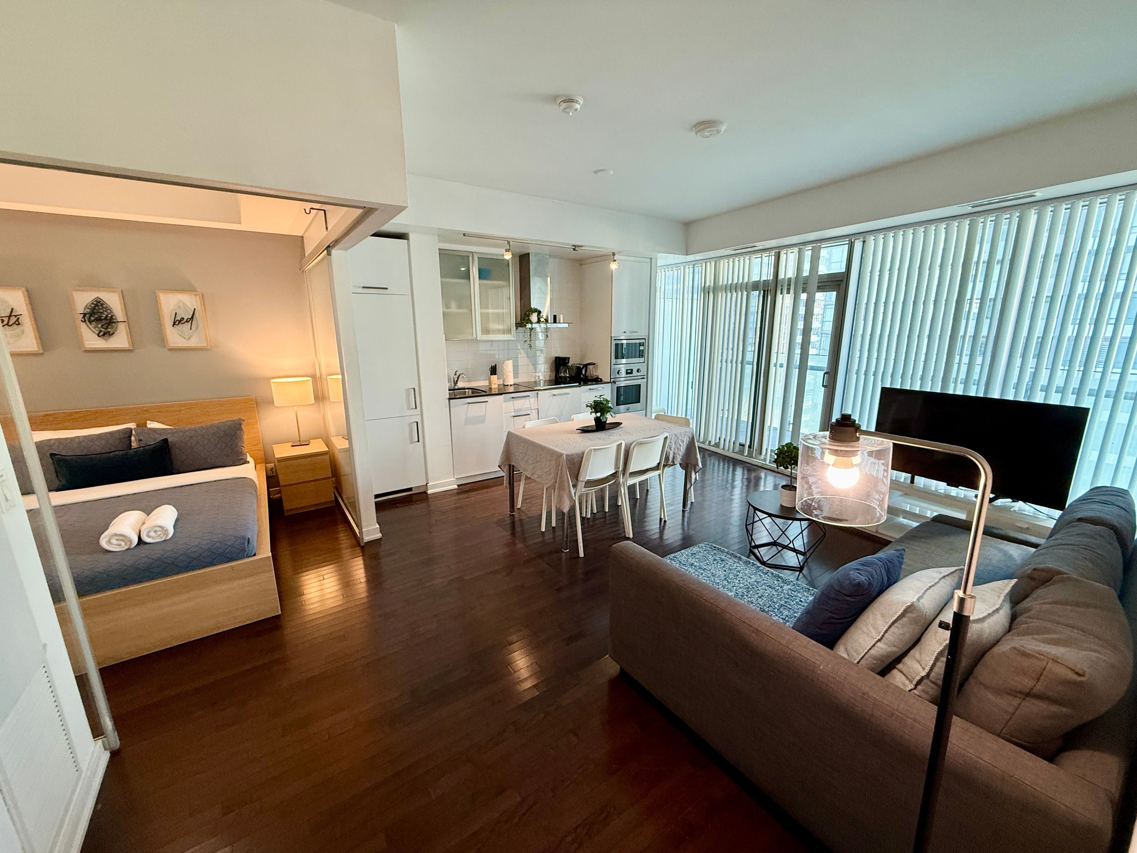 • Enjoy stunning lake and city views from the living space.