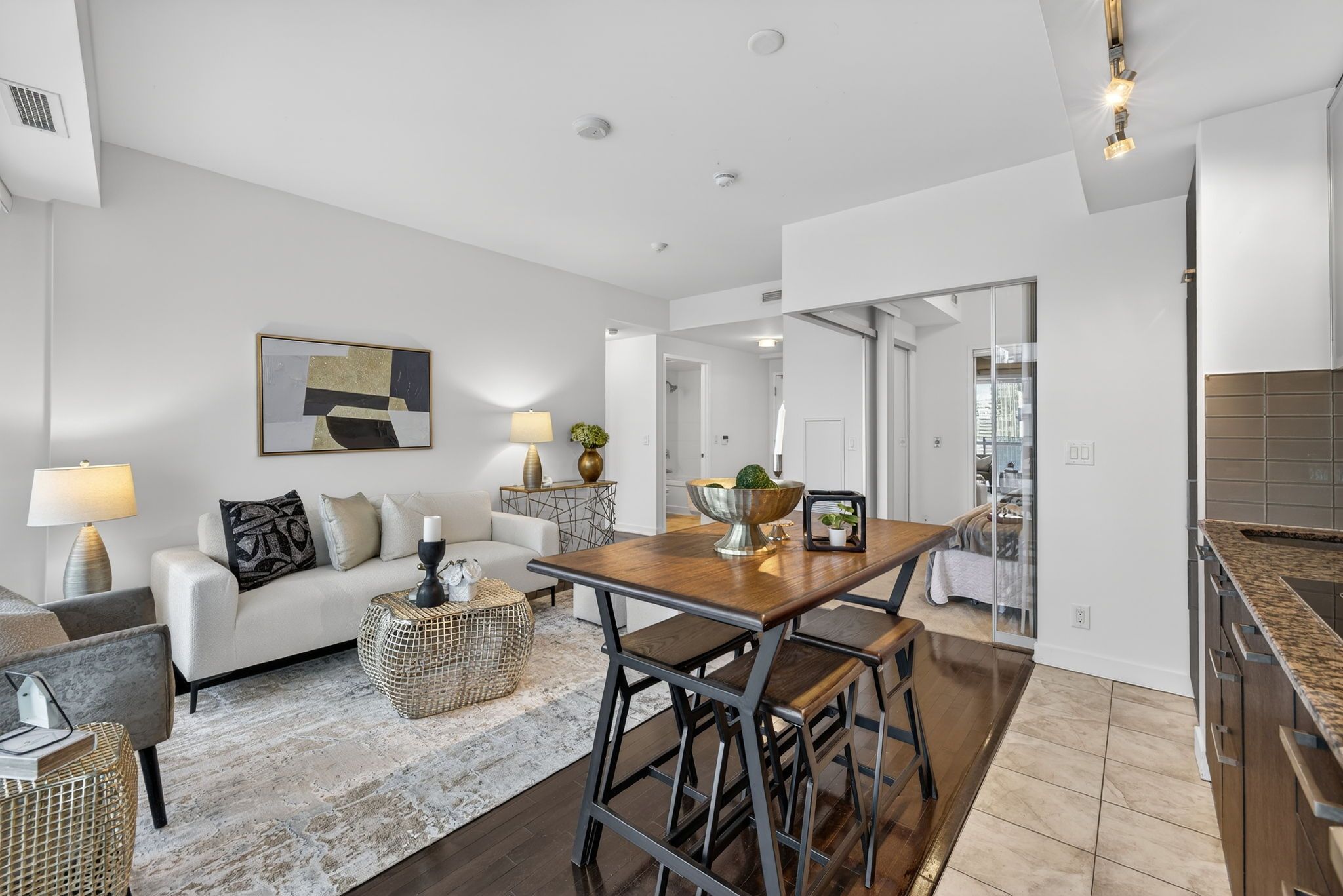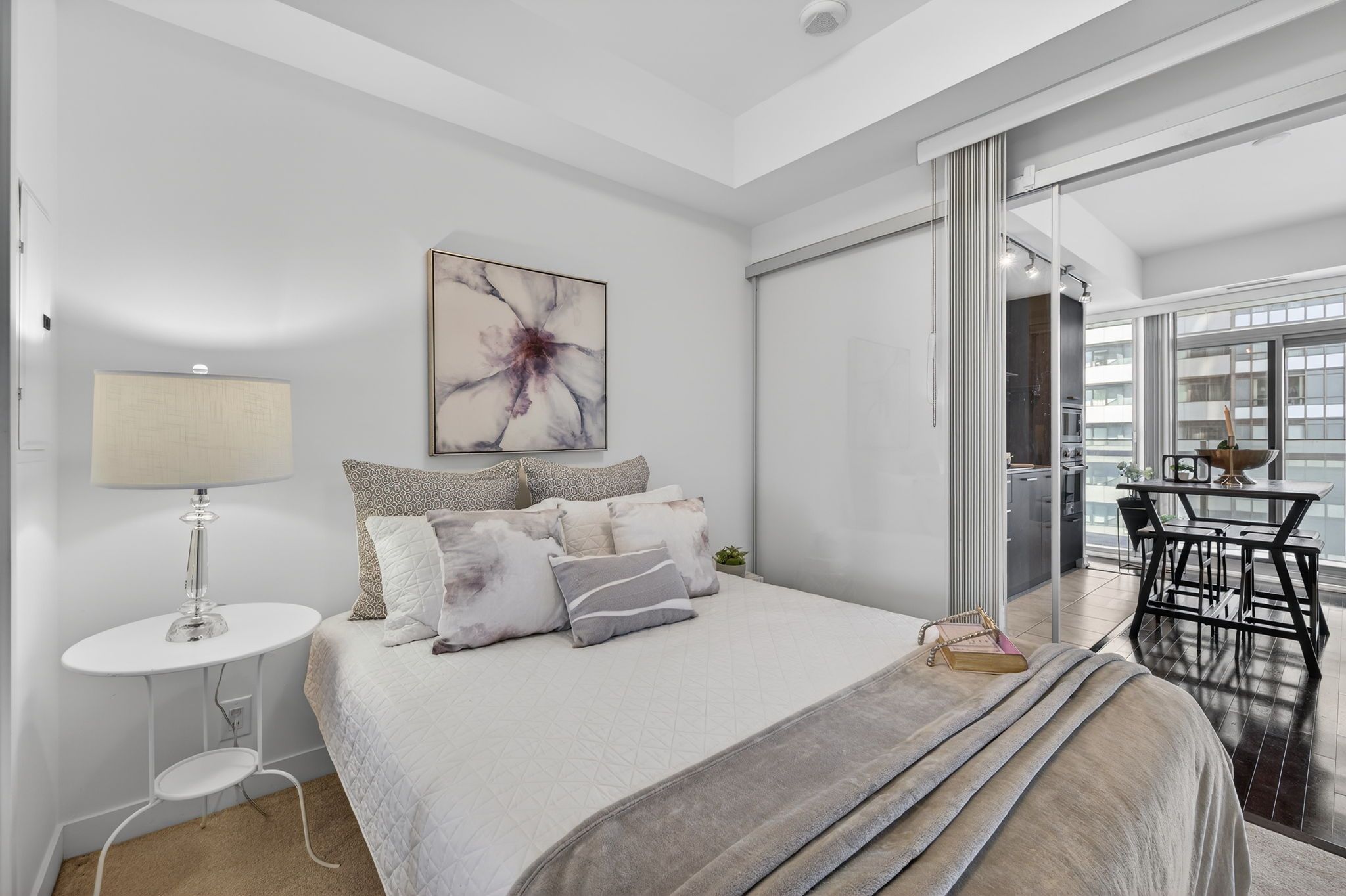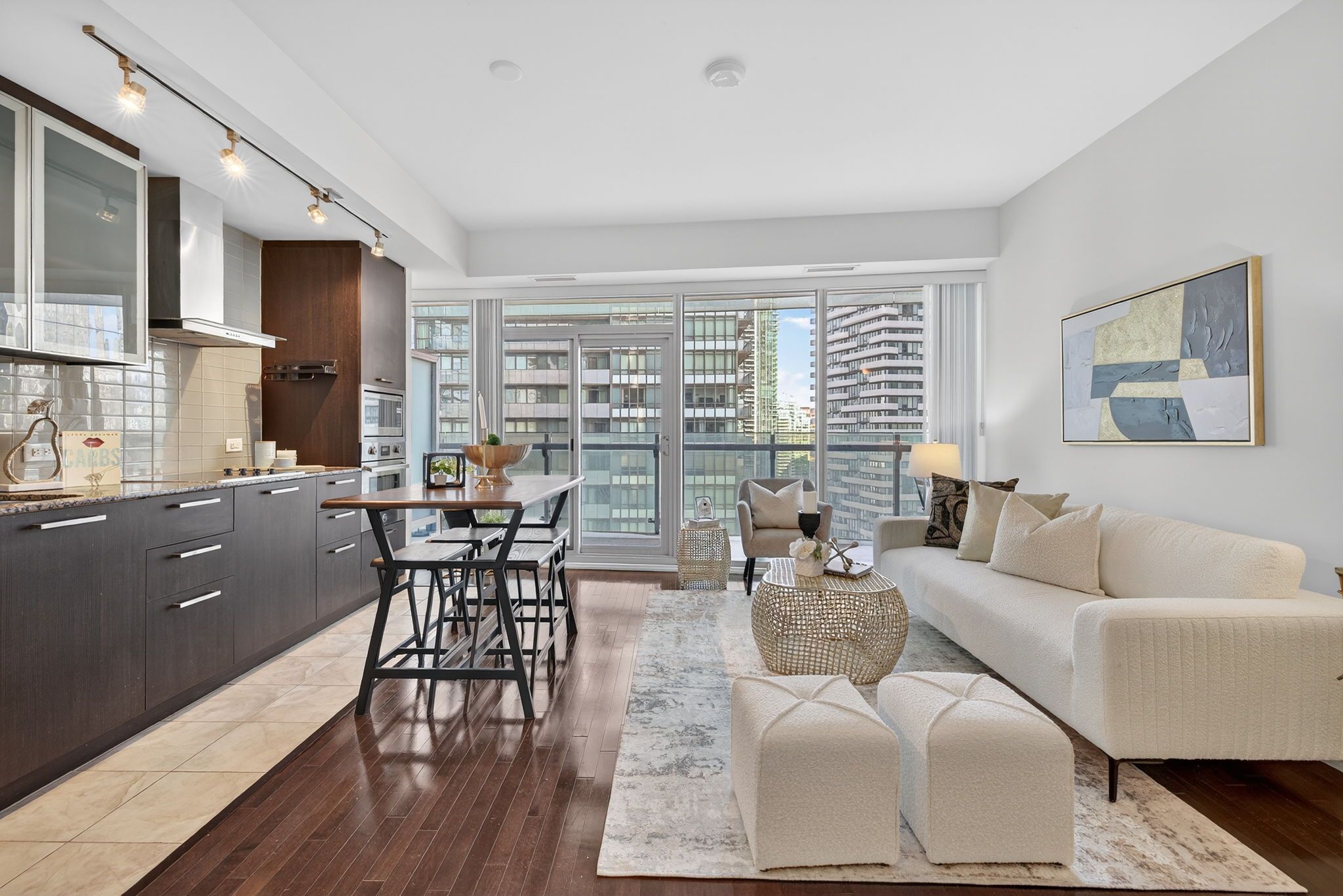 • Bright south-facing layout with high ceilings and floor-to-ceiling windows.