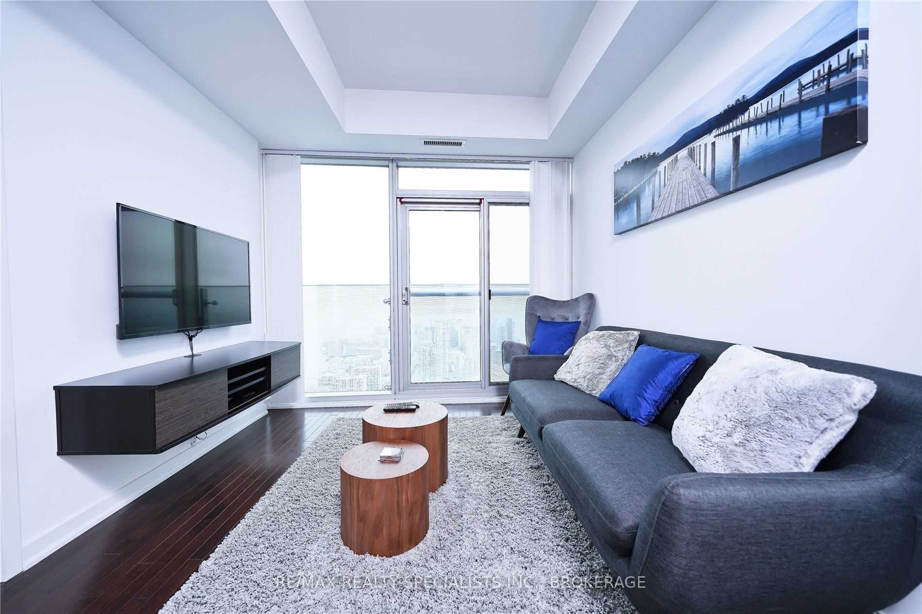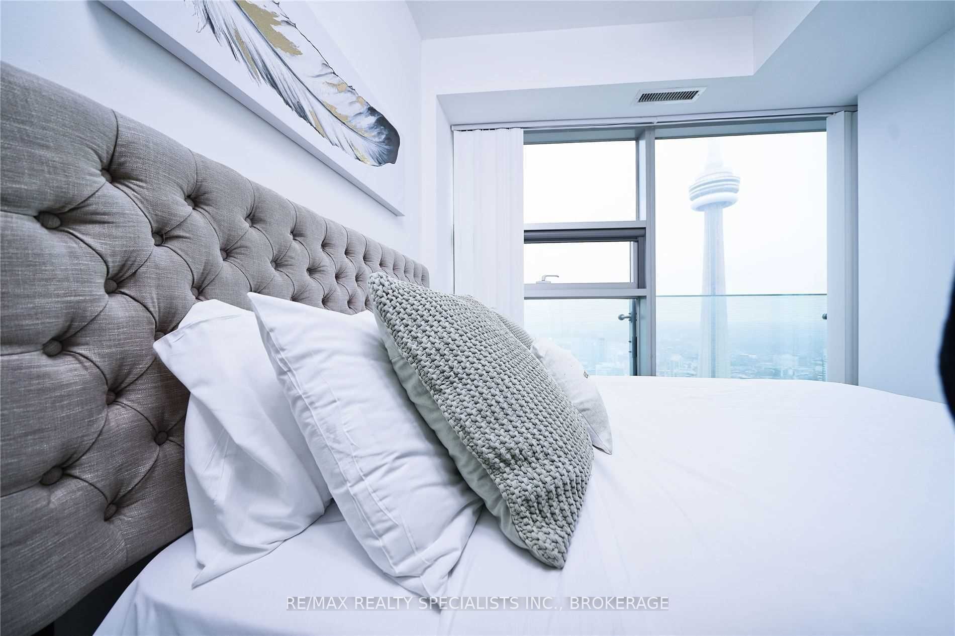 66th floor fully furnished unit: 1 bedroom plus study , 1 washroom with unobstructed south west view of cn tower, rogers centre, city & lake. Juliette balcony, hardwood floors in kitchen, dining and living room, granite counters in kitchen, 1 washroom (4pc). Across the street from acc, union station, longos supermarket, td bank, access to path, steps from waterfront, cn tower, financial & entertainment district, ex access to hwy, 24 hrs concierge.