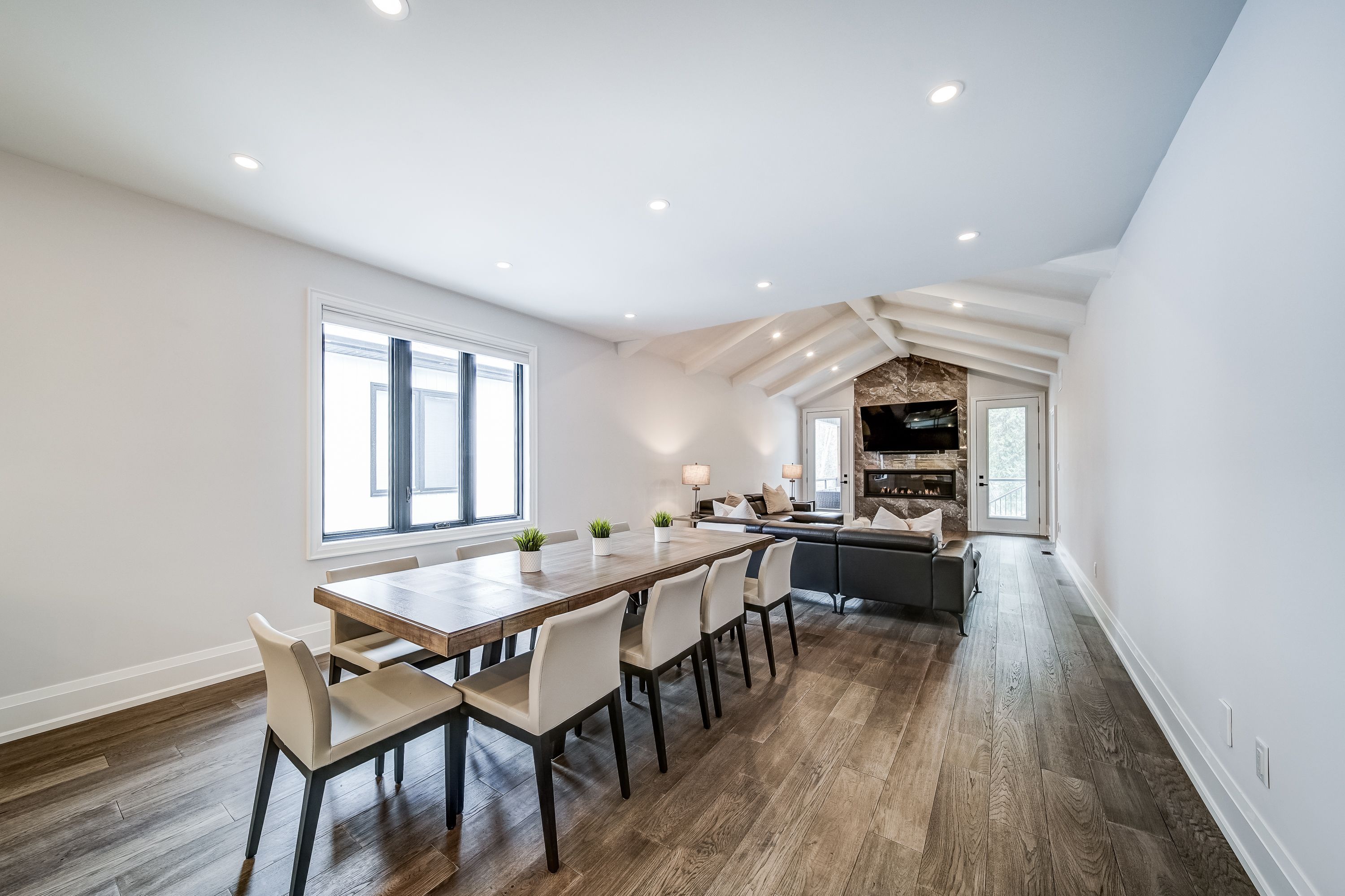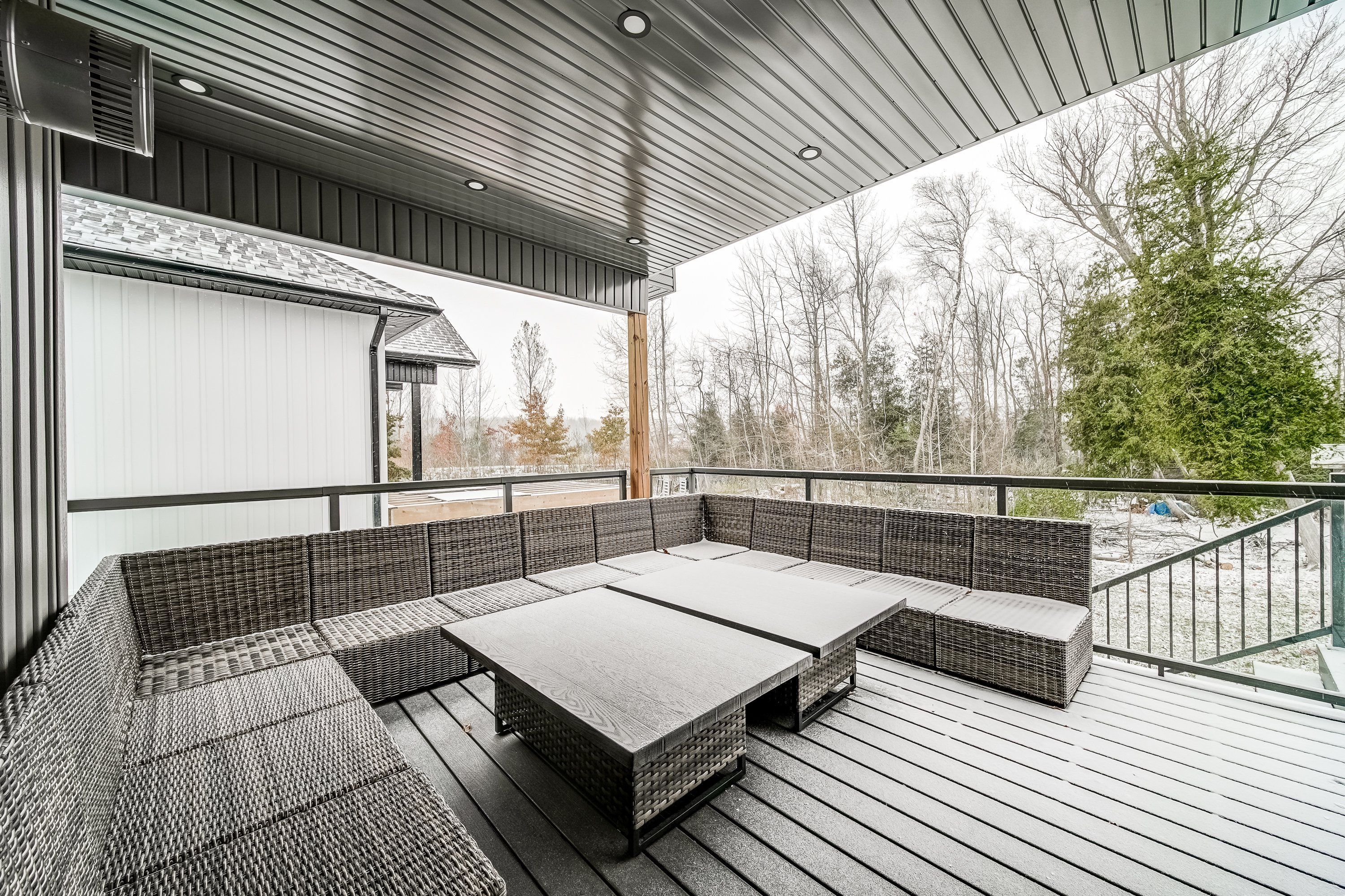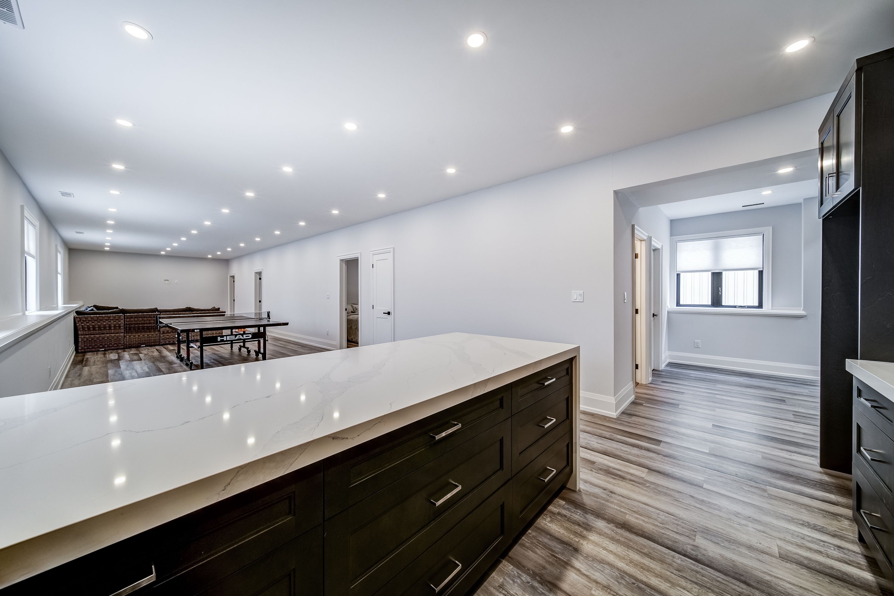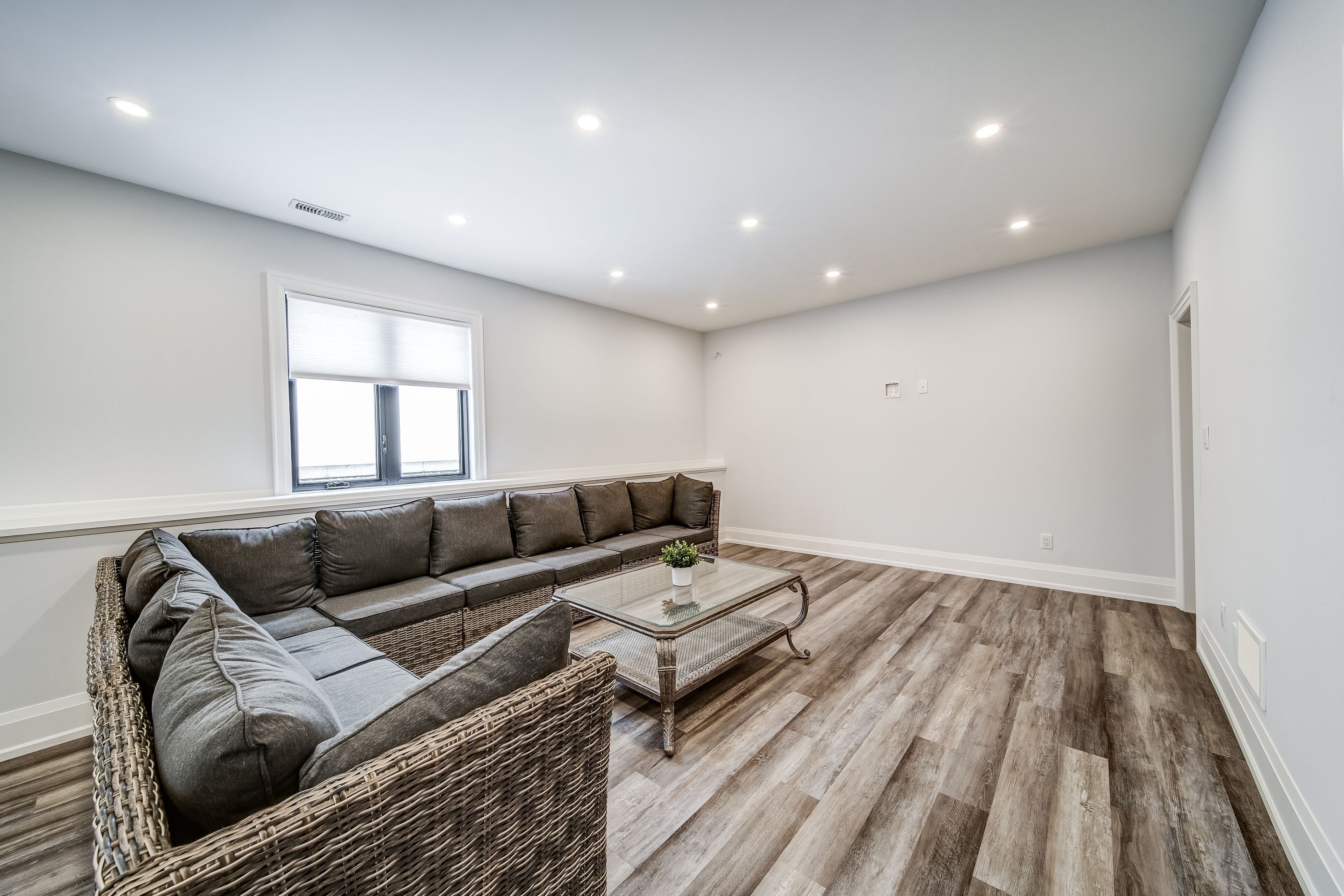 Step into this exceptional detached raised bungalow, where modern luxury meets effortless everyday living. Offering over 3,300 sq. Ft. Of beautifully finished space, this home is crafted to impress from top to bottom. The main floor features three generously sized bedrooms and two spa-inspired 3-piece bathrooms, each adorned with elegant porcelain tile. The heart of the home is the open-concept kitchen and dining area, showcasing custom quartz countertops, a striking waterfall island, and premium stainless steel appliances-perfect for both cooking and entertaining. Bright and inviting, the living room is enhanced by a soaring cathedral ceiling and opens onto a large covered composite deck with modern glass railings, creating an ideal indoor-outdoor retreat. A thoughtfully designed main-floor laundry room with a built-in pantry adds convenience without compromising style. The fully finished lower level provides outstanding extra living space, complete with three spacious bedrooms with above-grade windows, a chic 3-piece bathroom, and a large kitchenette featuring custom quartz counters. The expansive dining and family area is perfect for hosting gatherings or creating a private suite for extended family. Move-in ready and loaded with high-end finishes and carefully selected upgrades, this home is a rare find that truly must be seen to be appreciated.