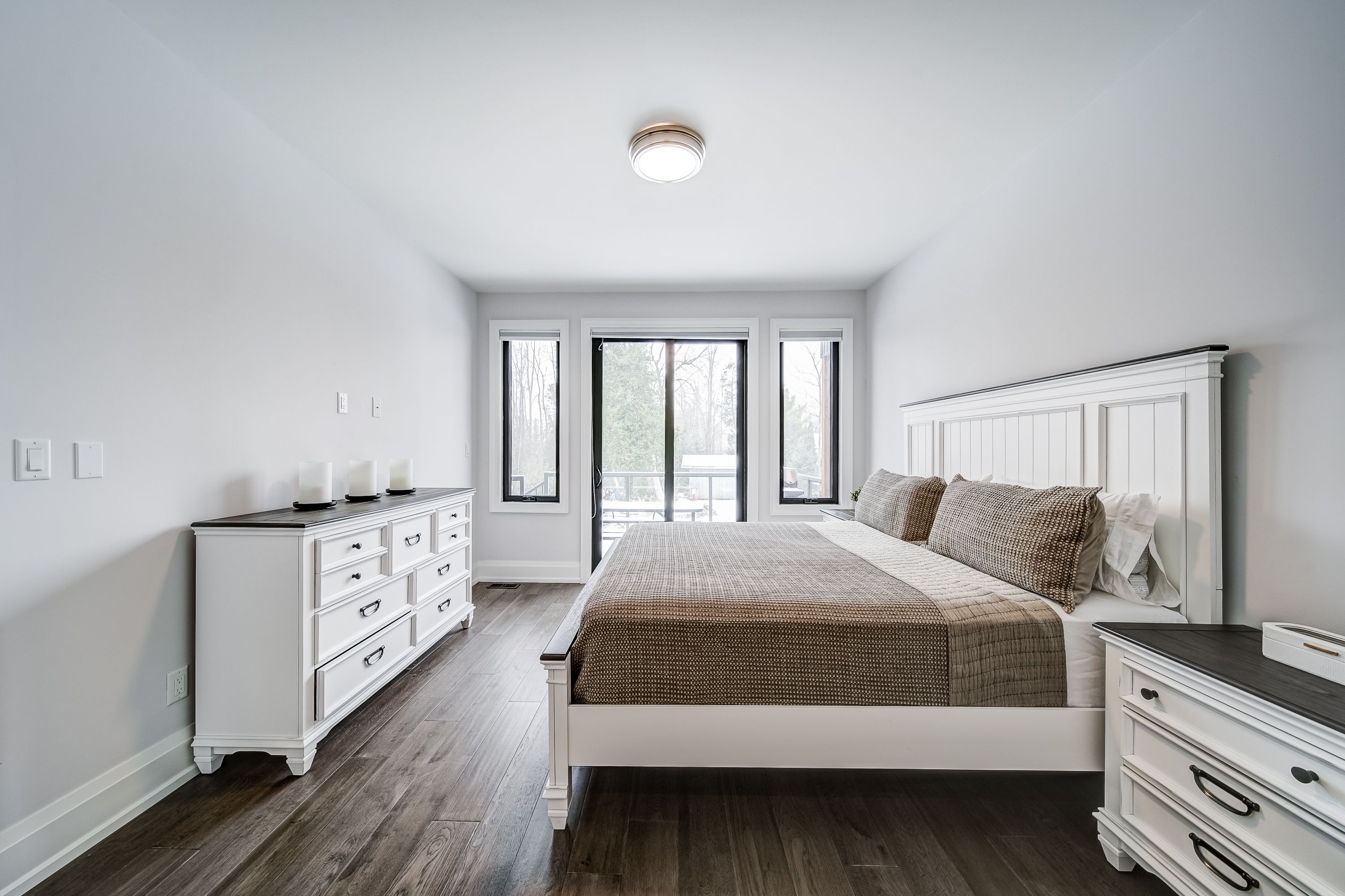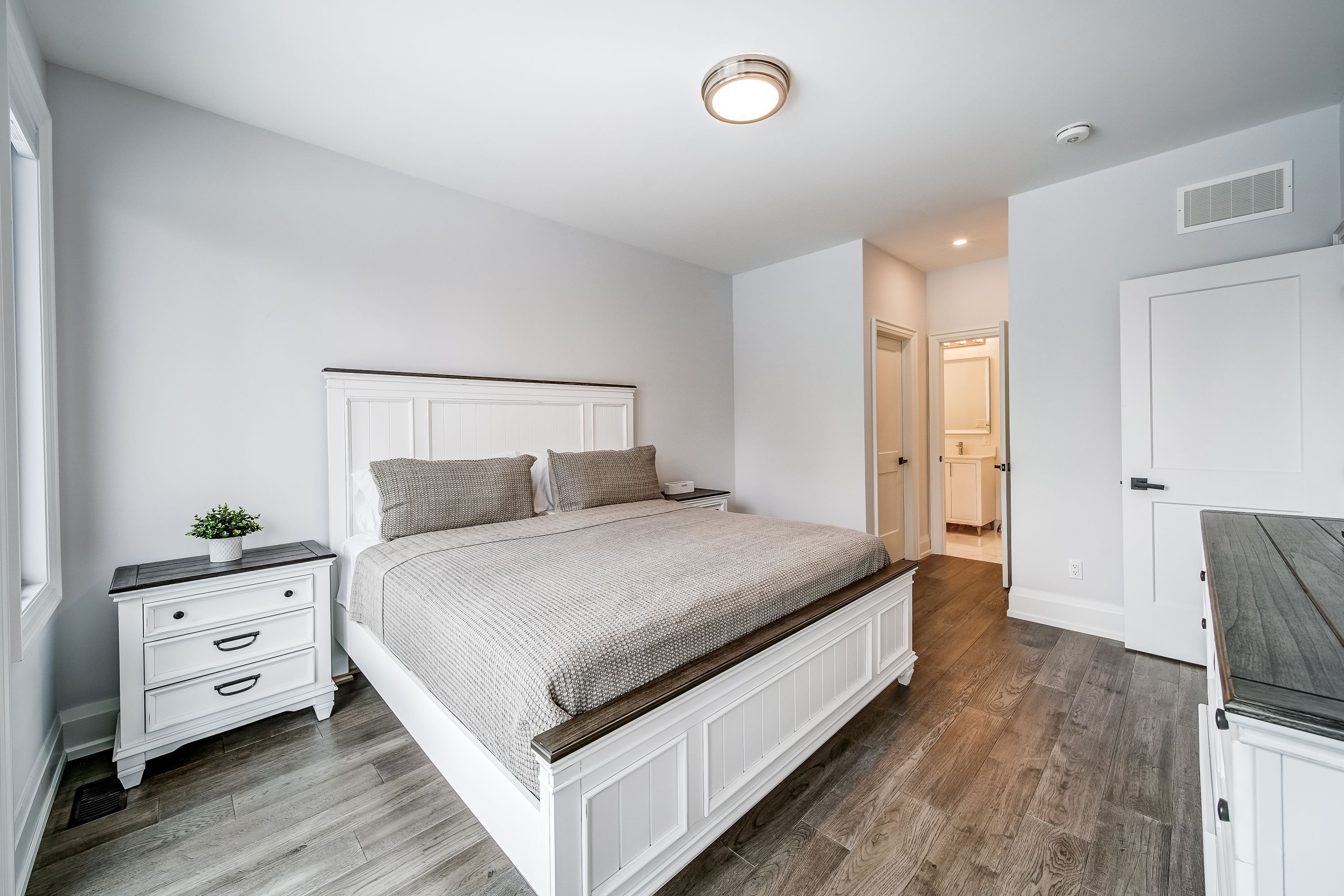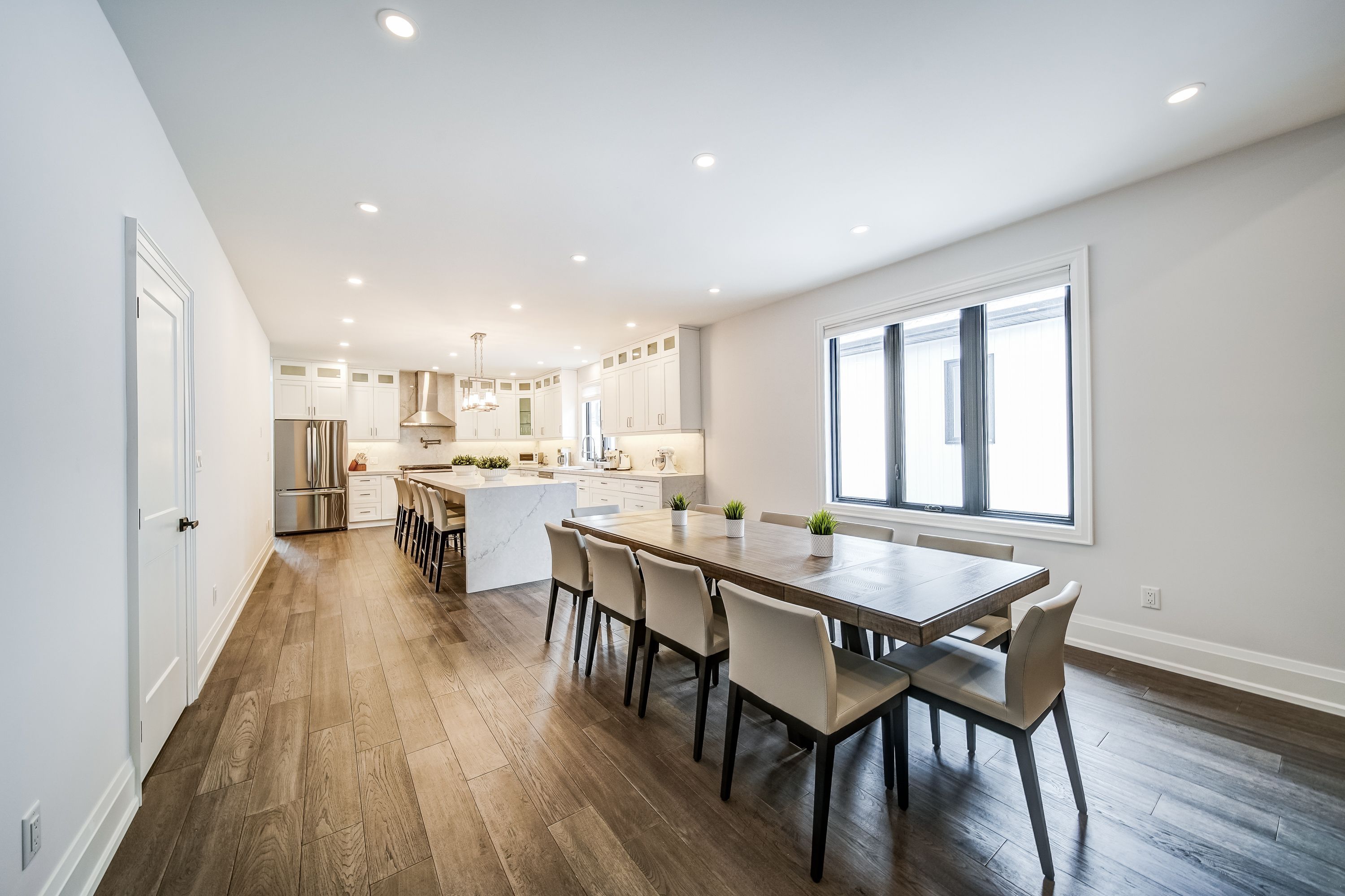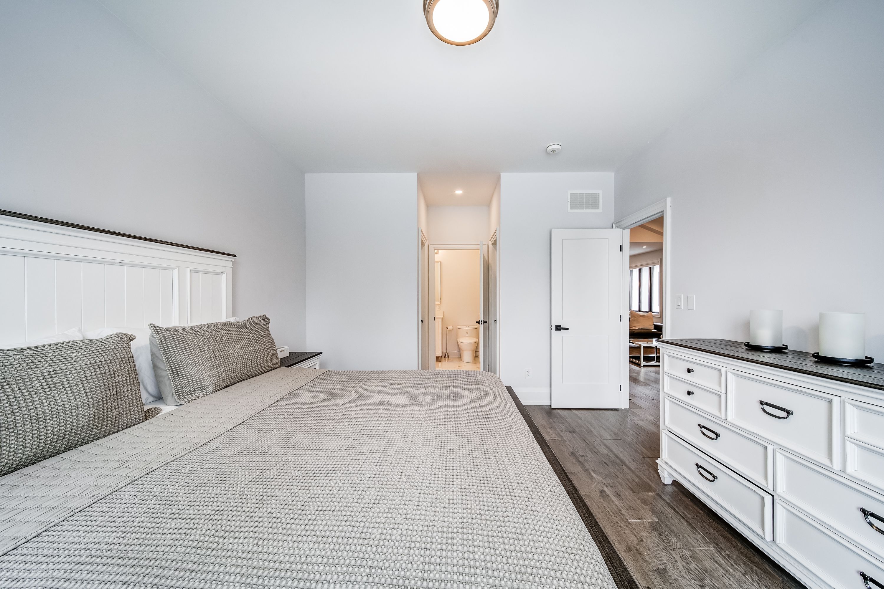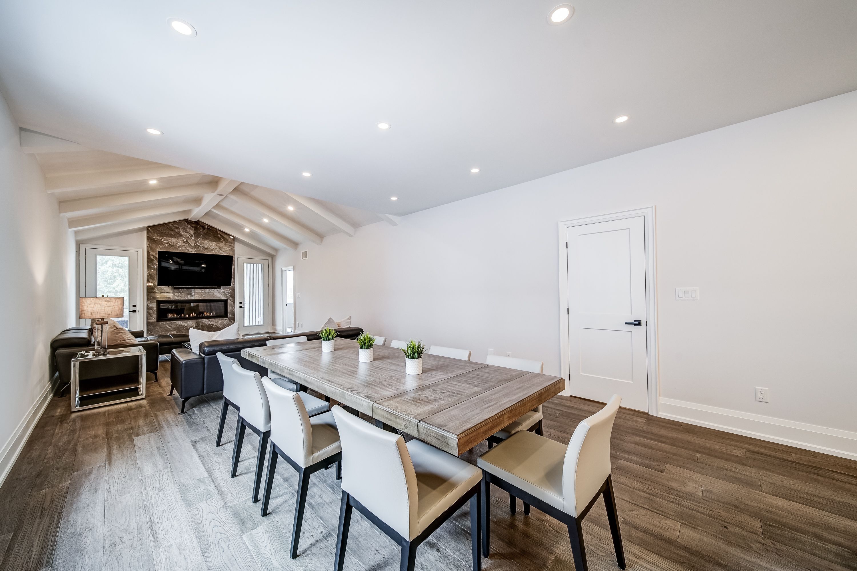 Step into this exceptional detached raised bungalow, where modern luxury meets effortless everyday living. Offering over 3,300 sq. Ft. Of beautifully finished space, this home is crafted to impress from top to bottom. The main floor features three generously sized bedrooms and two spa-inspired 3-piece bathrooms, each adorned with elegant porcelain tile. The heart of the home is the open-concept kitchen and dining area, showcasing custom quartz countertops, a striking waterfall island, and premium stainless steel appliances-perfect for both cooking and entertaining. Bright and inviting, the living room is enhanced by a soaring cathedral ceiling and opens onto a large covered composite deck with modern glass railings, creating an ideal indoor-outdoor retreat. A thoughtfully designed main-floor laundry room with a built-in pantry adds convenience without compromising style. The fully finished lower level provides outstanding extra living space, complete with three spacious bedrooms with above-grade windows, a chic 3-piece bathroom, and a large kitchenette featuring custom quartz counters. The expansive dining and family area is perfect for hosting gatherings or creating a private suite for extended family. Move-in ready and loaded with high-end finishes and carefully selected upgrades, this home is a rare find that truly must be seen to be appreciated.
