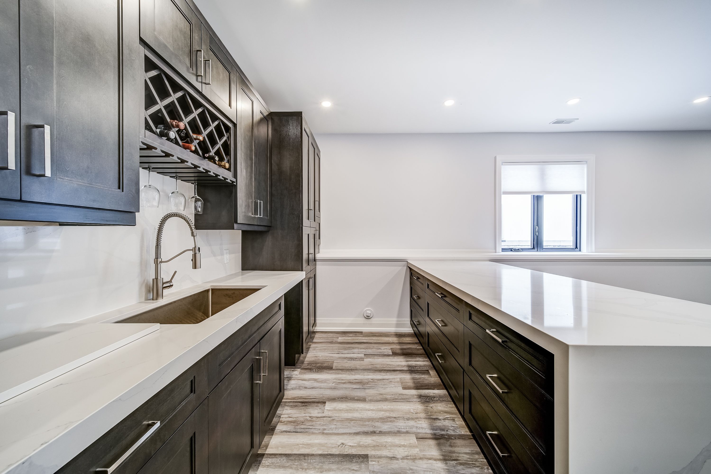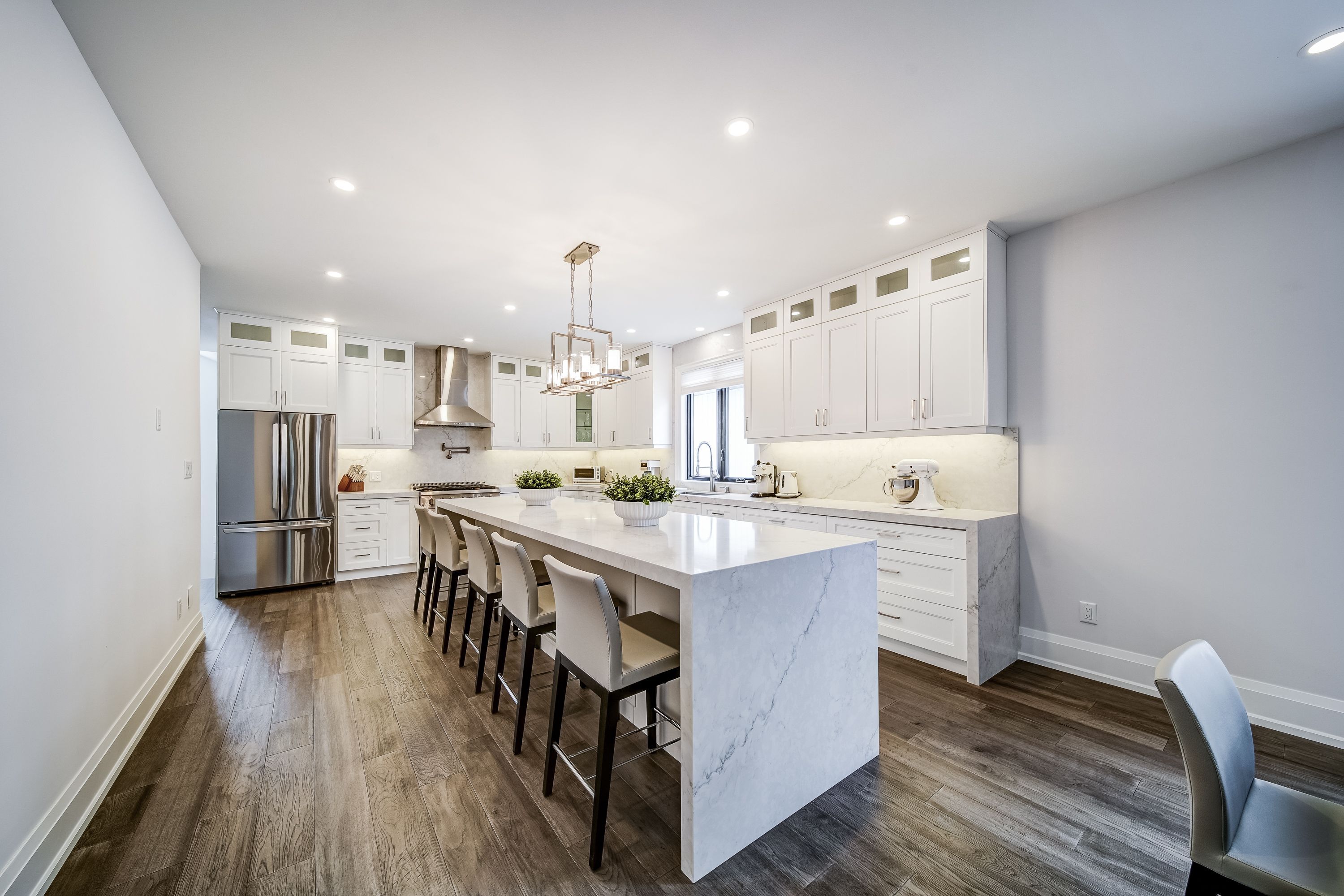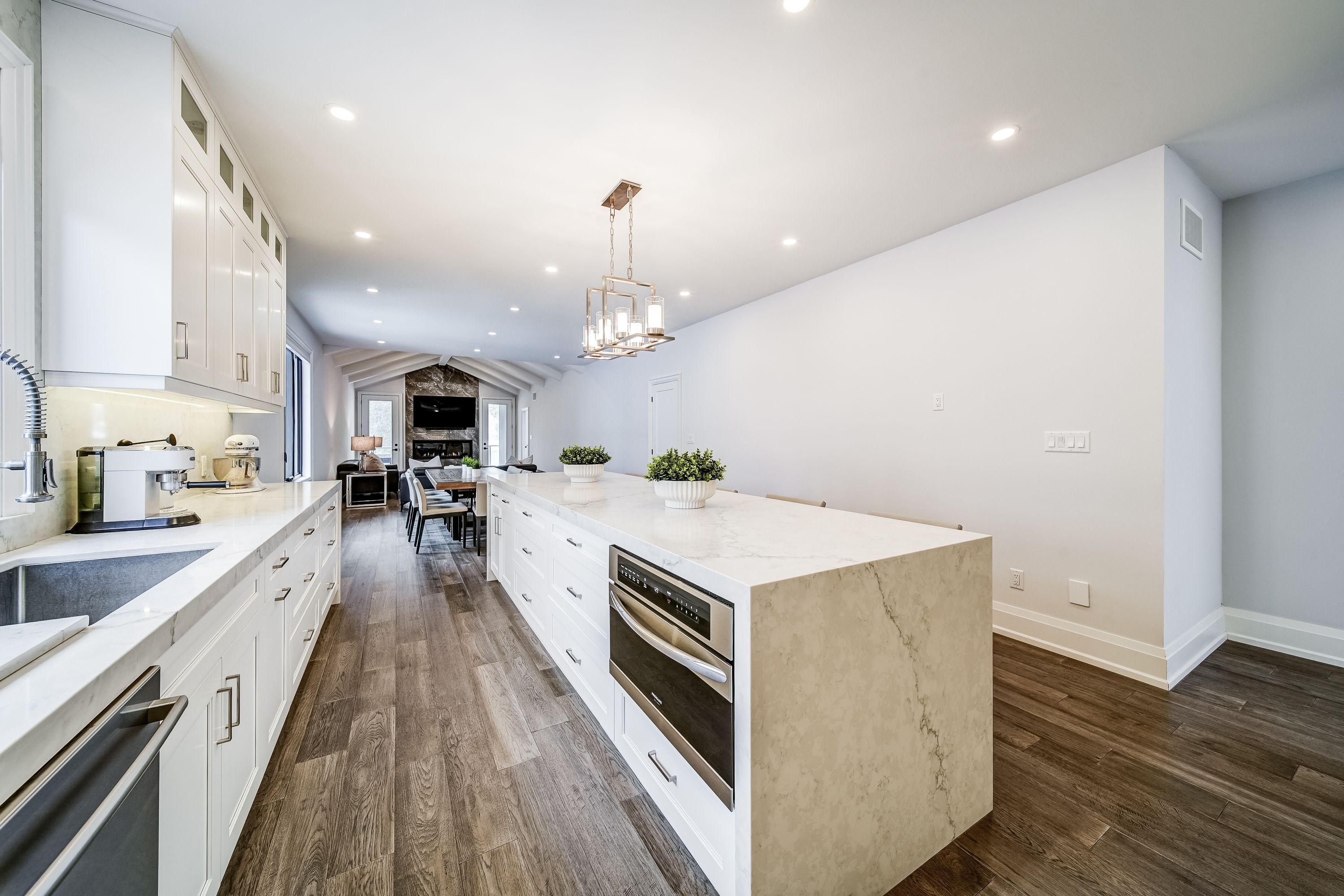• Open-concept kitchen with custom quartz countertops and premium appliances.