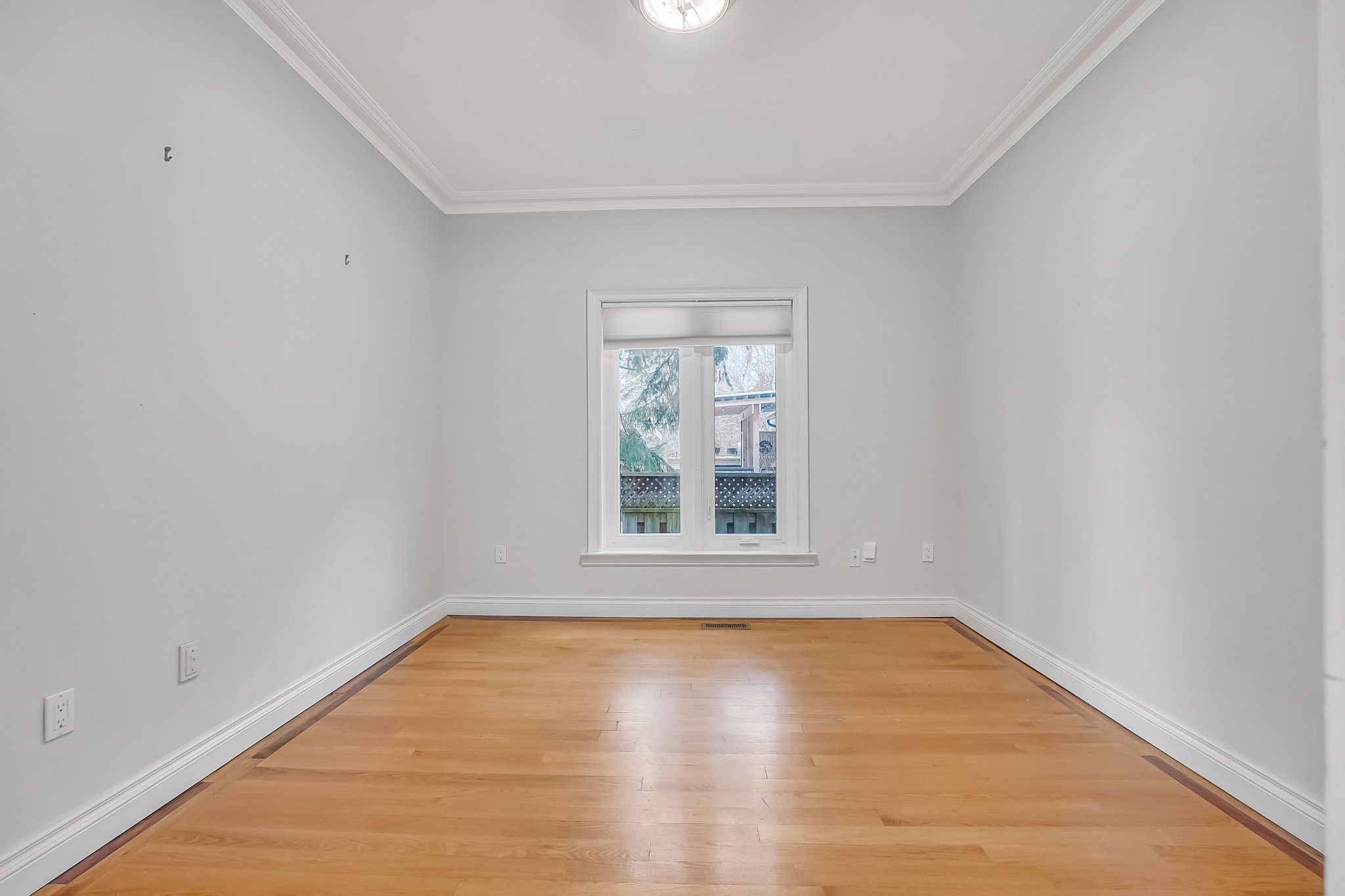 • Family room features a fireplace, crown moulding, and hardwood floors.