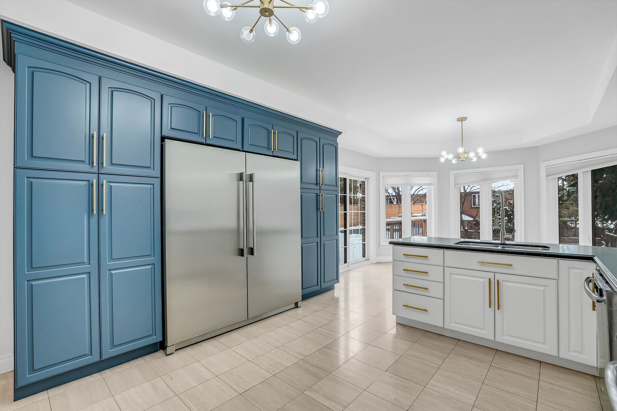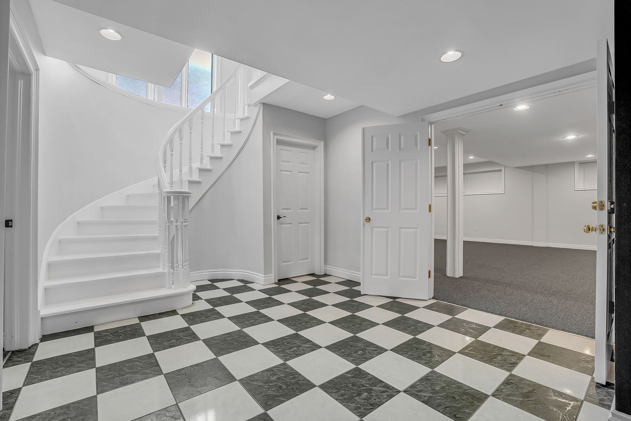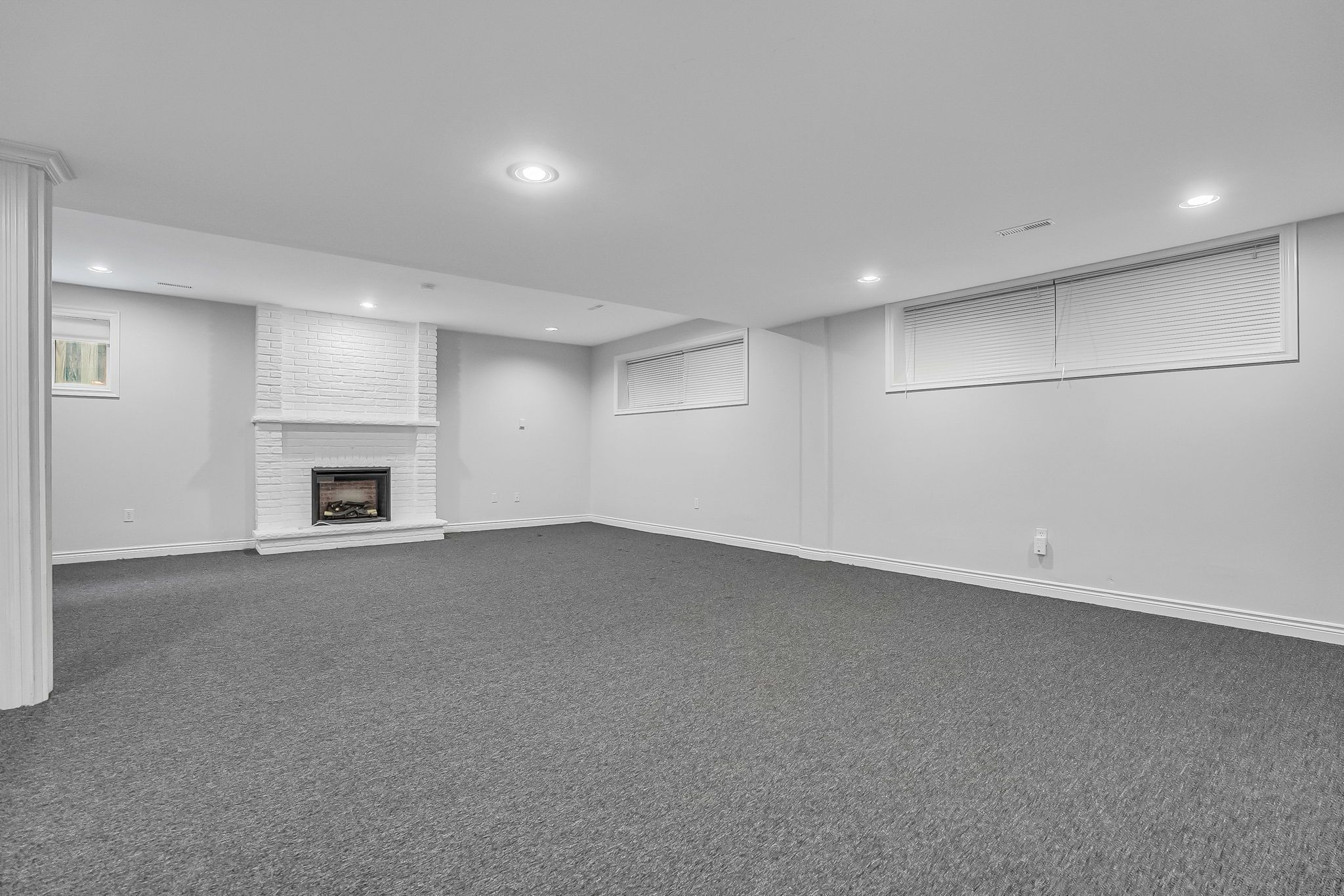 • Finished basement includes a kitchen, rec room, and additional bedrooms.