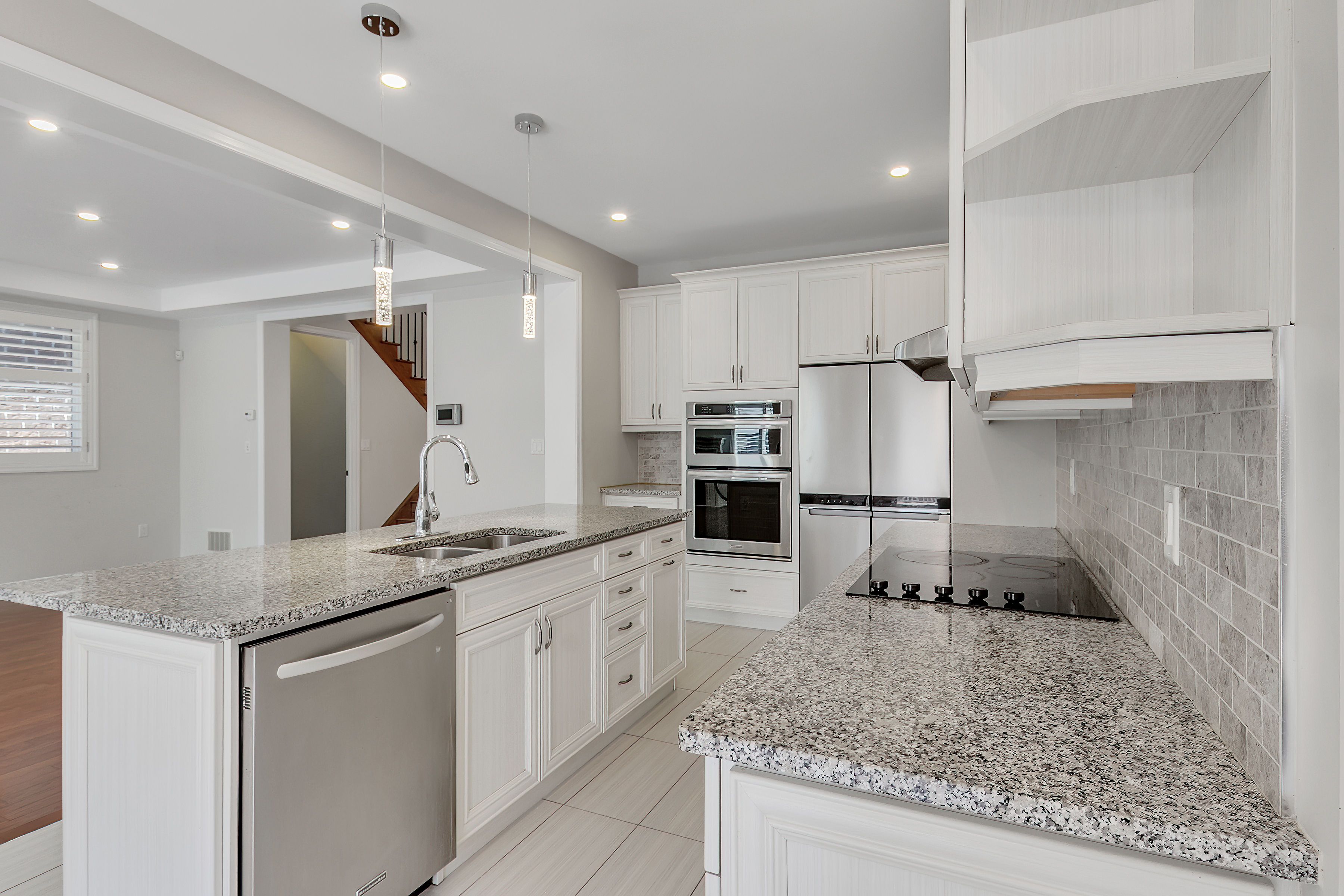 • Stylish kitchen with granite countertops and stainless steel appliances.