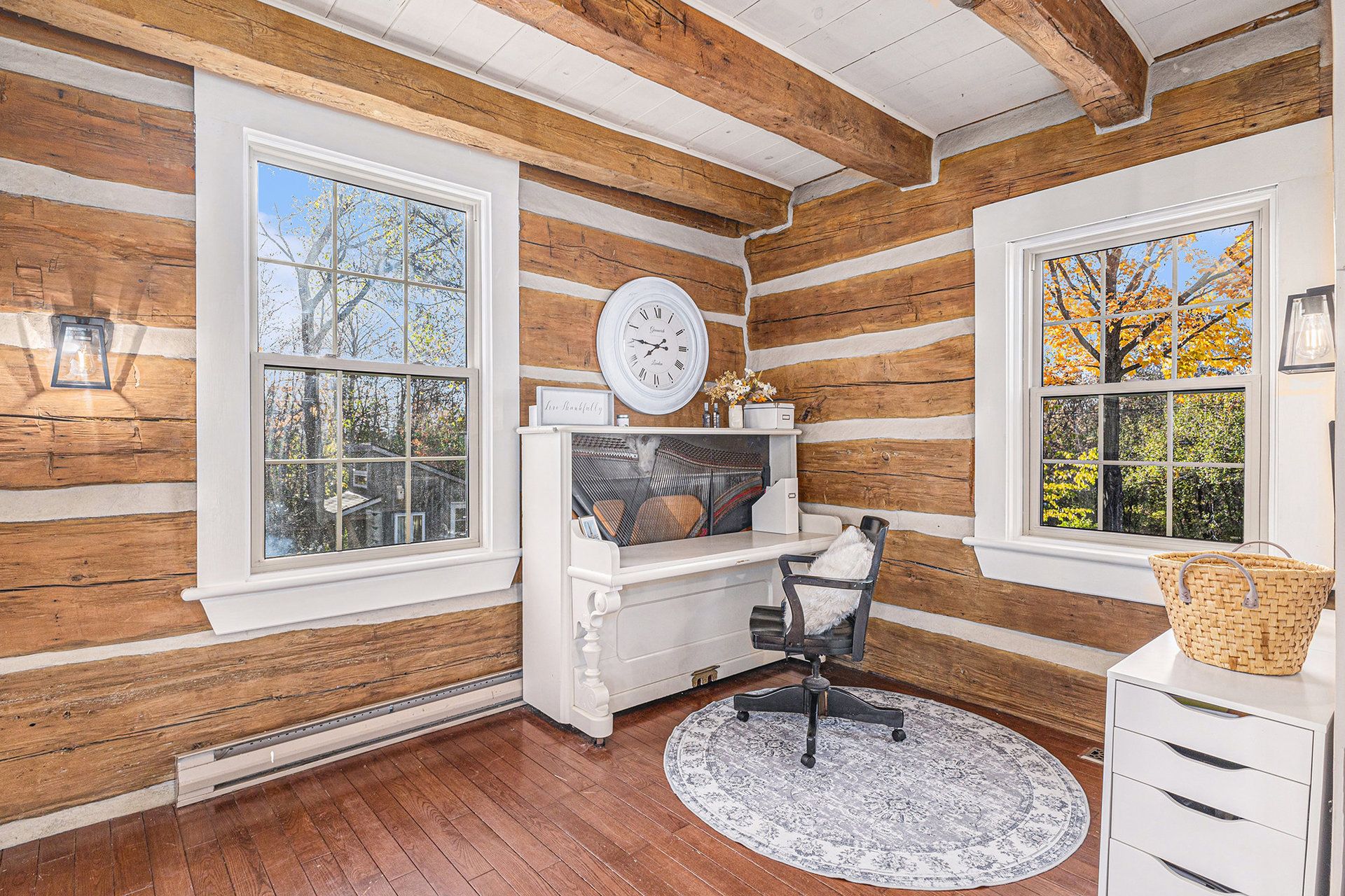 Step into a gorgeous one-of-a-kind log home, expertly crafted in 2006 by re-imagining and joining two original log houses from the 1800s. Every hand-tagged cedar and white-pine log tells a story of rebirth-dismantled, carefully numbered, and seamlessly woven into a magnificent single residence. Here, vintage charm meets modern comfort. As you cross the threshold, a bright and open-concept living space welcomes you. Sunlight pours in through generous windows, illuminating the rich log walls and exposed beams - lending a sense of rustic elegance and relaxed sophistication throughout. The spacious living room with a handsome gas fireplace create the perfect setting for both quiet evenings and lively gatherings. The oversized kitchen is sure to become a favourite gathering place. Generous counters wrap around a central peninsula and flow into the large eating area. An abundance of windows bathe the space in natural light, while a patio door opens onto a rear deck. Upstairs you'll find three beautifully proportioned bedrooms beneath vaulted ceilings, and a luxurious four-piece bathroom featuring a separate shower. The fully finished basement is the perfect extension of your family's living space. There's a cozy family room that's great for movie nights, game time, or just relaxing together. An extra area provides the ideal spot for working from home or helping the kids with homework/ gym. The exterior offers recreational space ( fire pit) as well as a superb bunkie with a loft/ bunk-bed area. Your new home is a short walk from both the fitzroy provincial beach area and the carp river. This is more than a house - it's a legacy of craftsmanship and character, ready to become your home.