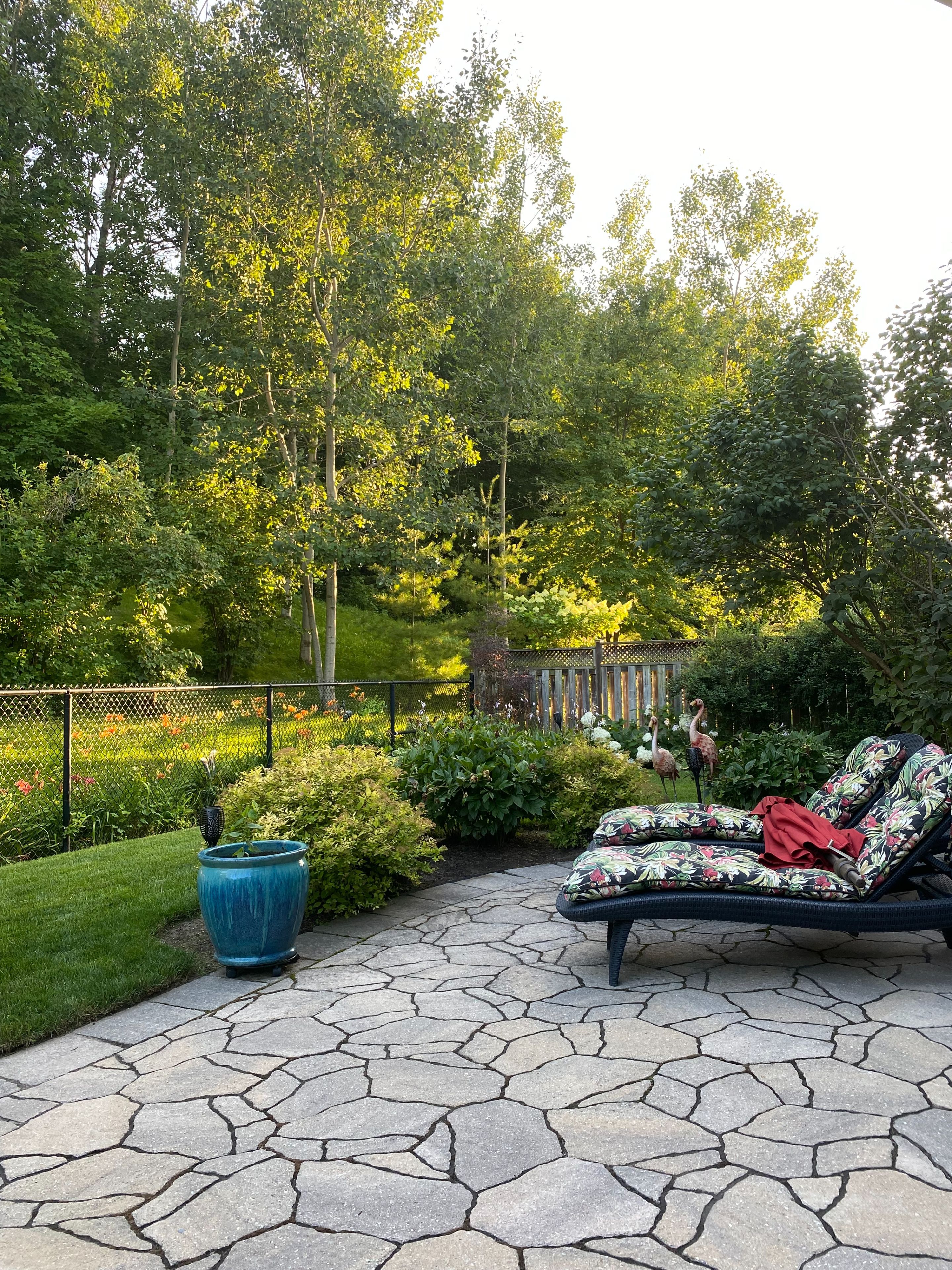 • Landscaped backyard with patio and firepit, ideal for relaxation.