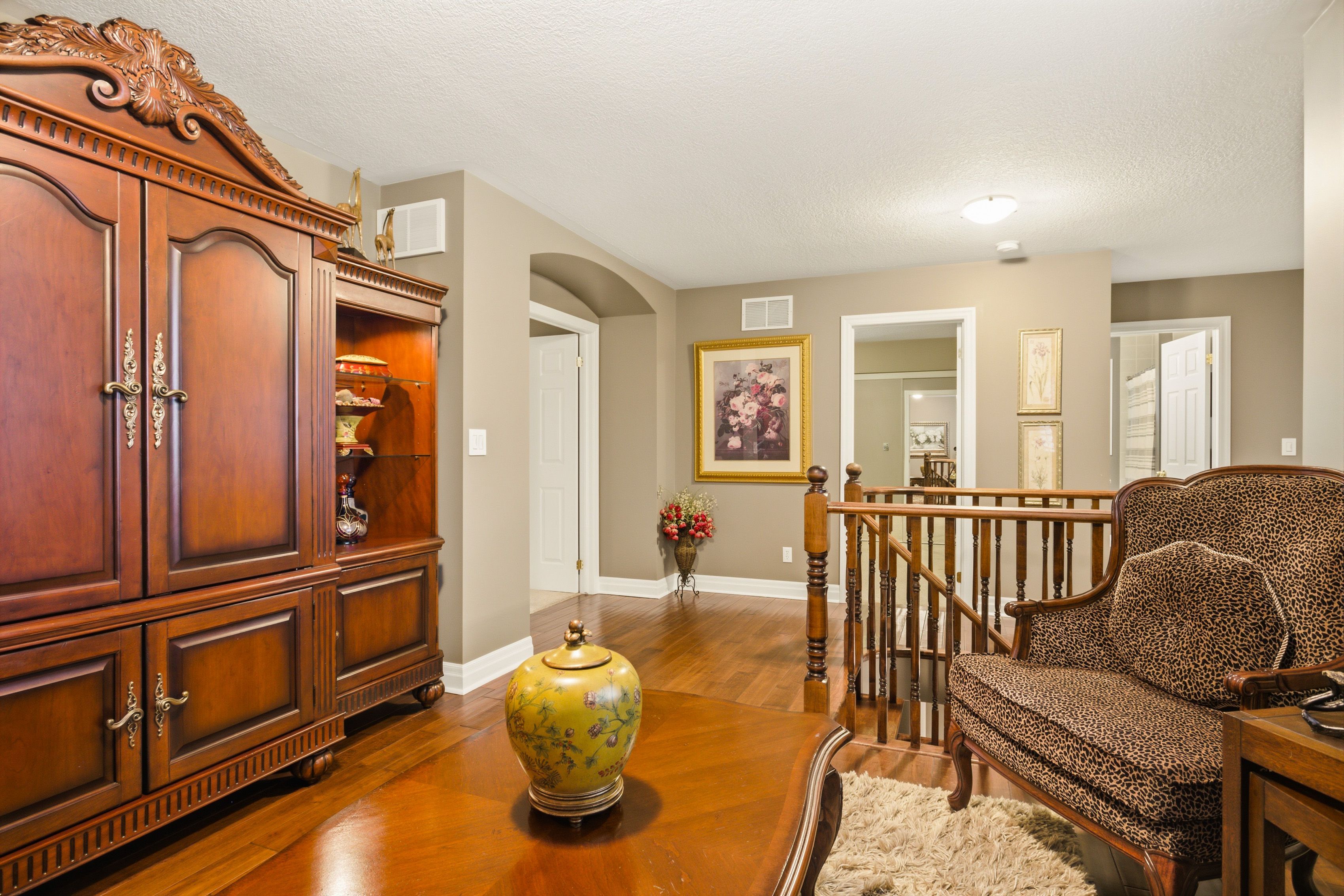 Set on a premium lot backing onto a picturesque ravine and mature forest, this beautifully maintained primarily brick home-offered by the original owners-offers exceptional privacy, natural beauty, and direct access to scenic walking and cycling trails. The bright, sun-filled main floor features a thoughtfully designed open-concept layout ideal for modern living and entertaining. The spacious kitchen includes a walk-in pantry and flows seamlessly into the inviting living area, while an elegant dining room with rich hardwood floors provides the perfect setting for gatherings. A versatile main-floor office or bedroom adds flexibility for guests or multigenerational living. Plantation shutters throughout the home add timeless style and charm, and an open staircase to the lower level enhances the home's sense of space and architectural appeal. Upstairs, the primary suite offers a private retreat with a luxurious 5-piece ensuite and two walk-in closets. A generous second-floor den provides the perfect space for a home office, lounge, or potential fourth bedroom. Convenient second-floor laundry, two additional bedrooms, and a stylish 4-piece bathroom complete the upper level the beautifully landscaped backyard is a private oasis with mature perennials, fragrant lilac trees, a patio, and firepit area-perfect for relaxing or entertaining while enjoying peaceful ravine views. Ideally located in a sought-after family-friendly neighbourhood just minutes to highway 401, excellent schools, parks, and shopping, this exceptional home offers the perfect blend of nature, comfort, and convenience.