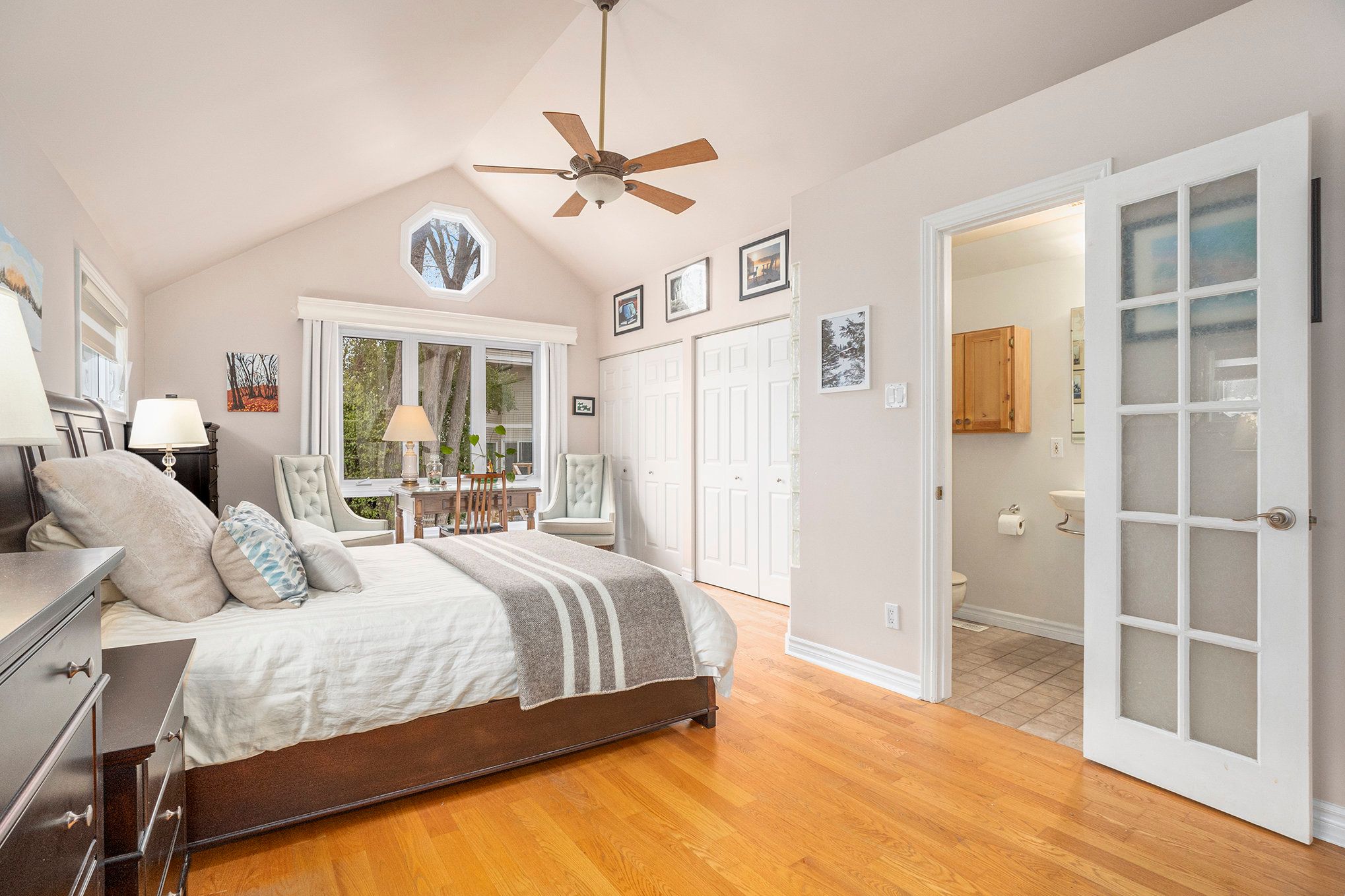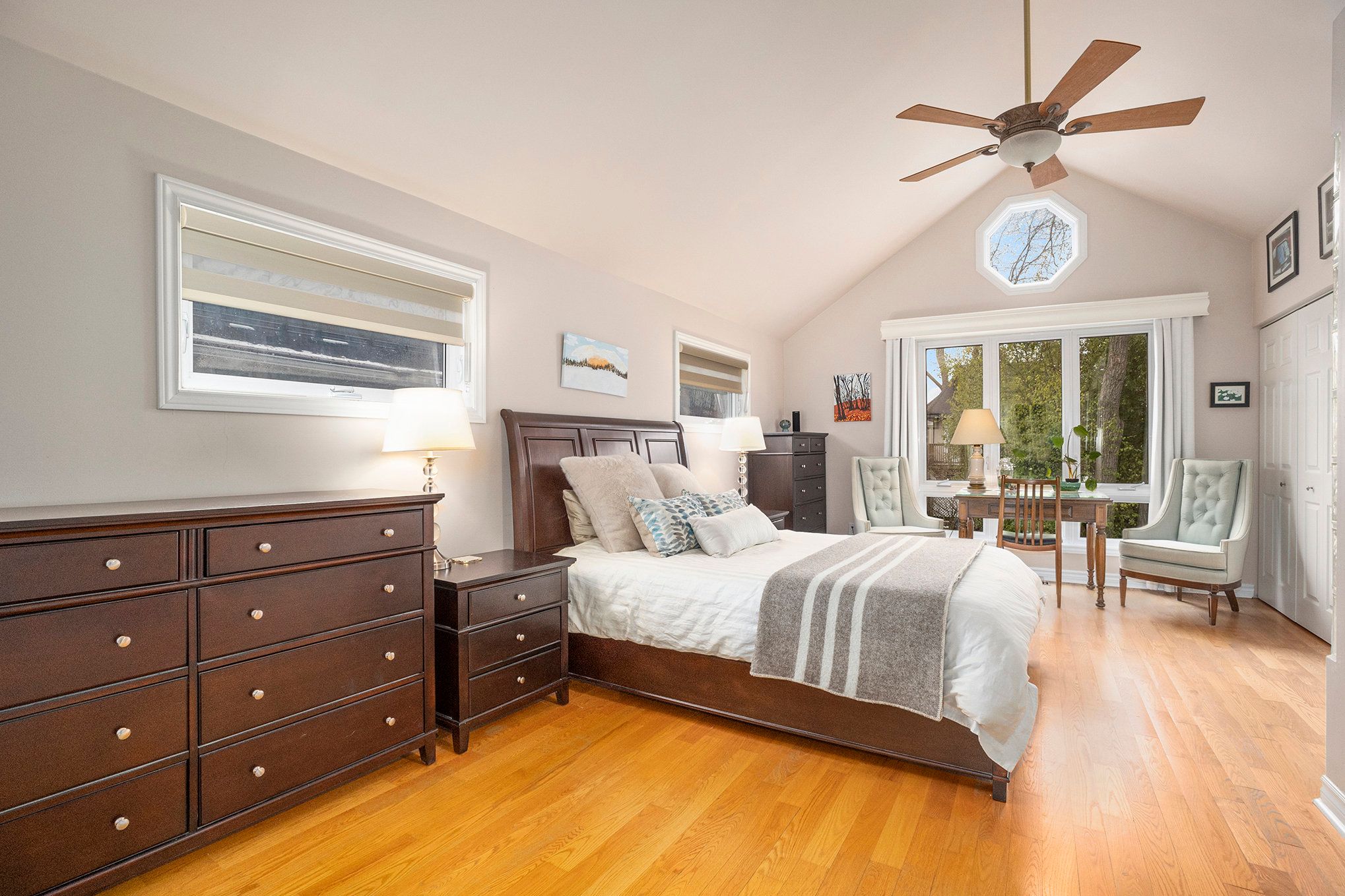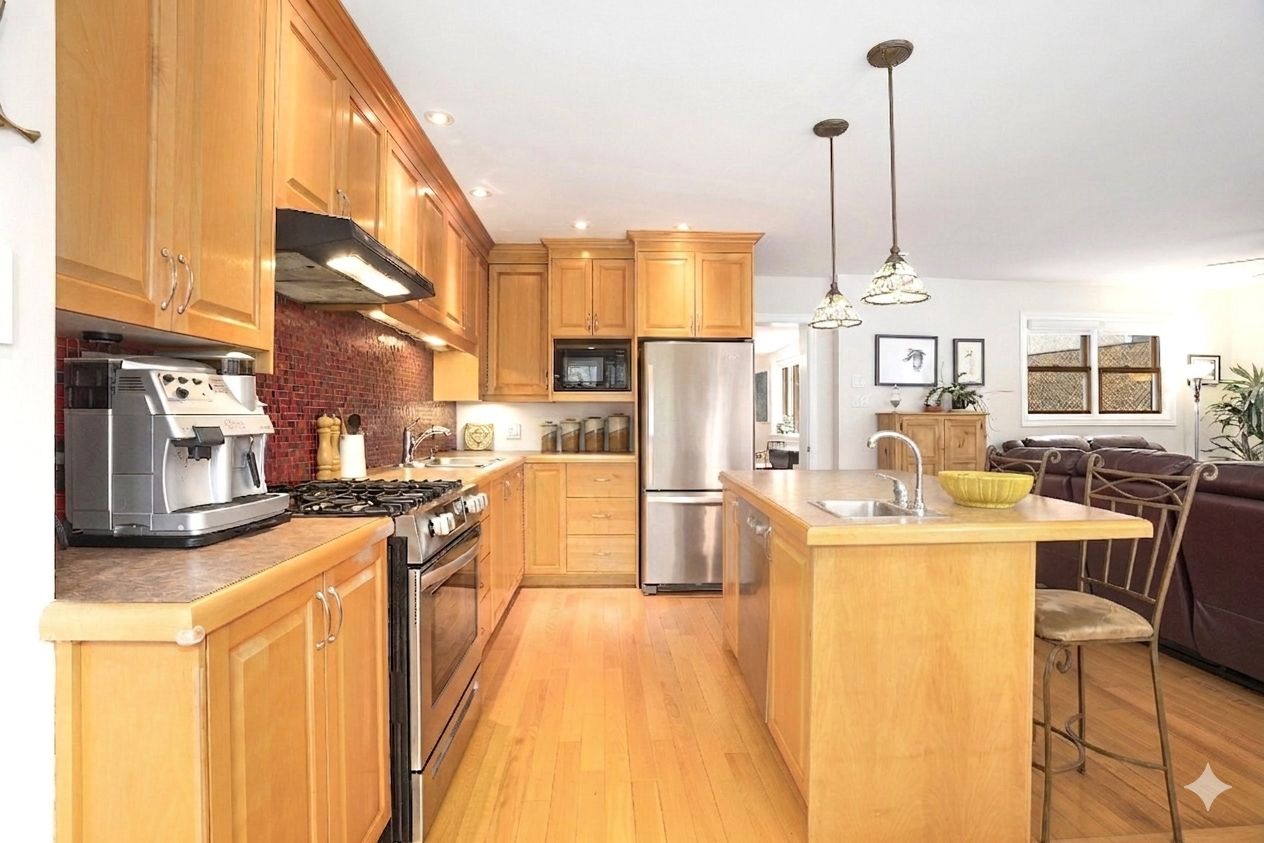 • Spacious main floor with hardwood floors and open-concept living.